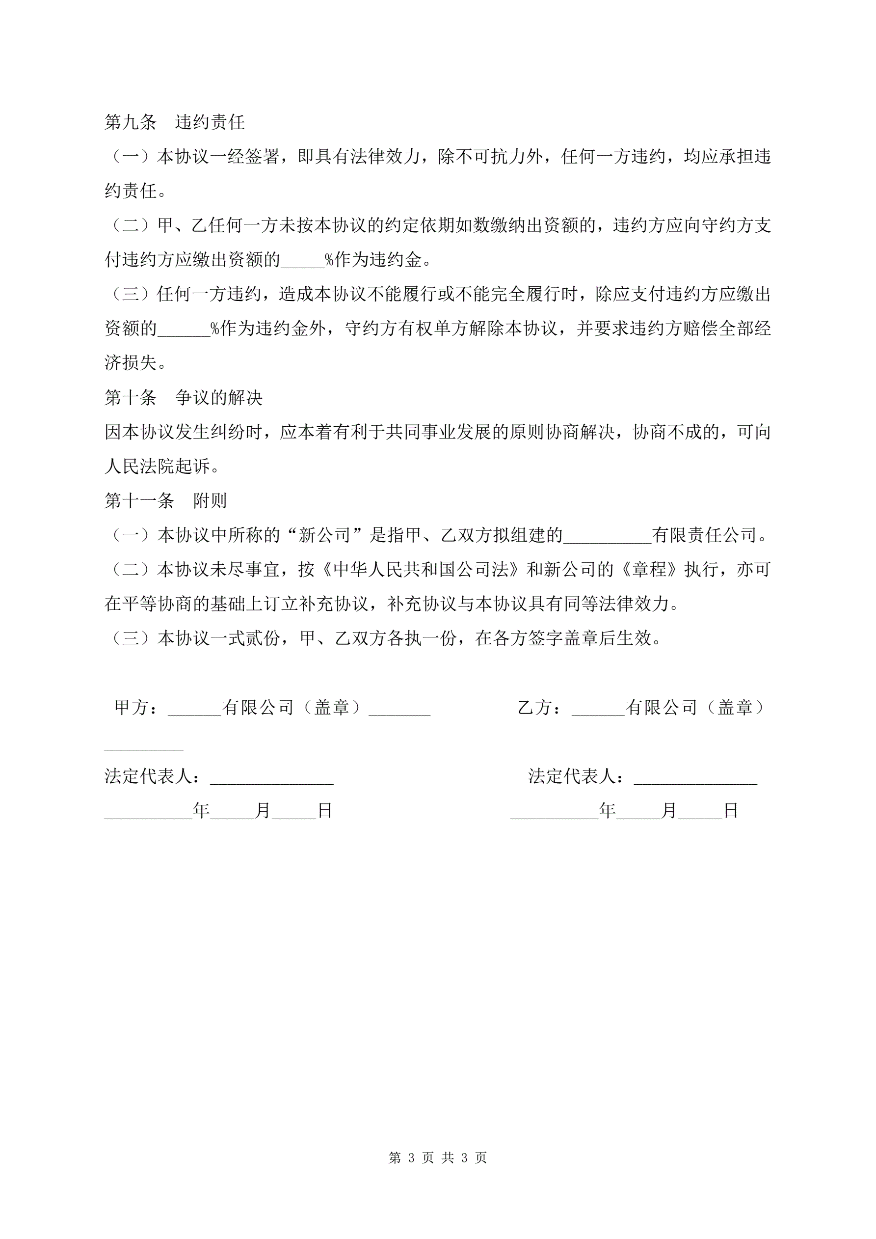 组建集团协议最新模板