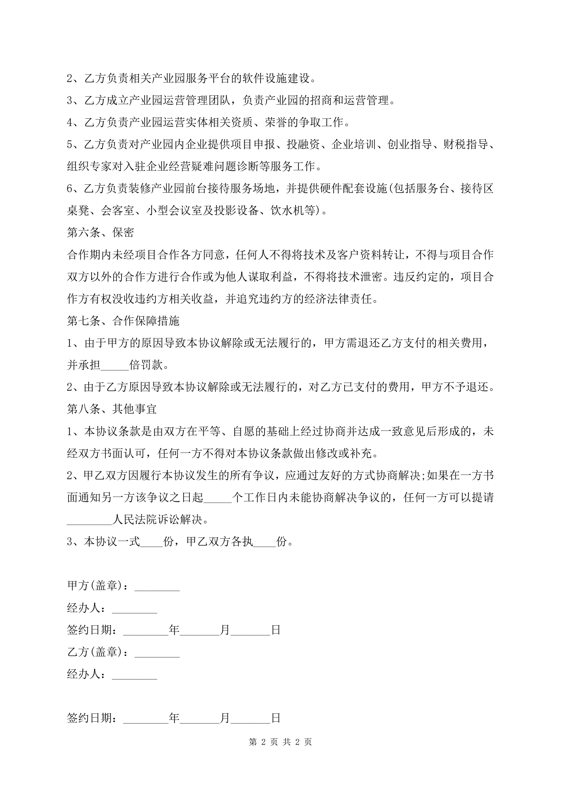 产业园合作协议合同范本