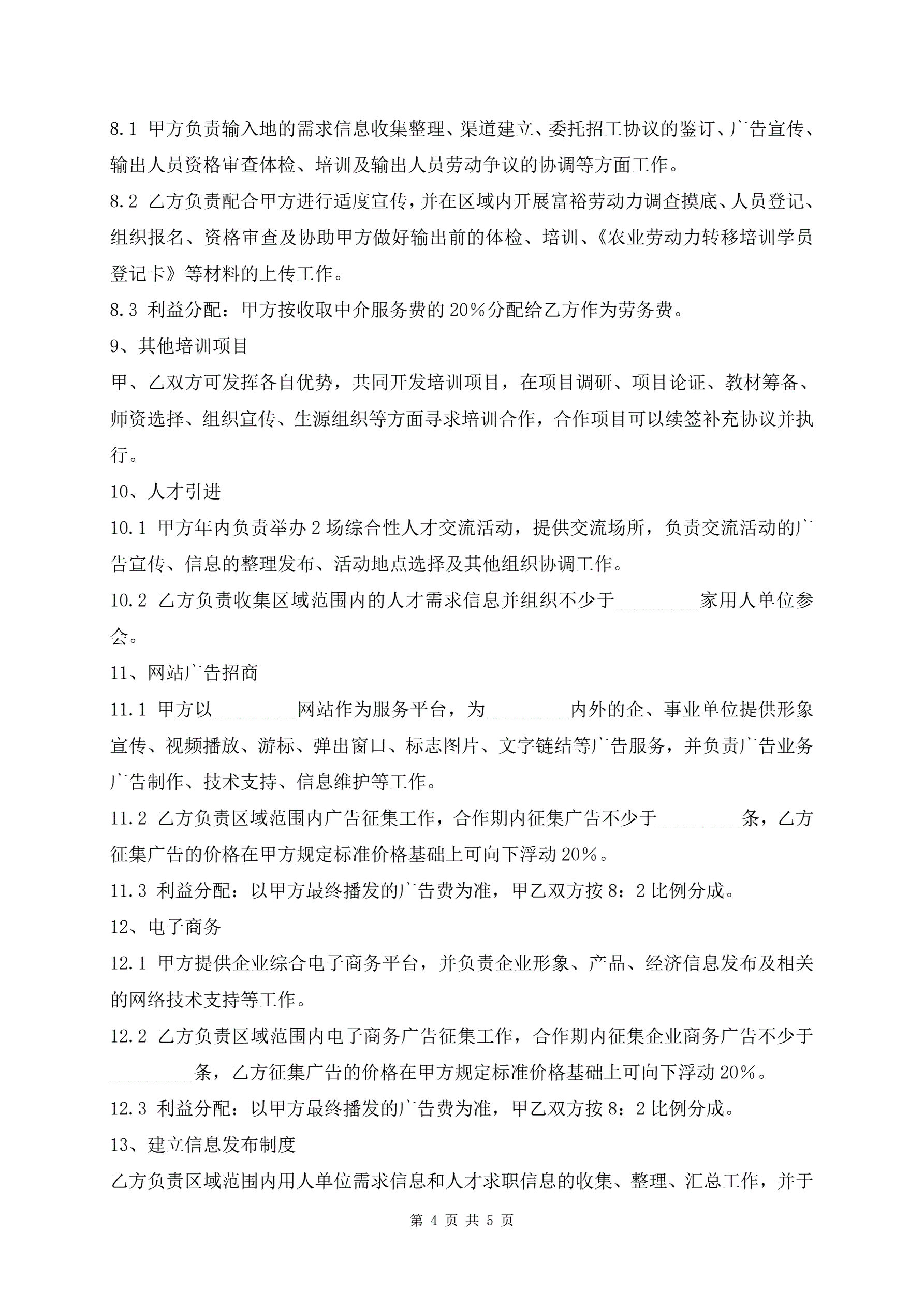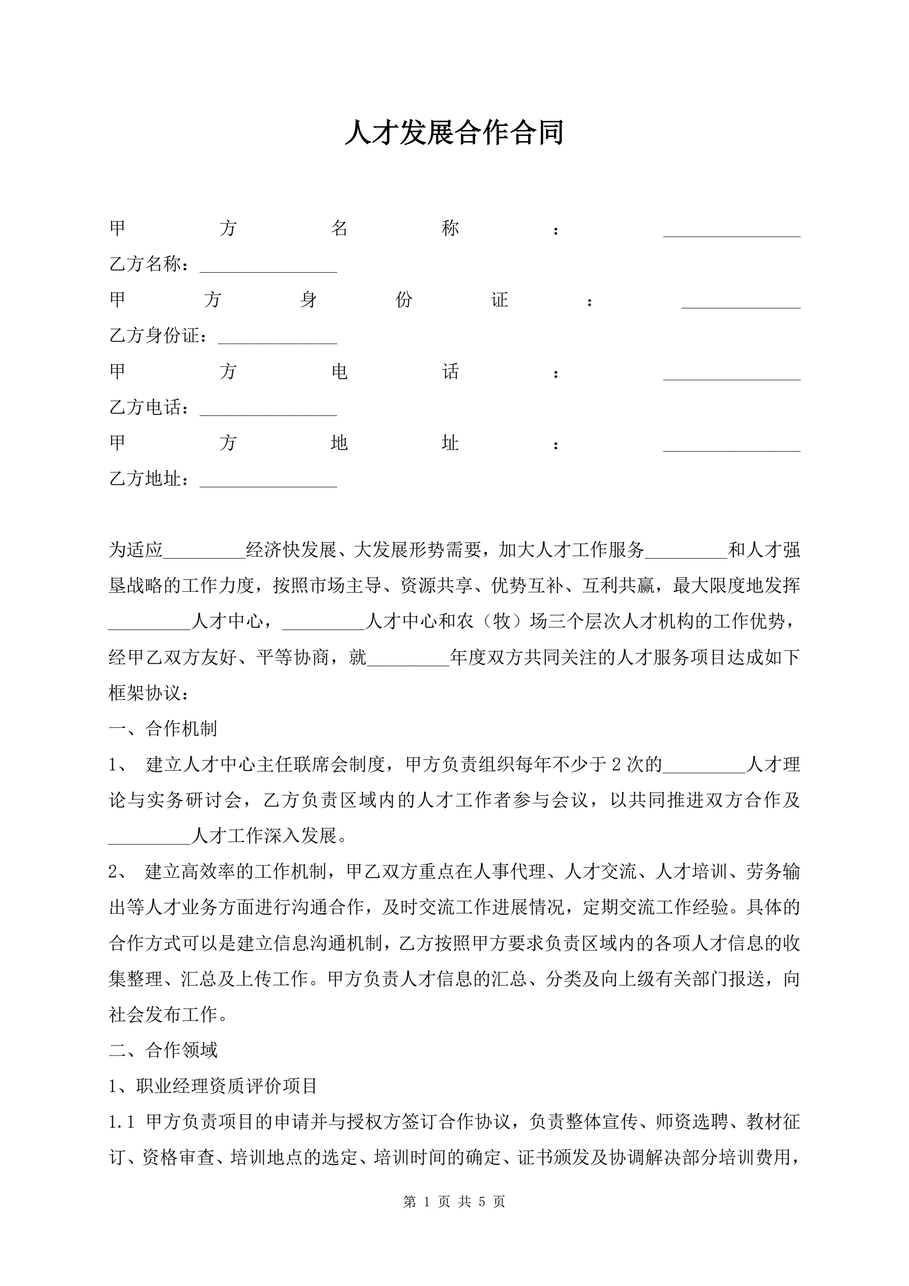人才发展合作合同