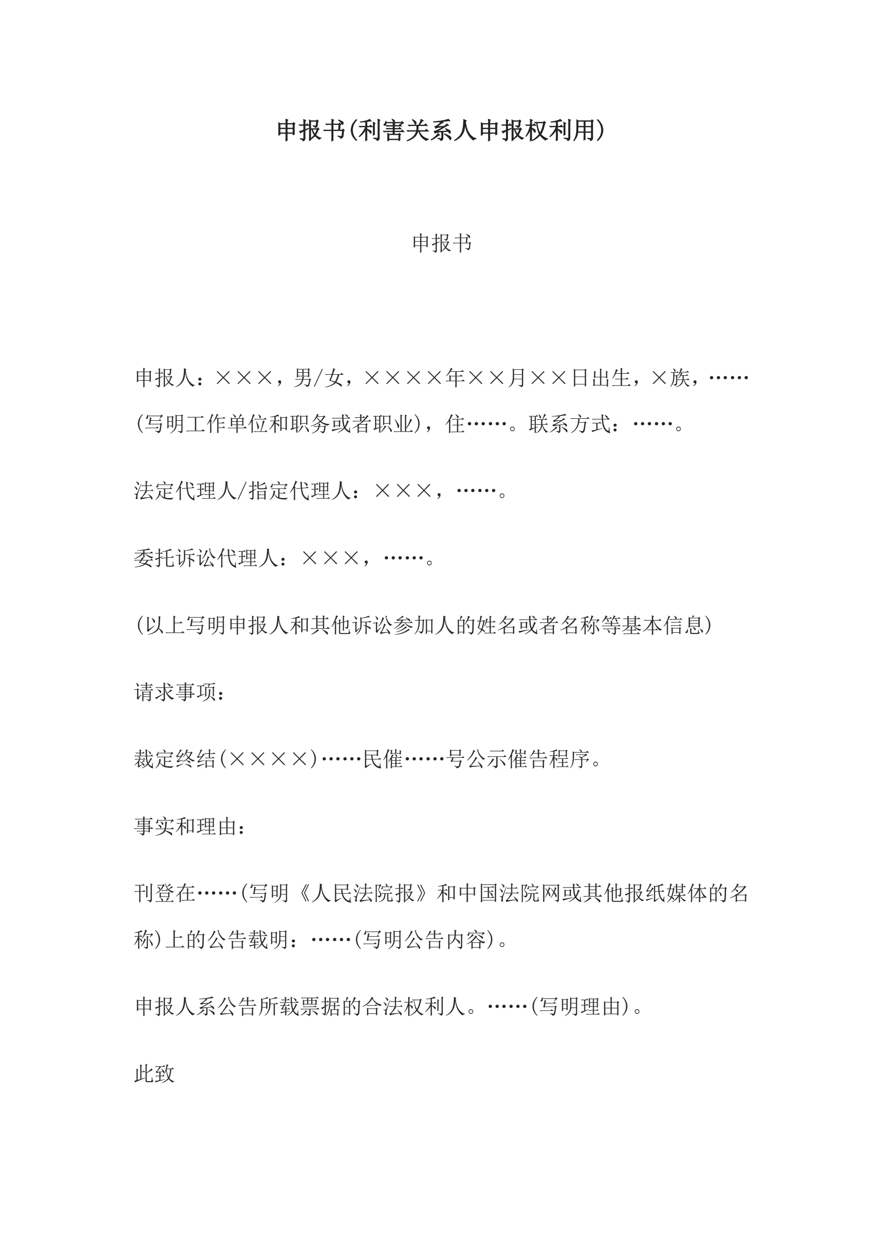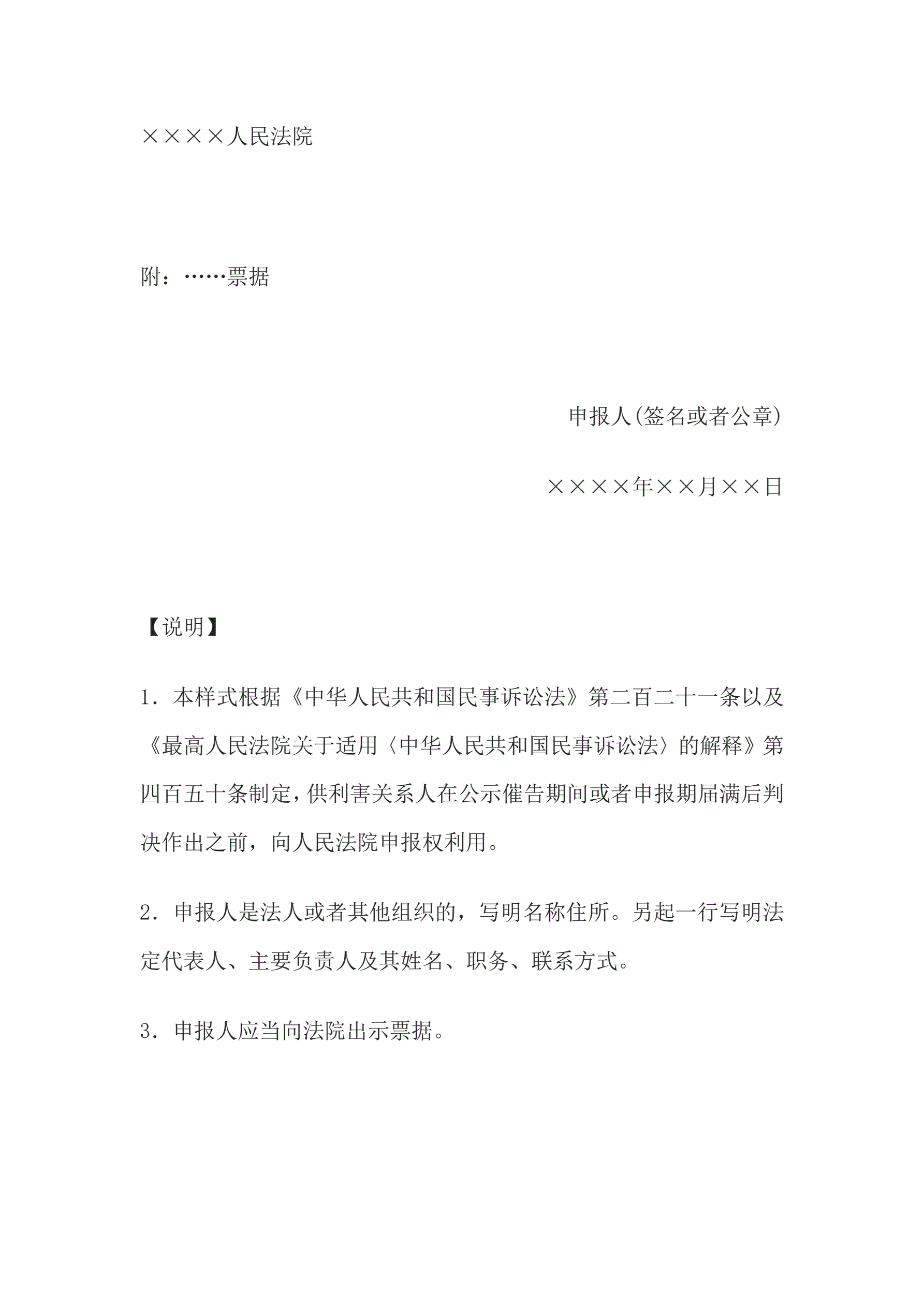 >申报书(利害关系人申报权利用)