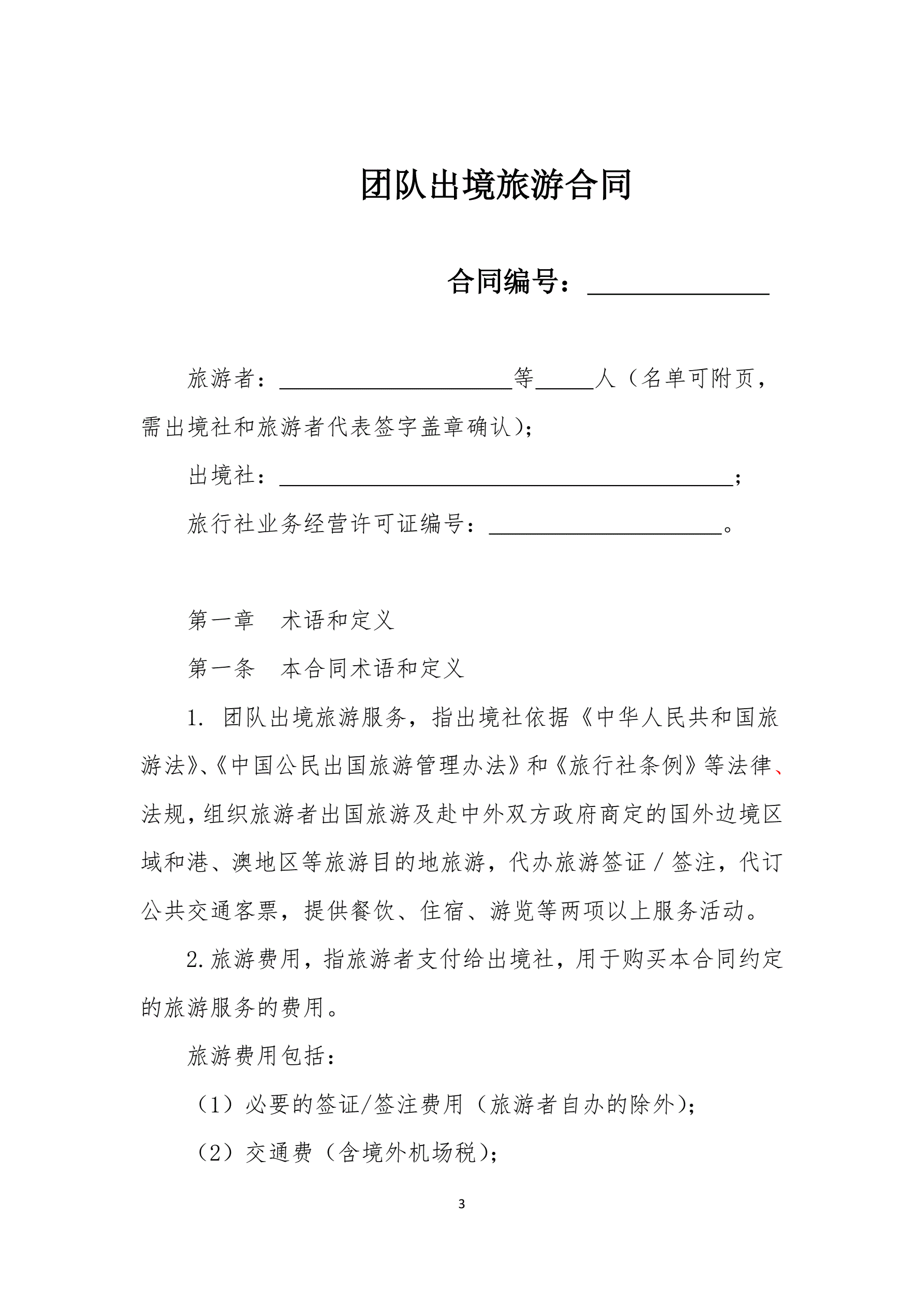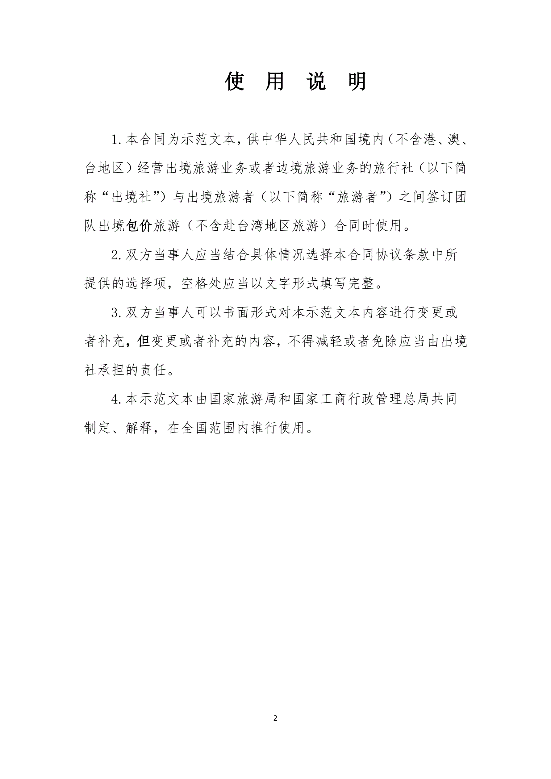 国家旅游局新版团队出境旅游合同