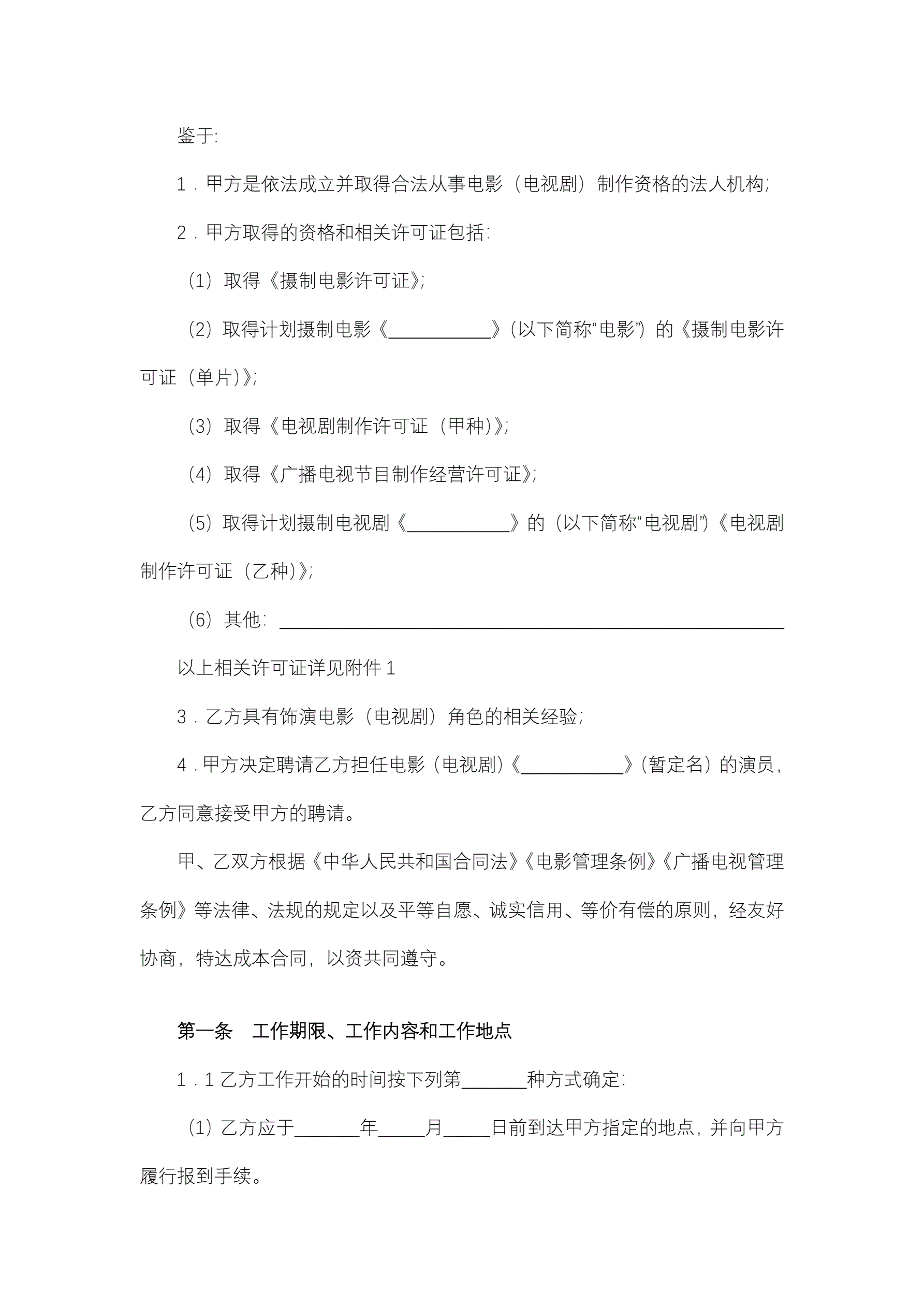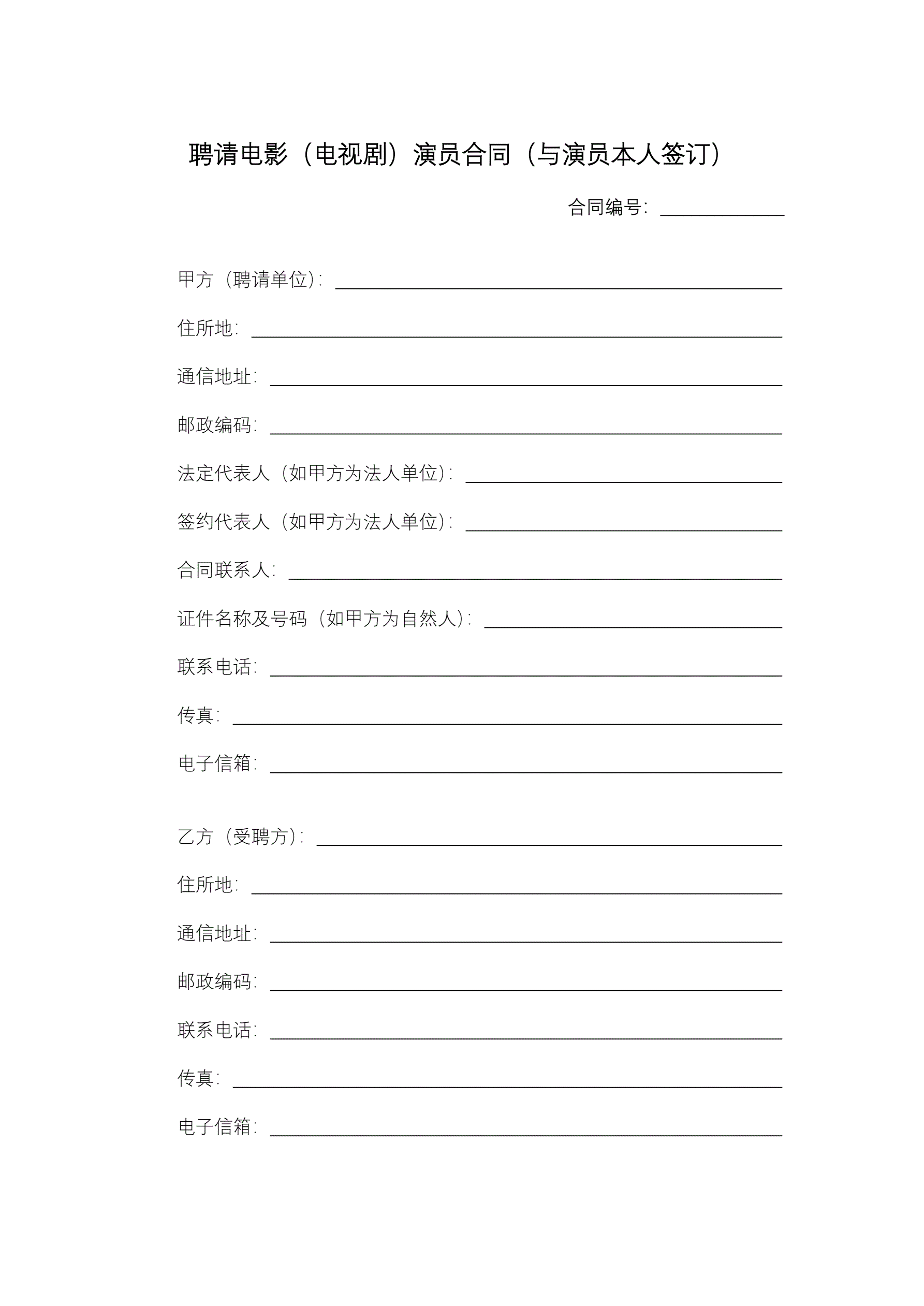 聘请电影(电视剧)演员合同(与演员本人签订)
