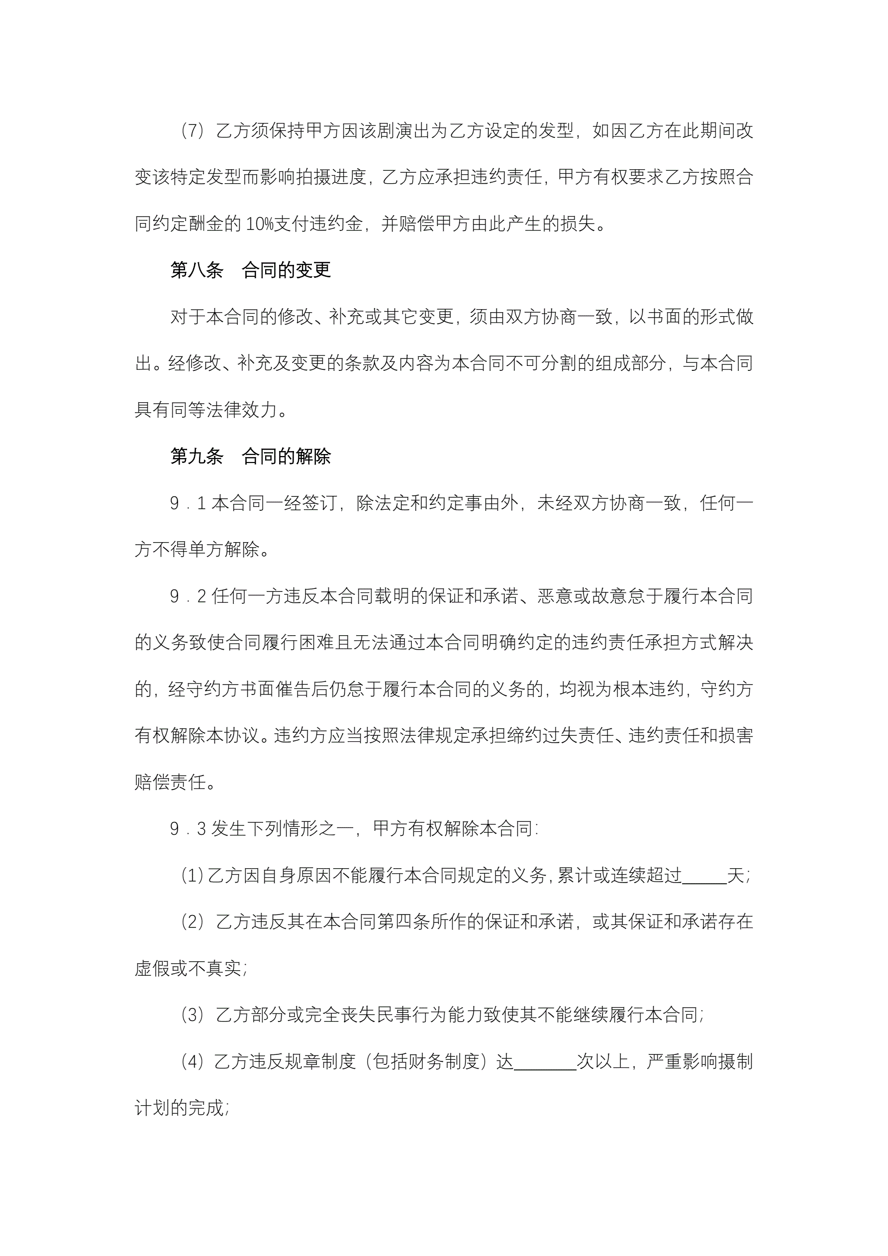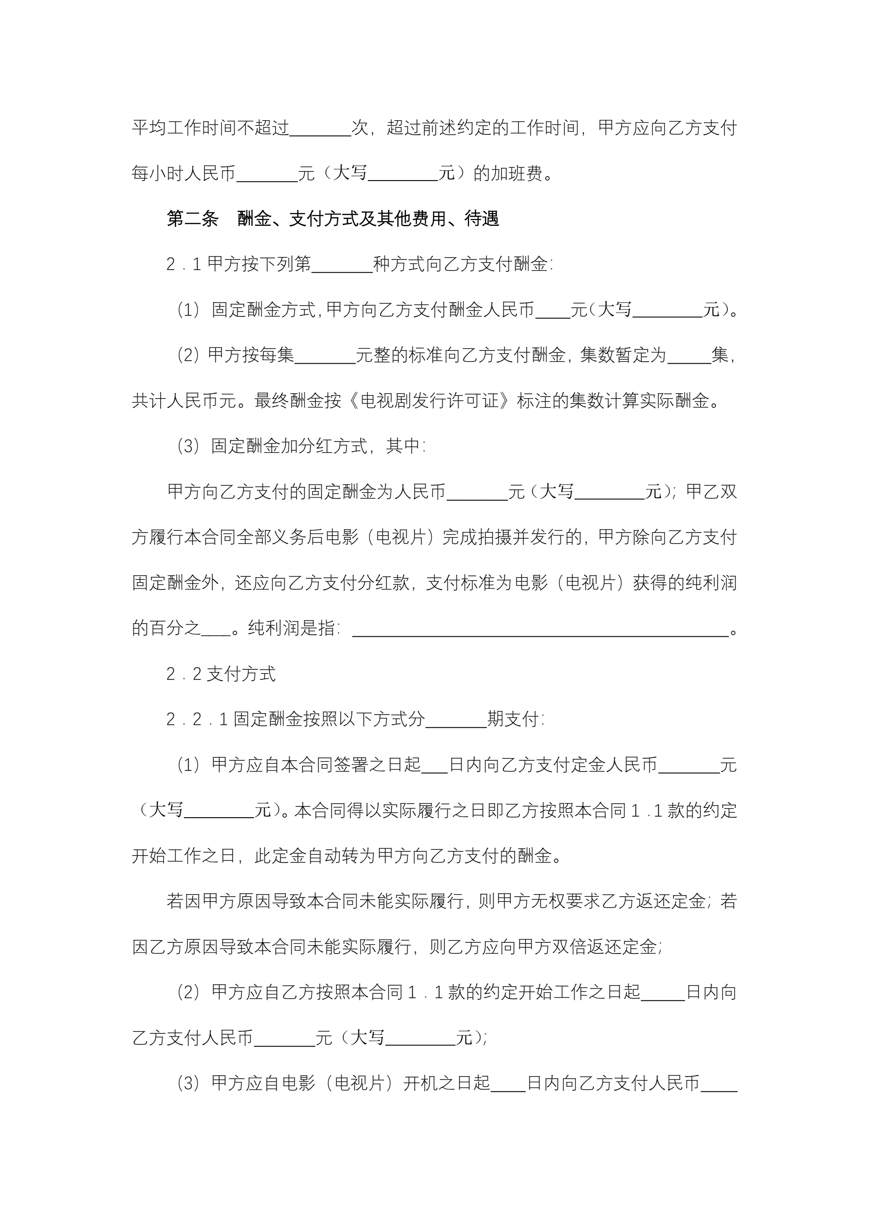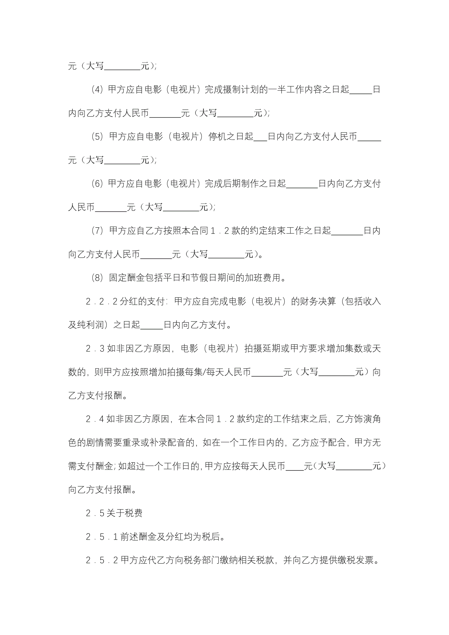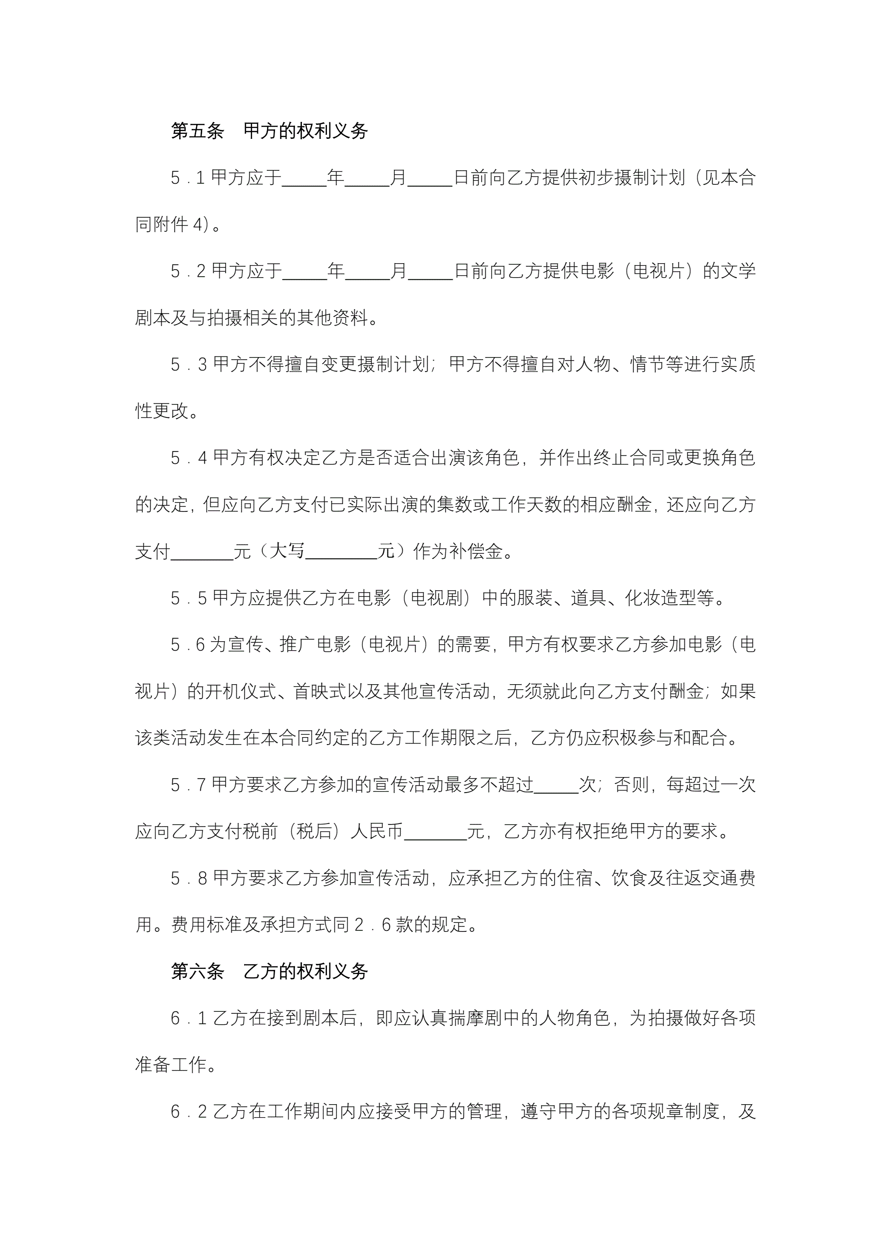 >聘请电影(电视剧)演员合同(与演员本人签订)