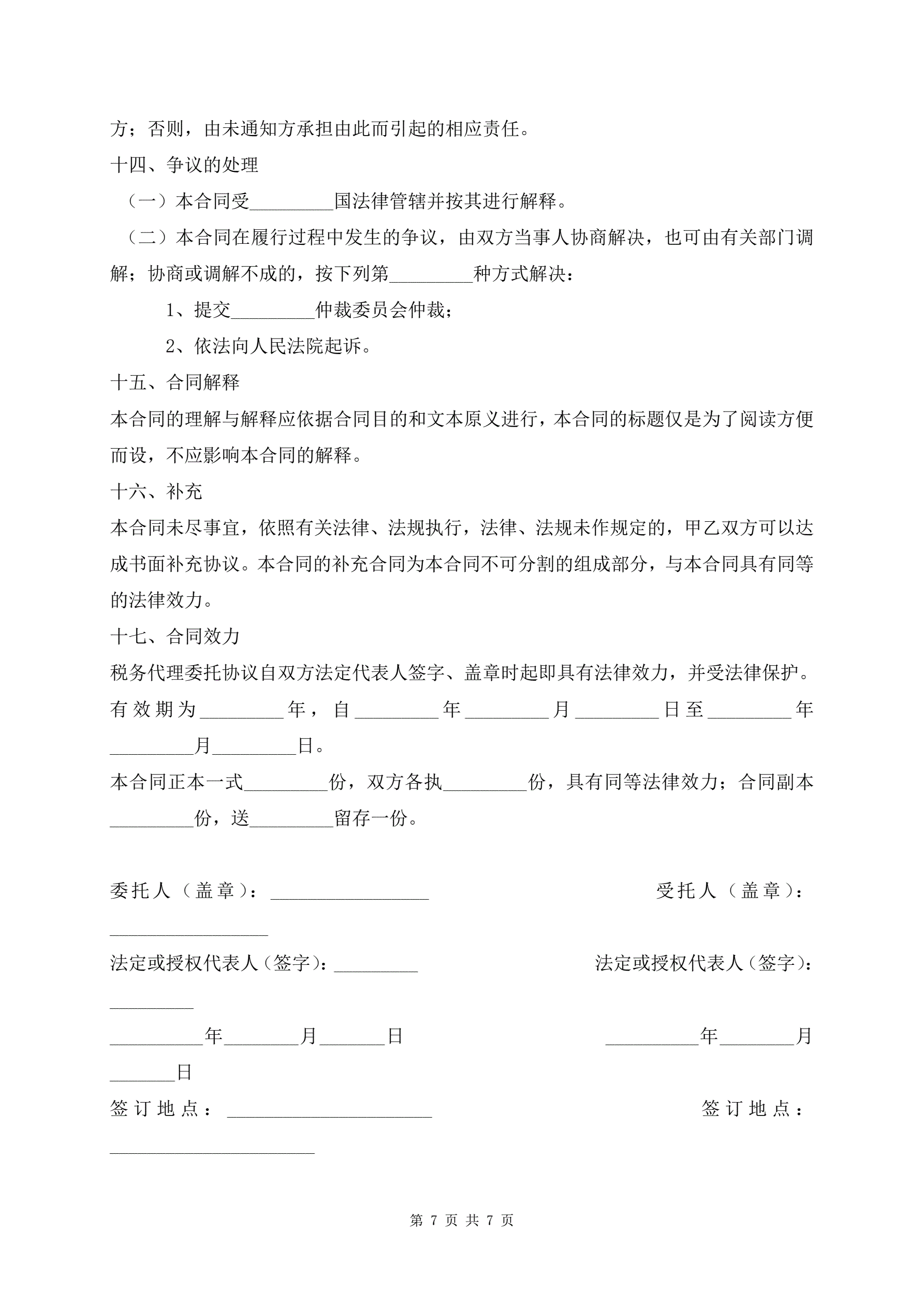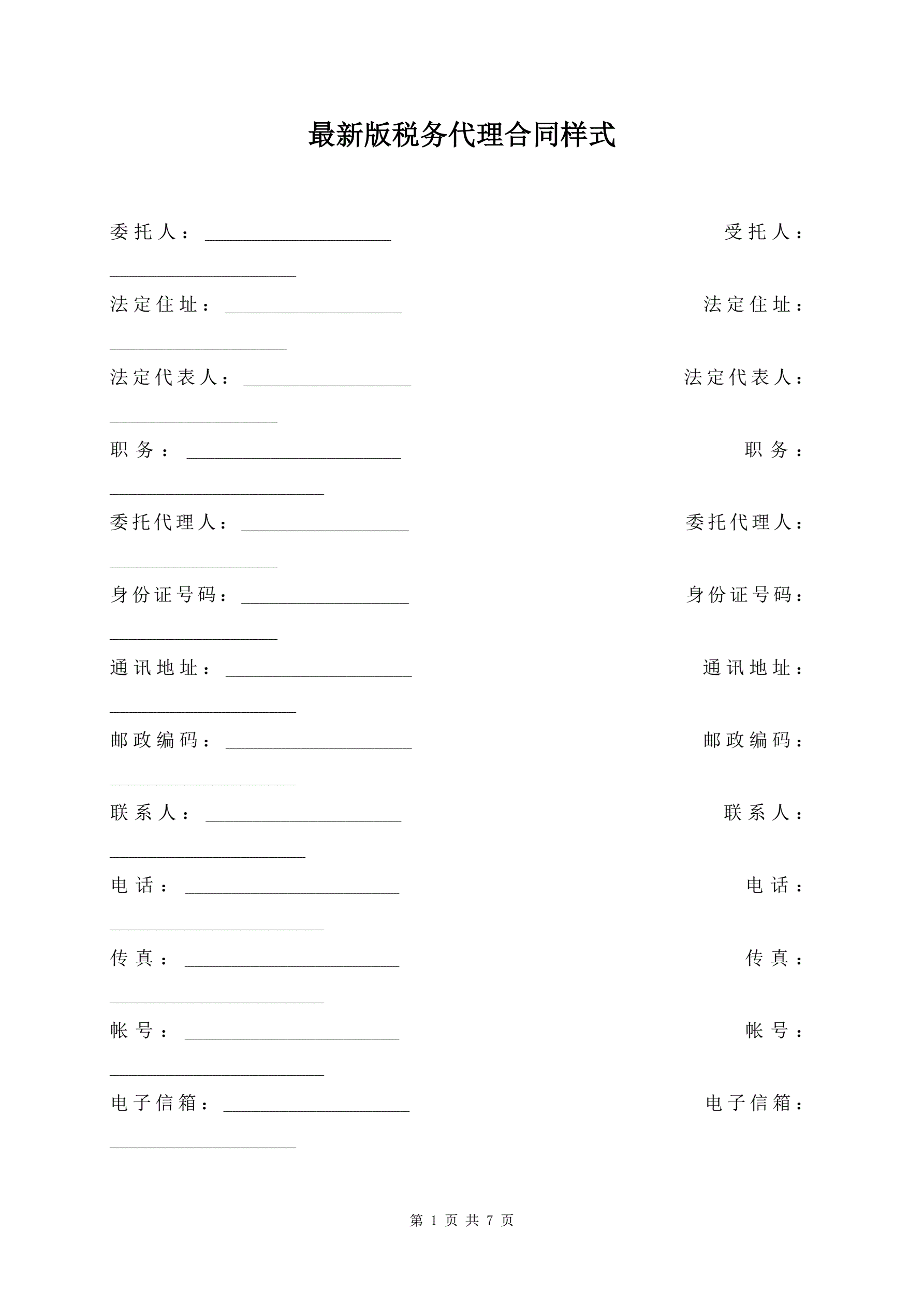 >最新版税务代理合同样式