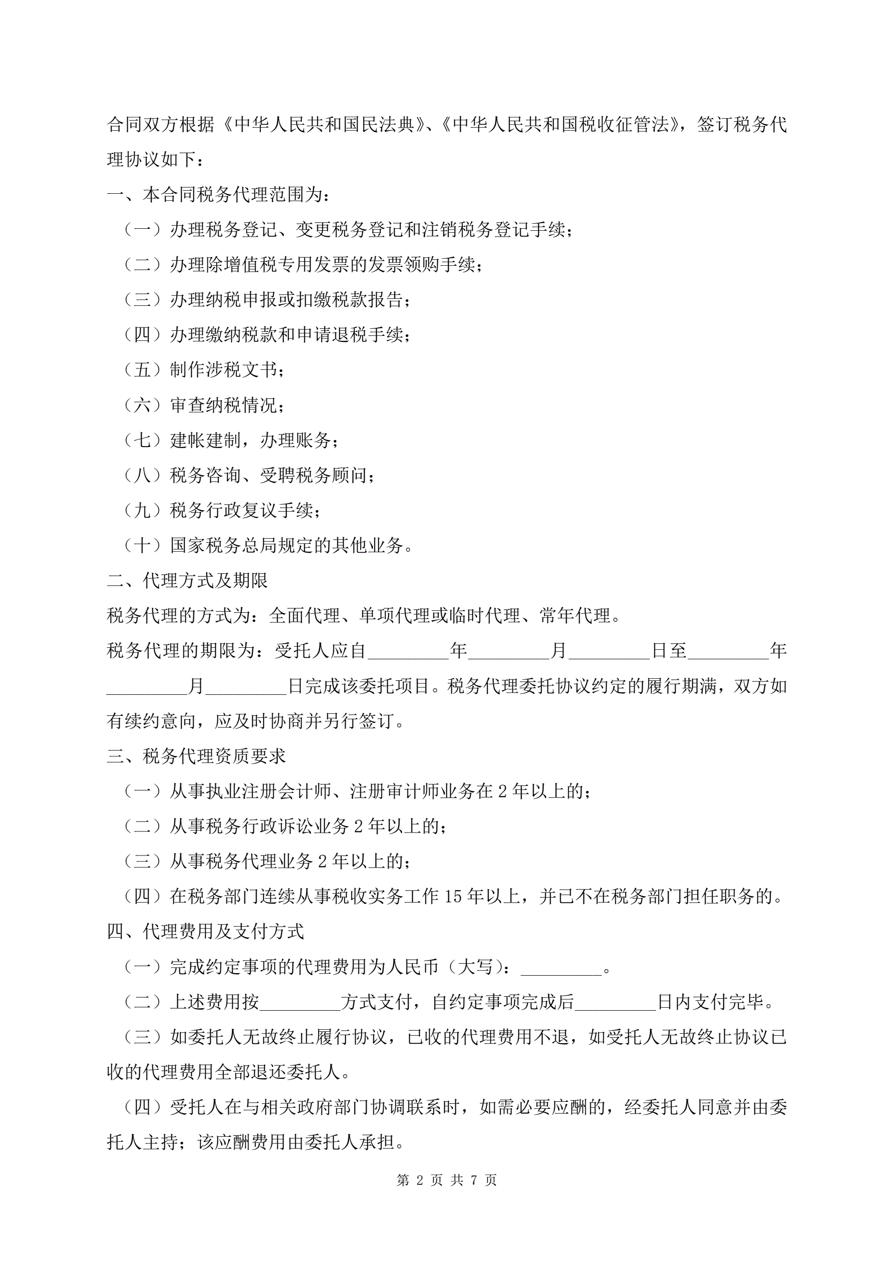 最新版税务代理合同样式