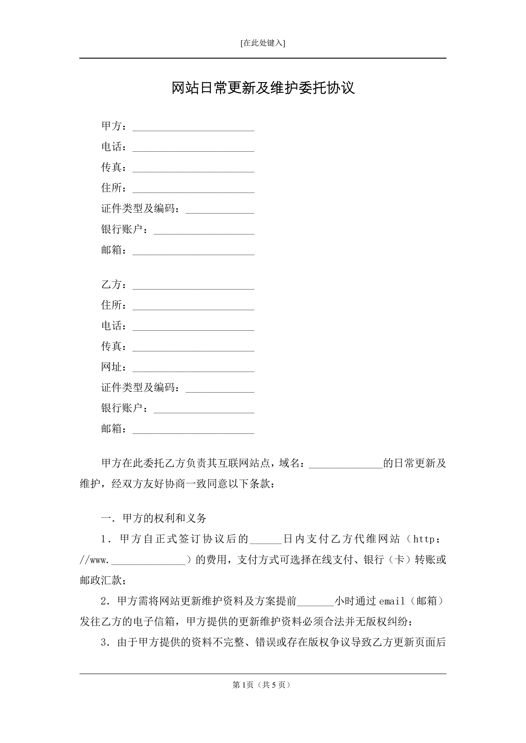 网站日常更新及维护委托协议