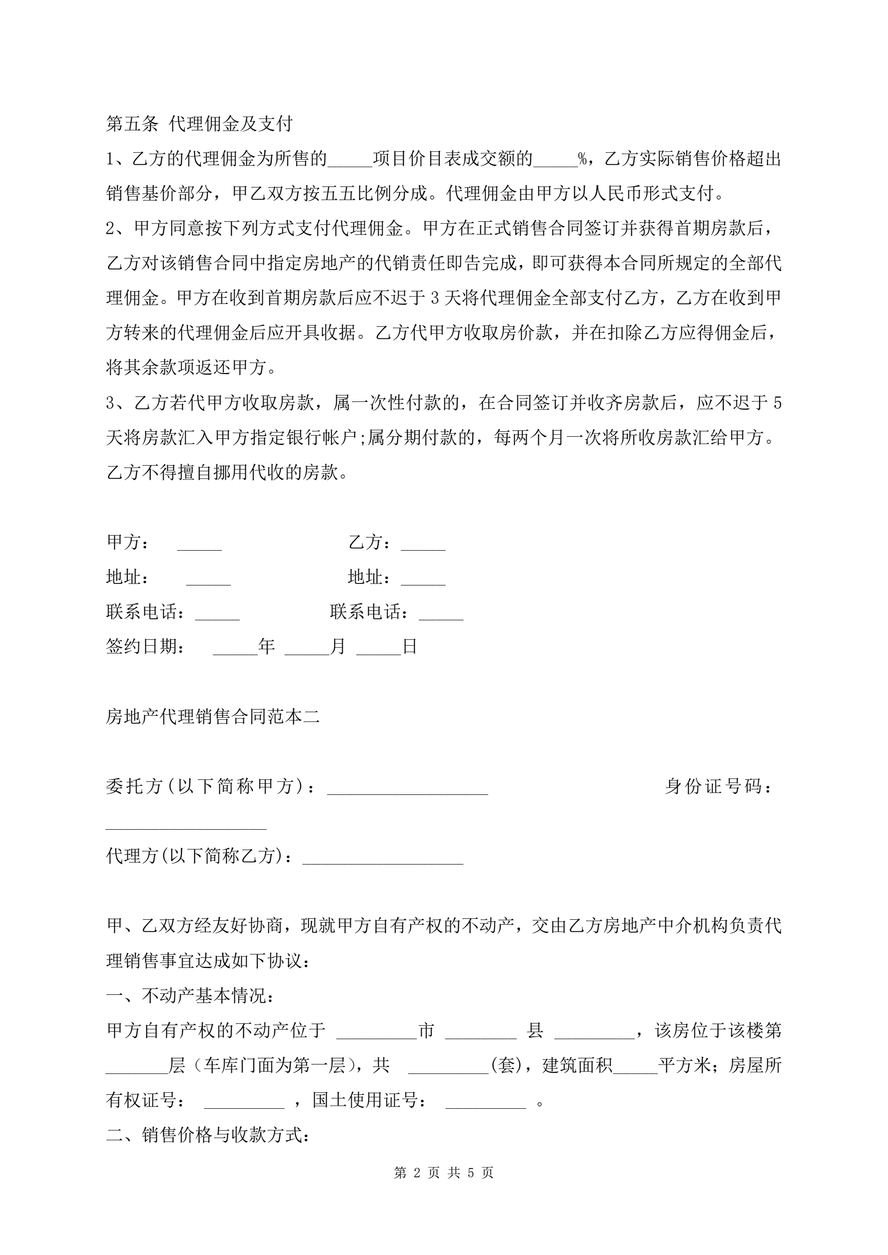 实用房产代理销售合同范本