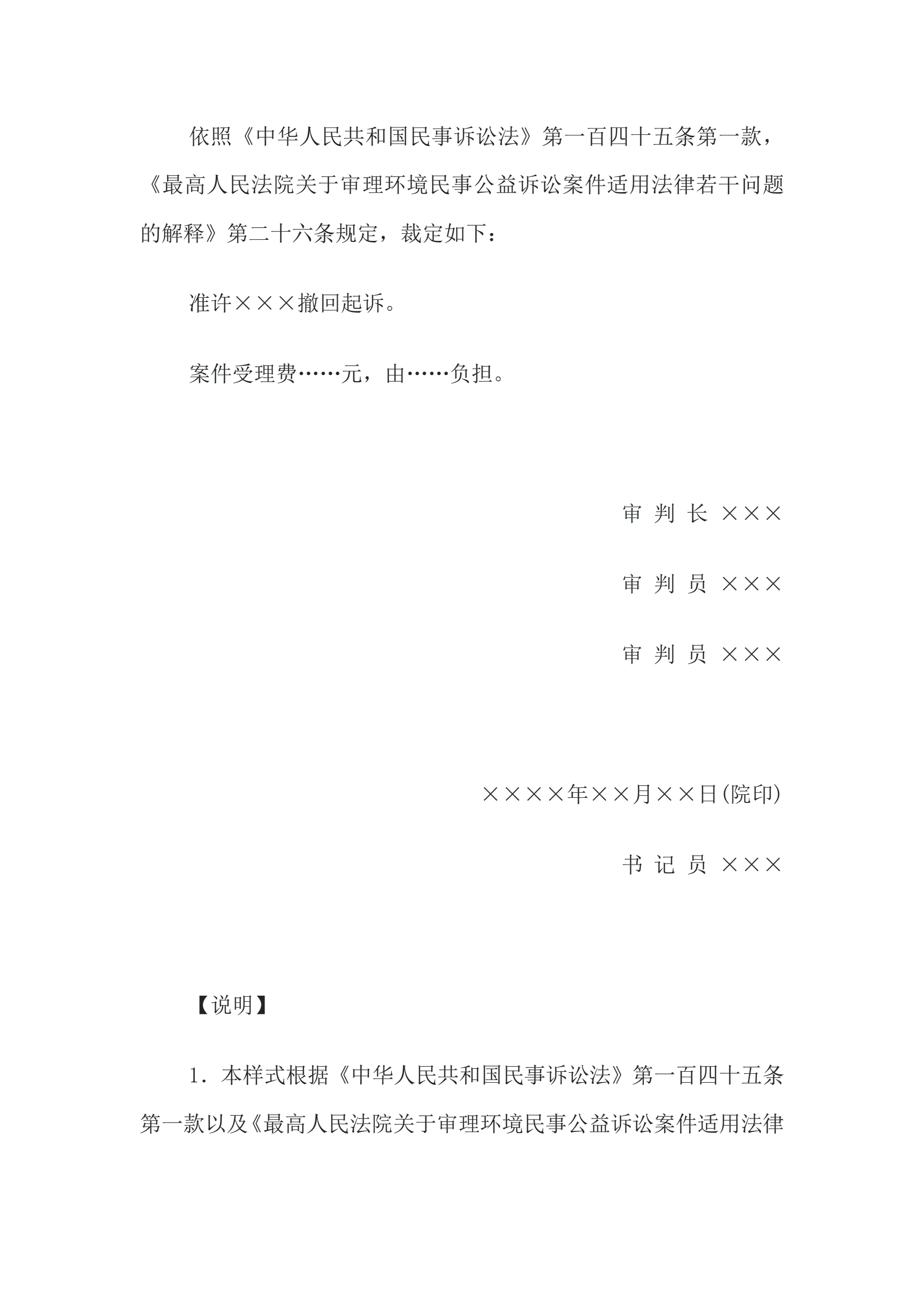 >民事裁定书(环境污染或者生态破坏公益诉讼准许撤回起诉用)