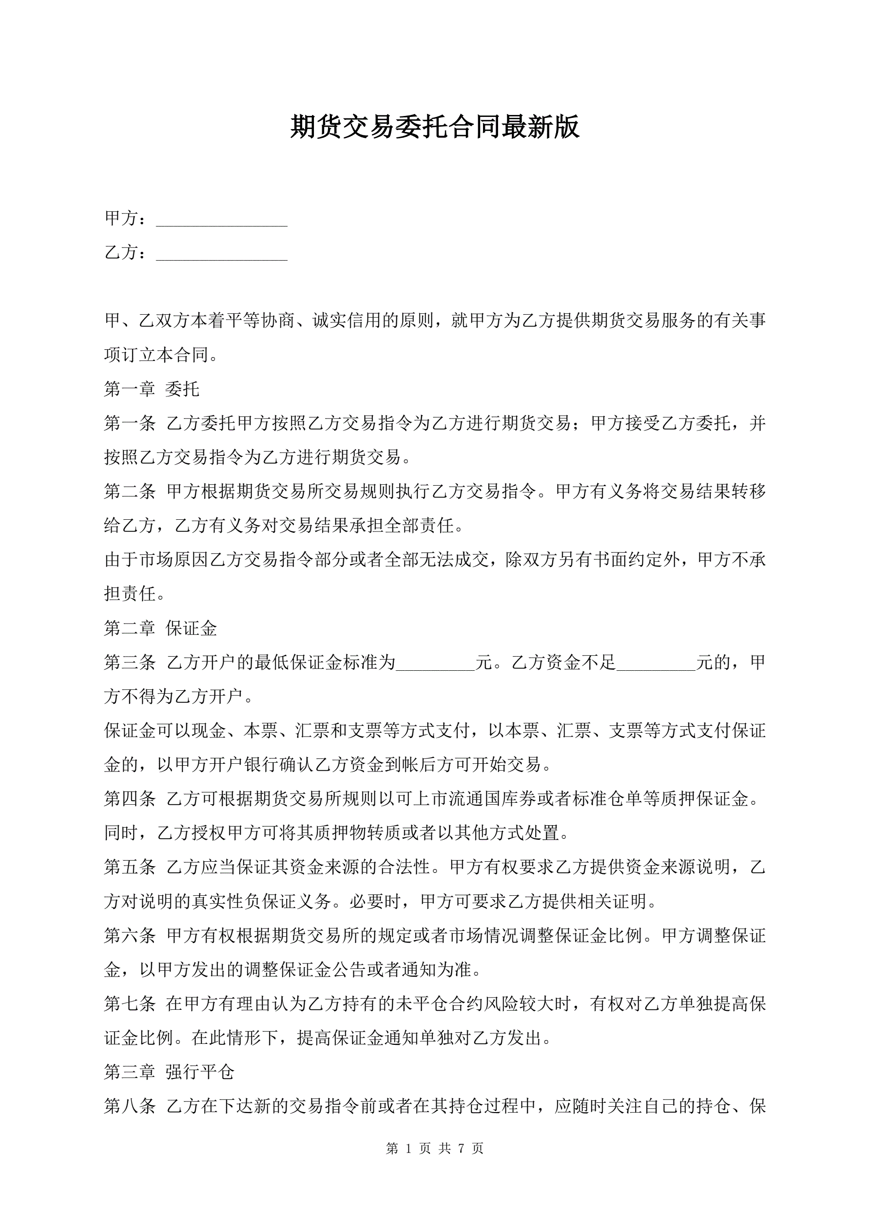 >期货交易委托合同最新版
