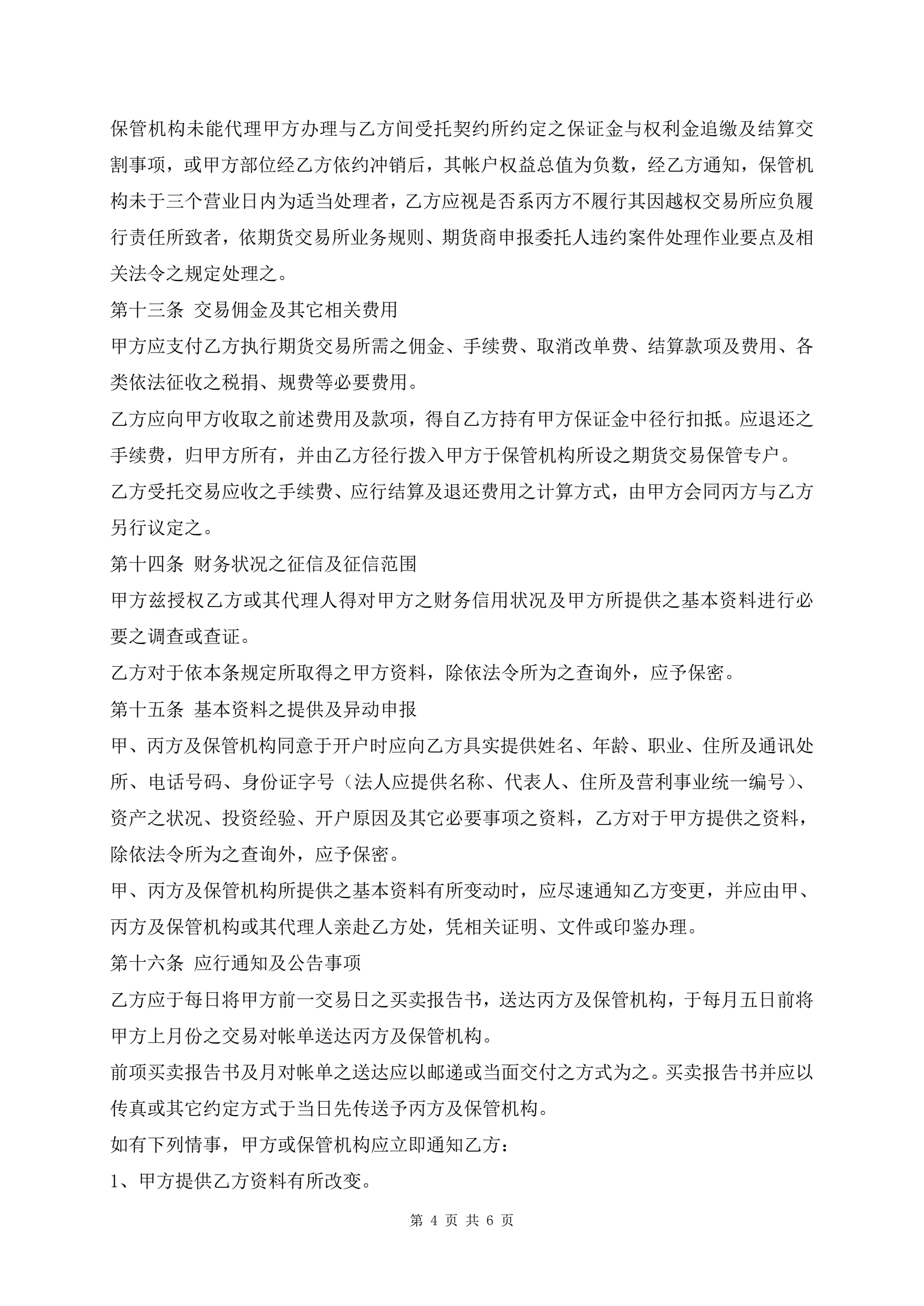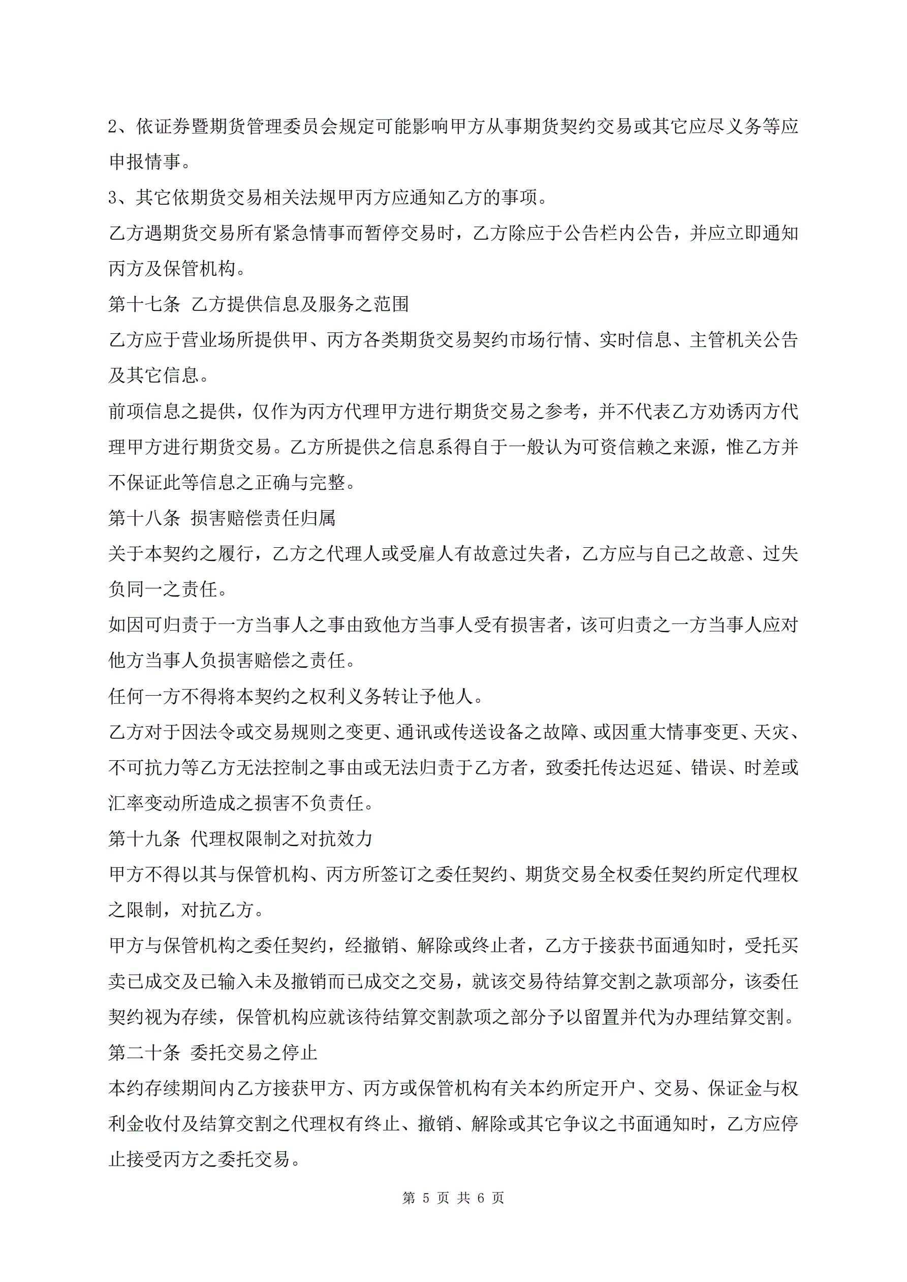 >期货交易受任人的期货委托合同新版