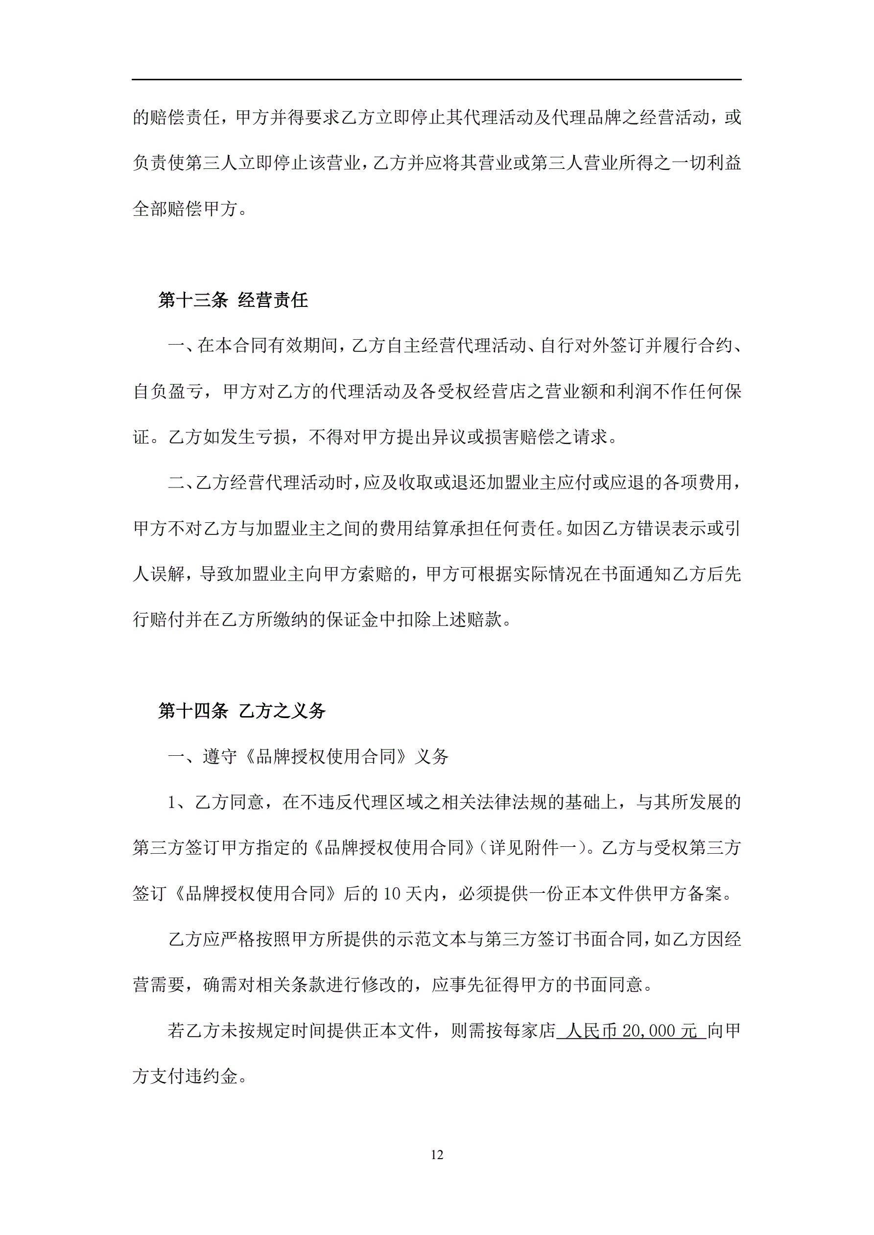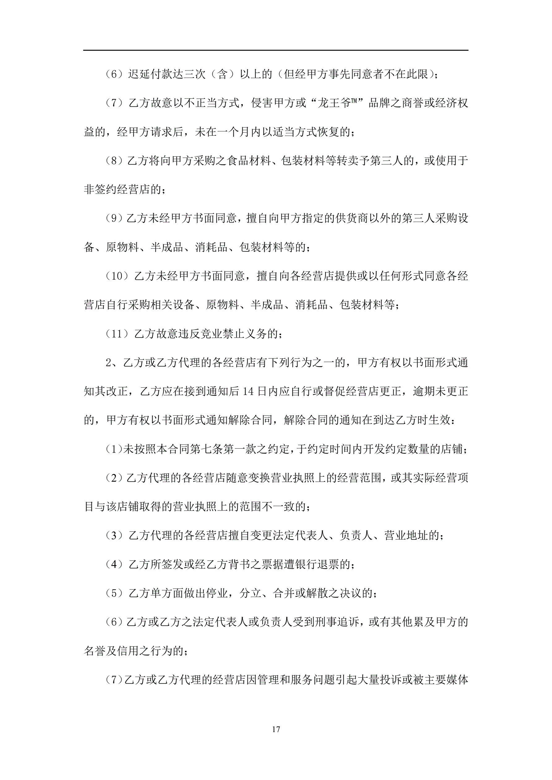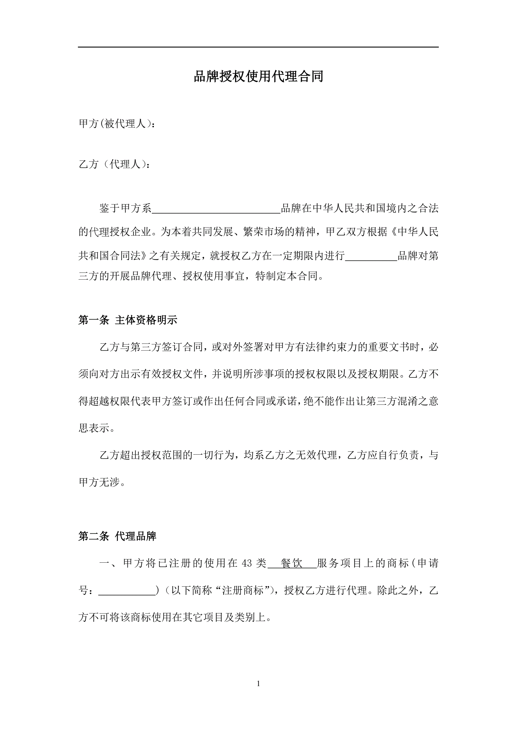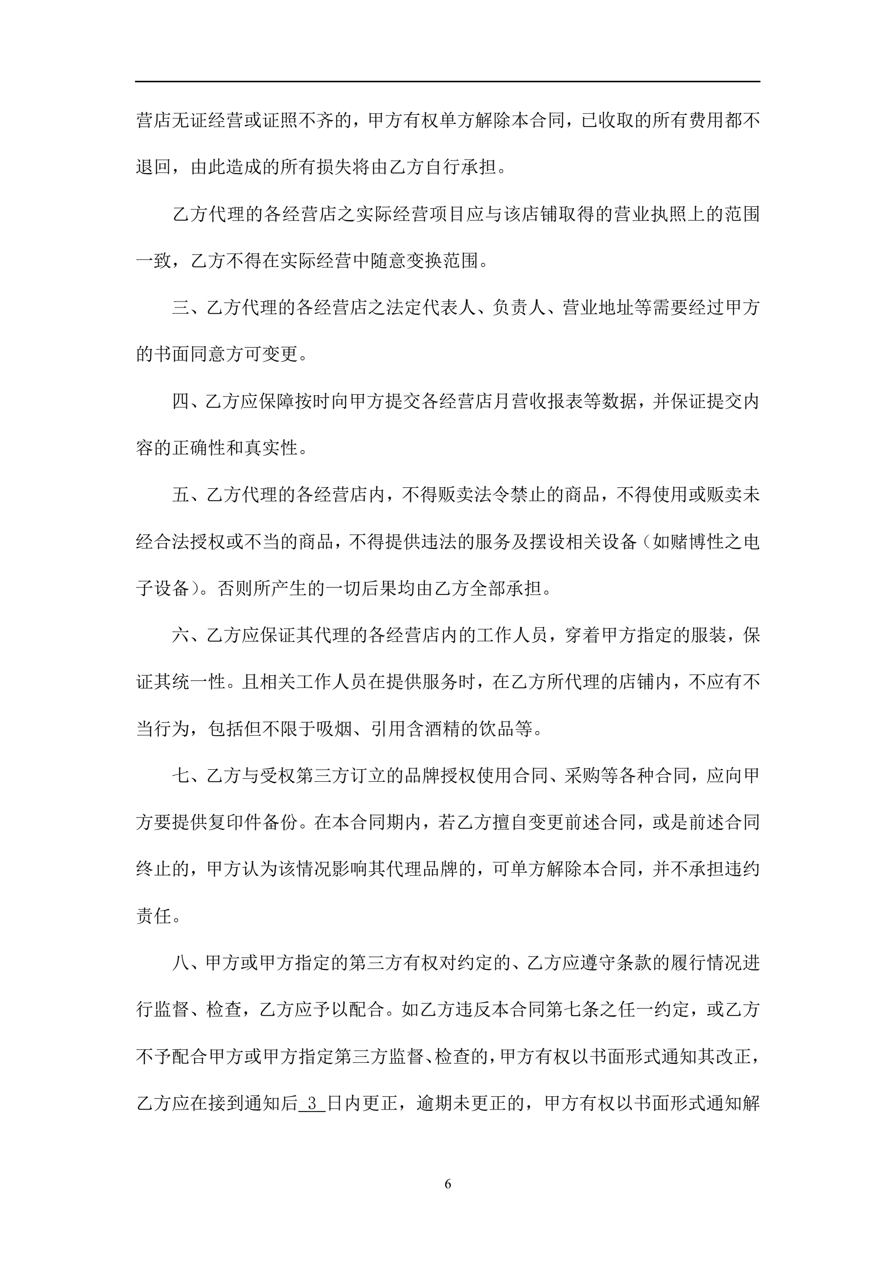 >餐饮连锁-代理合同