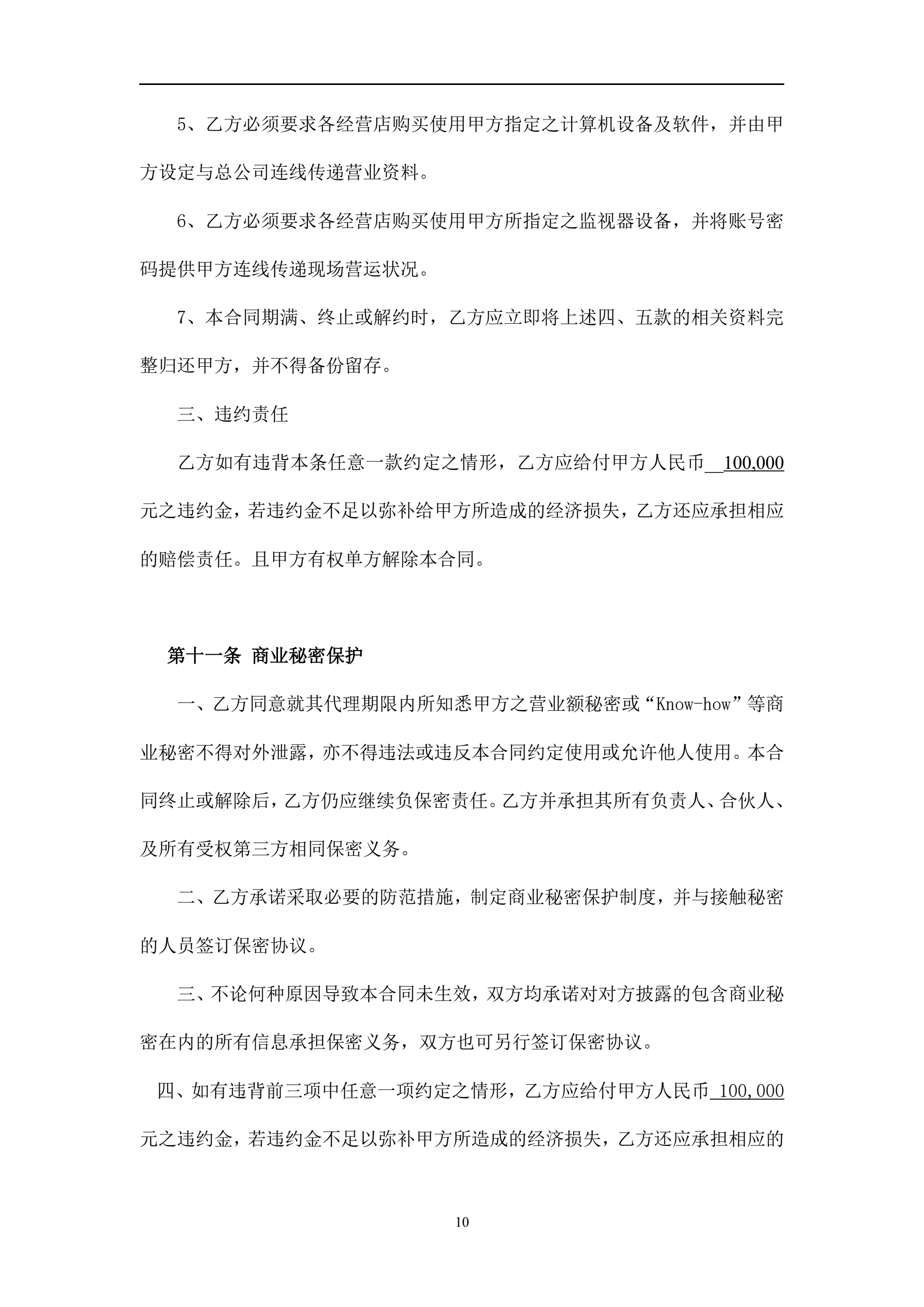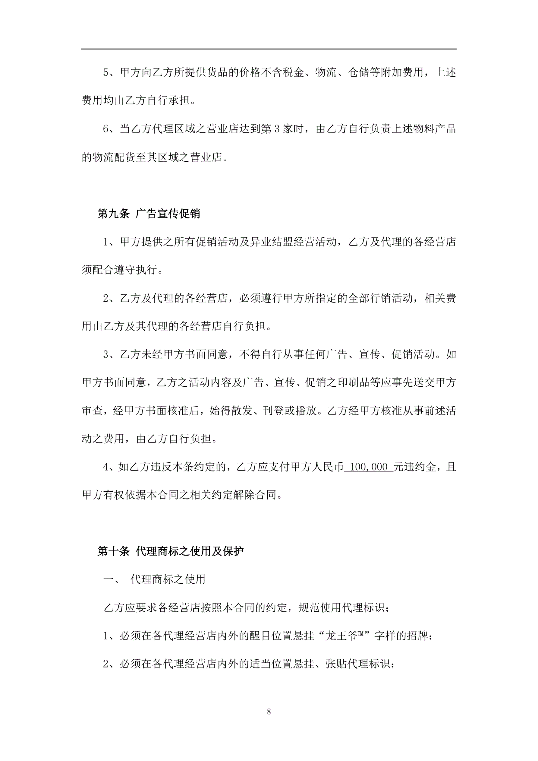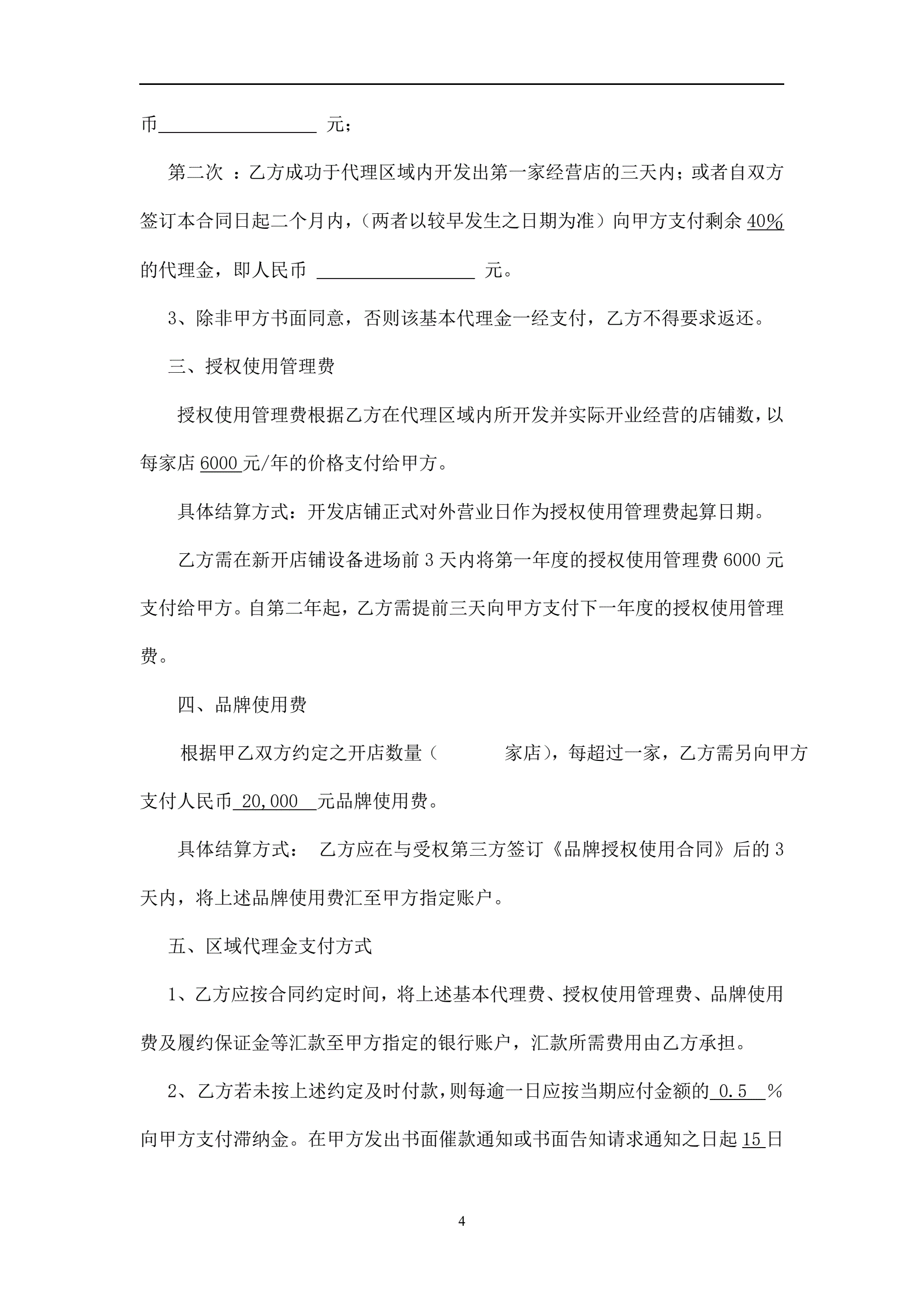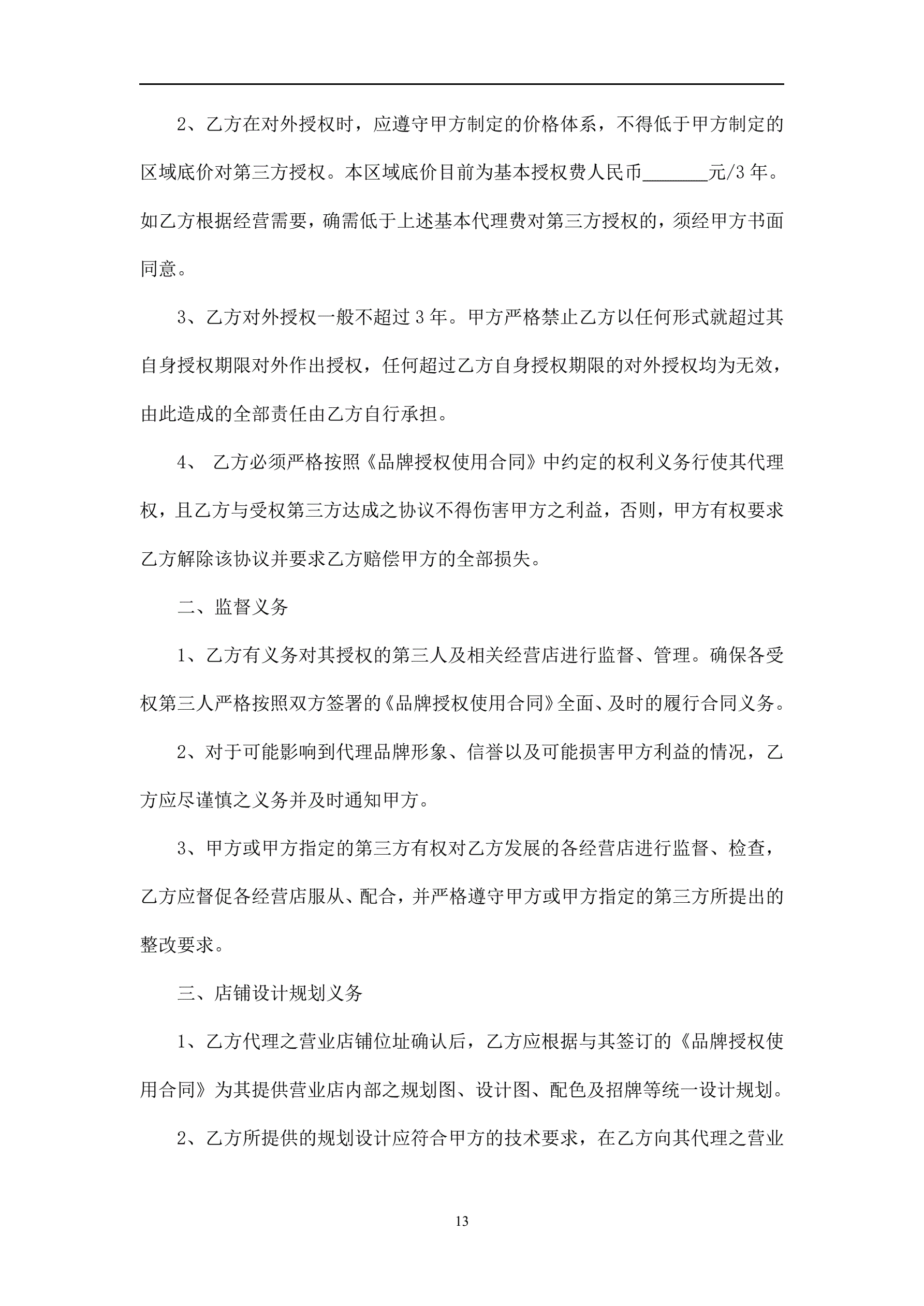 >餐饮连锁-代理合同