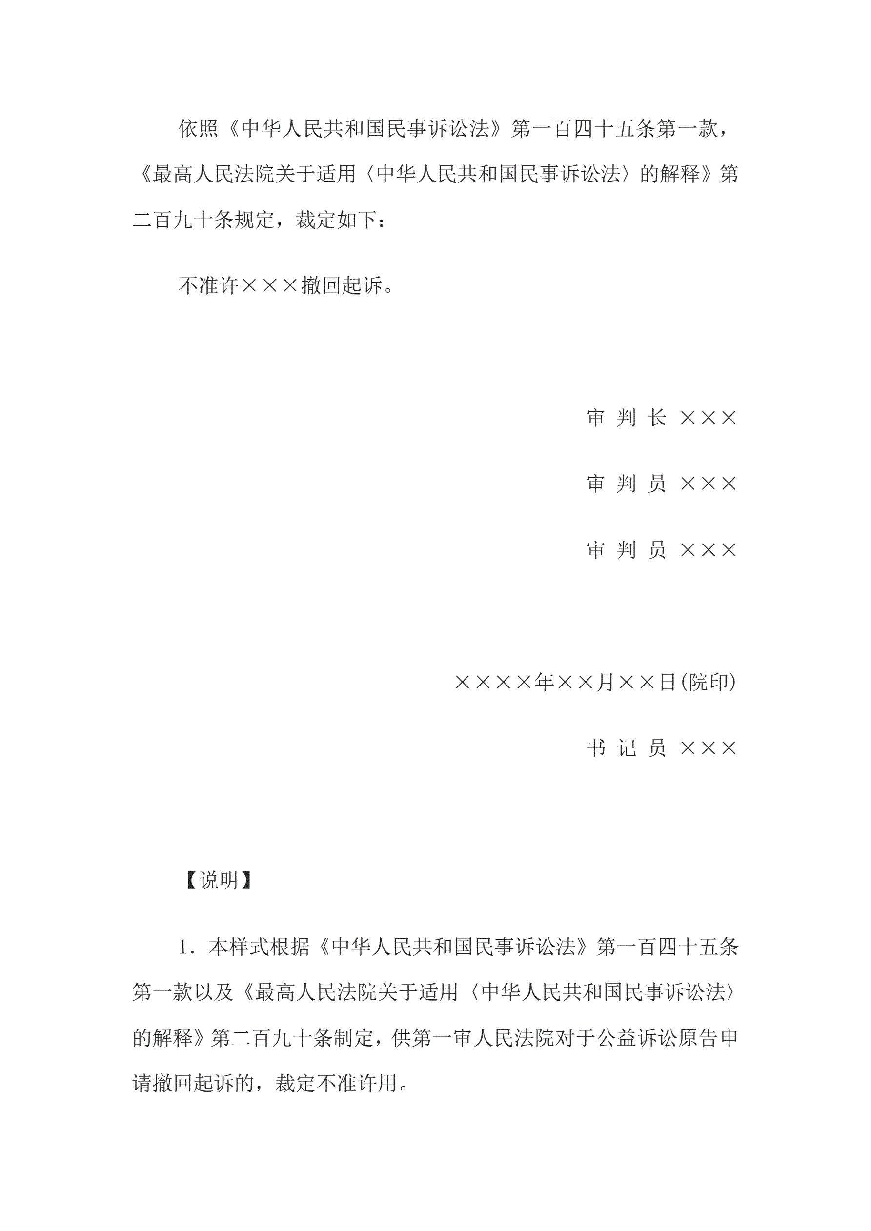 合同名称:民事裁定书(公益诉讼不准许撤回起诉用)