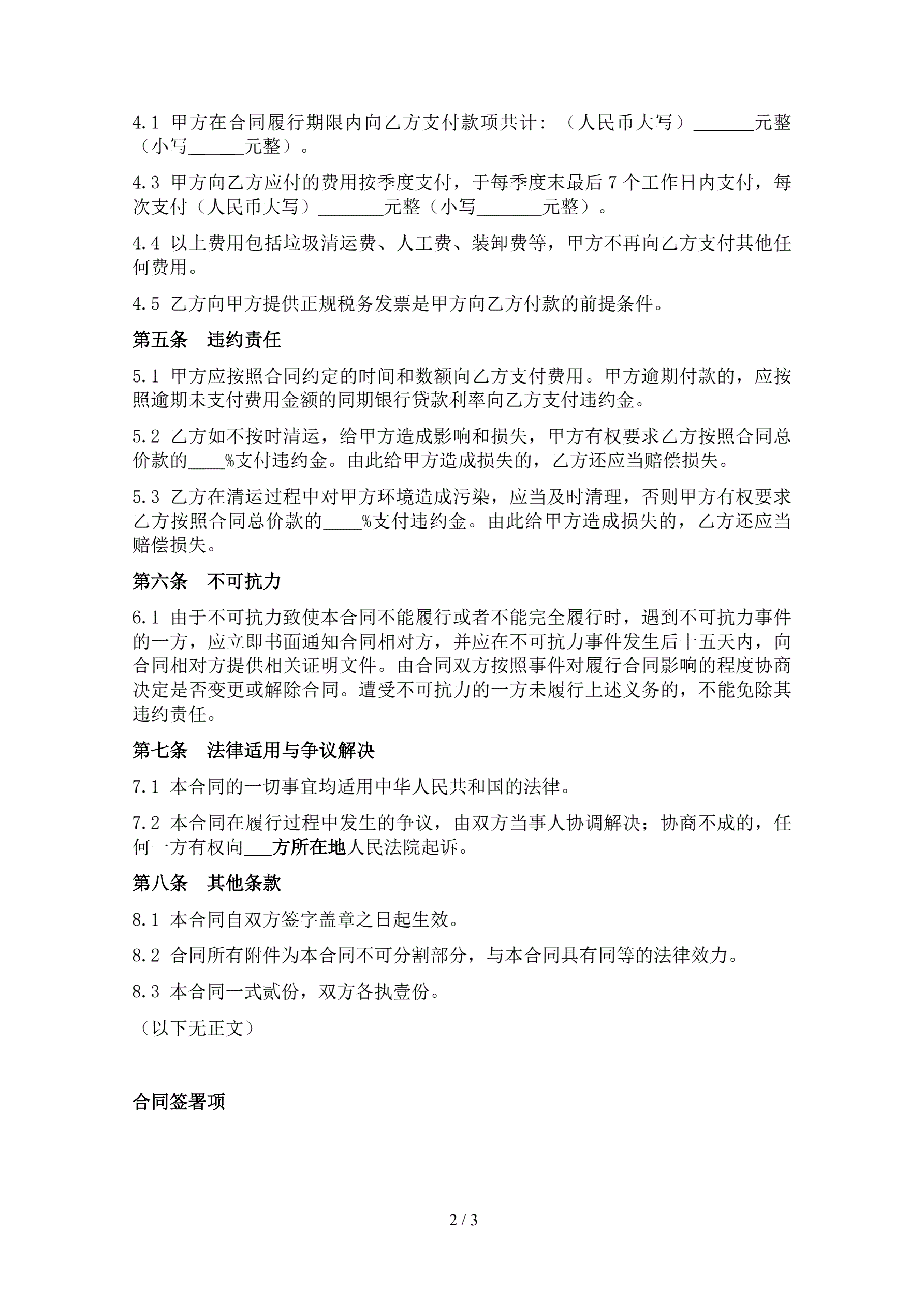 环境卫生管理责任合同