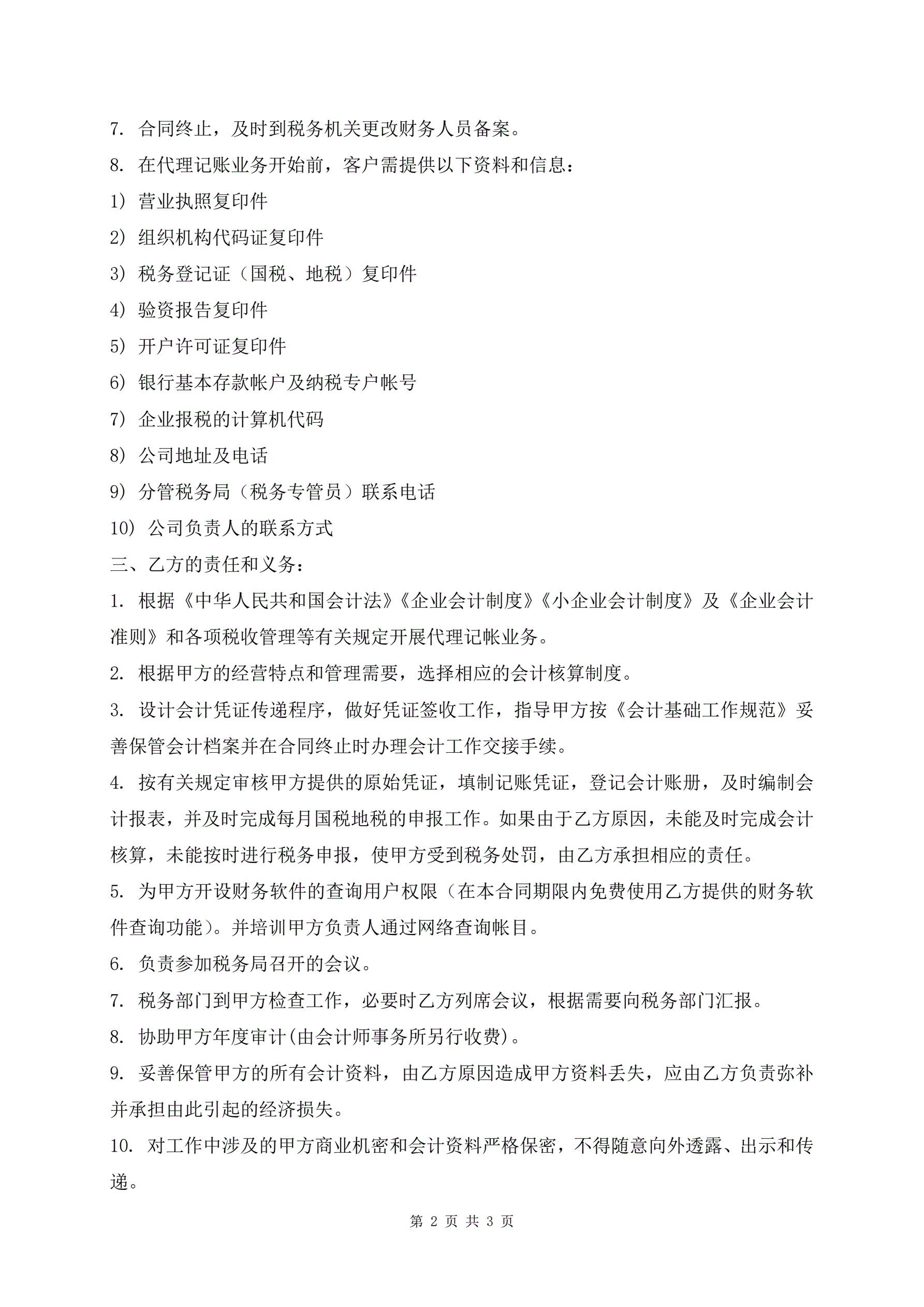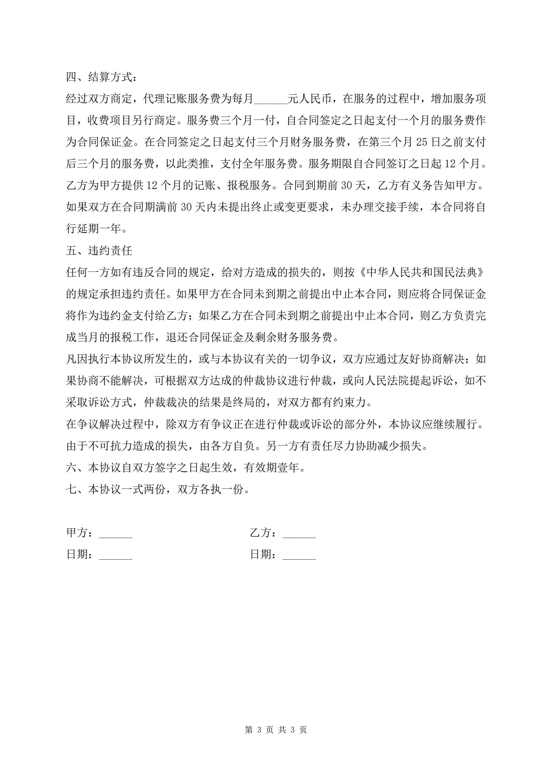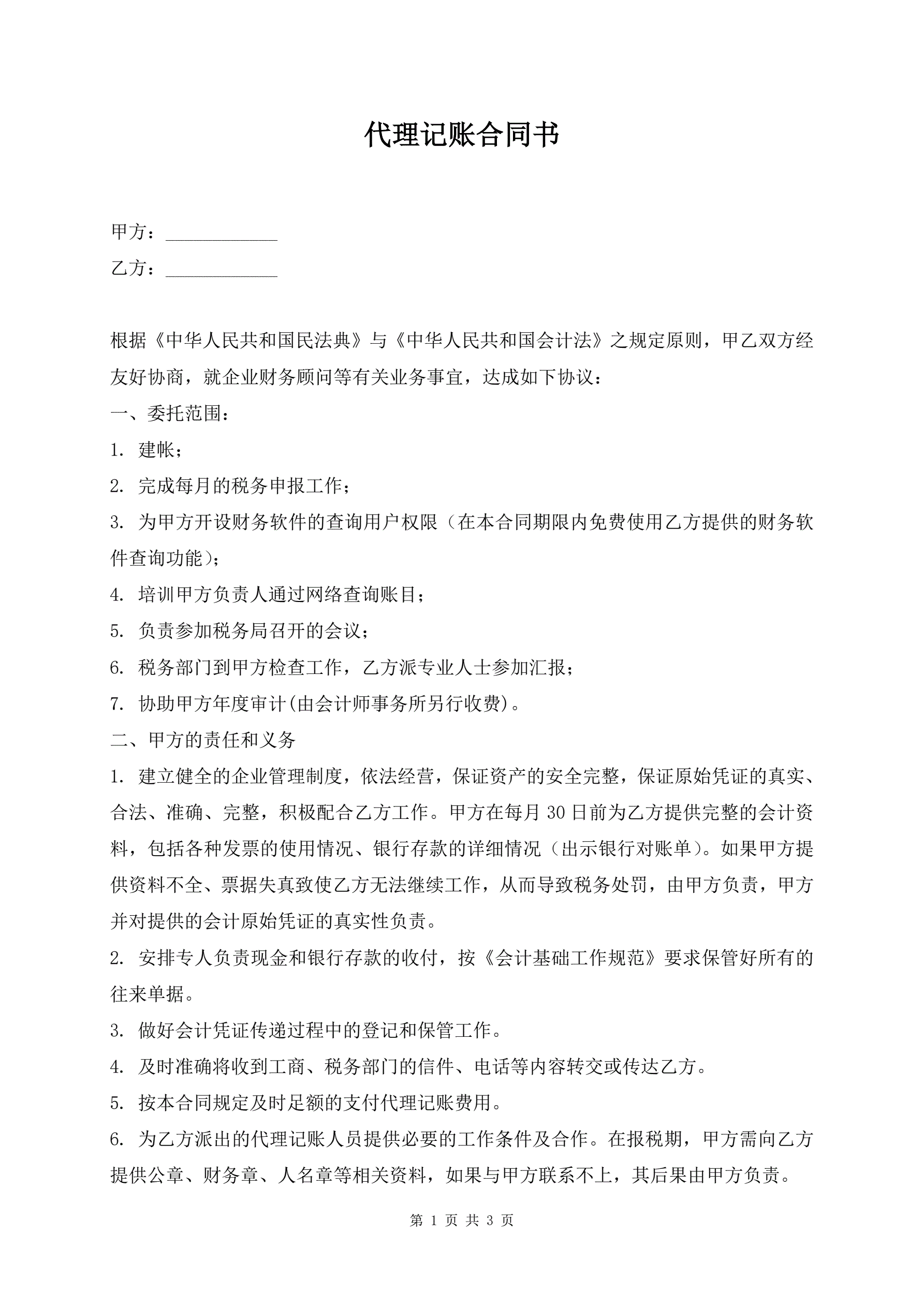 代理记账合同书