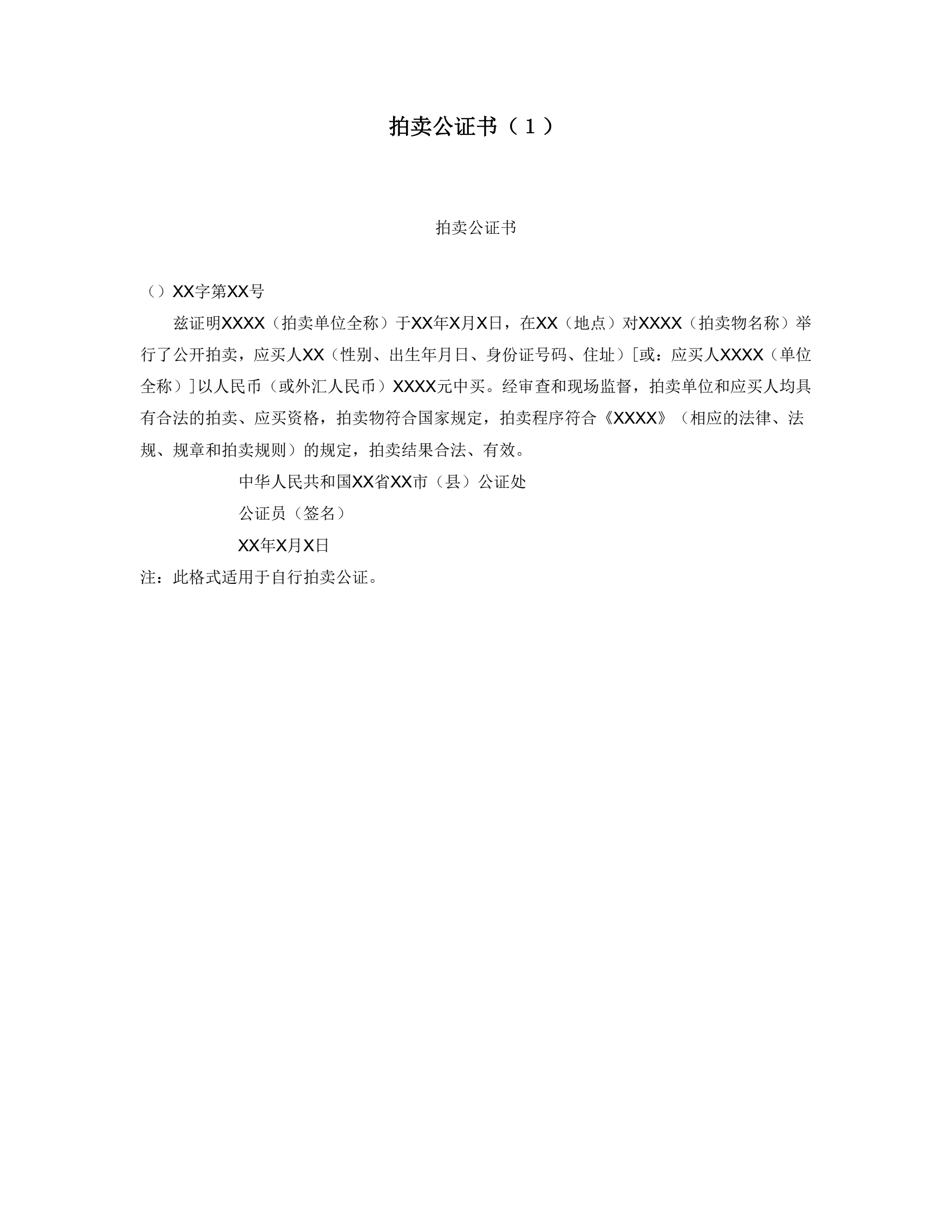 拍卖公证书(1)