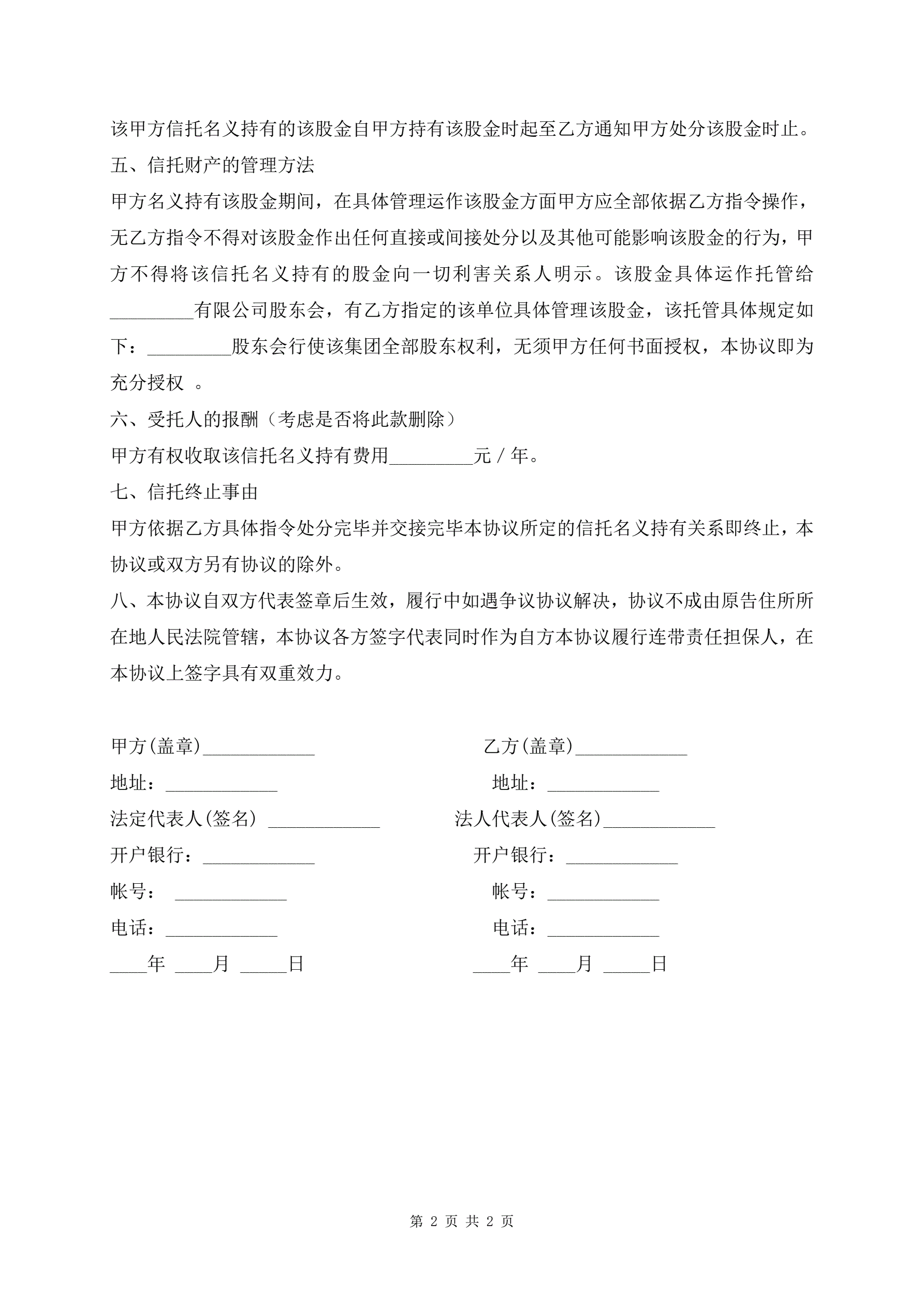 代理持股协议模板