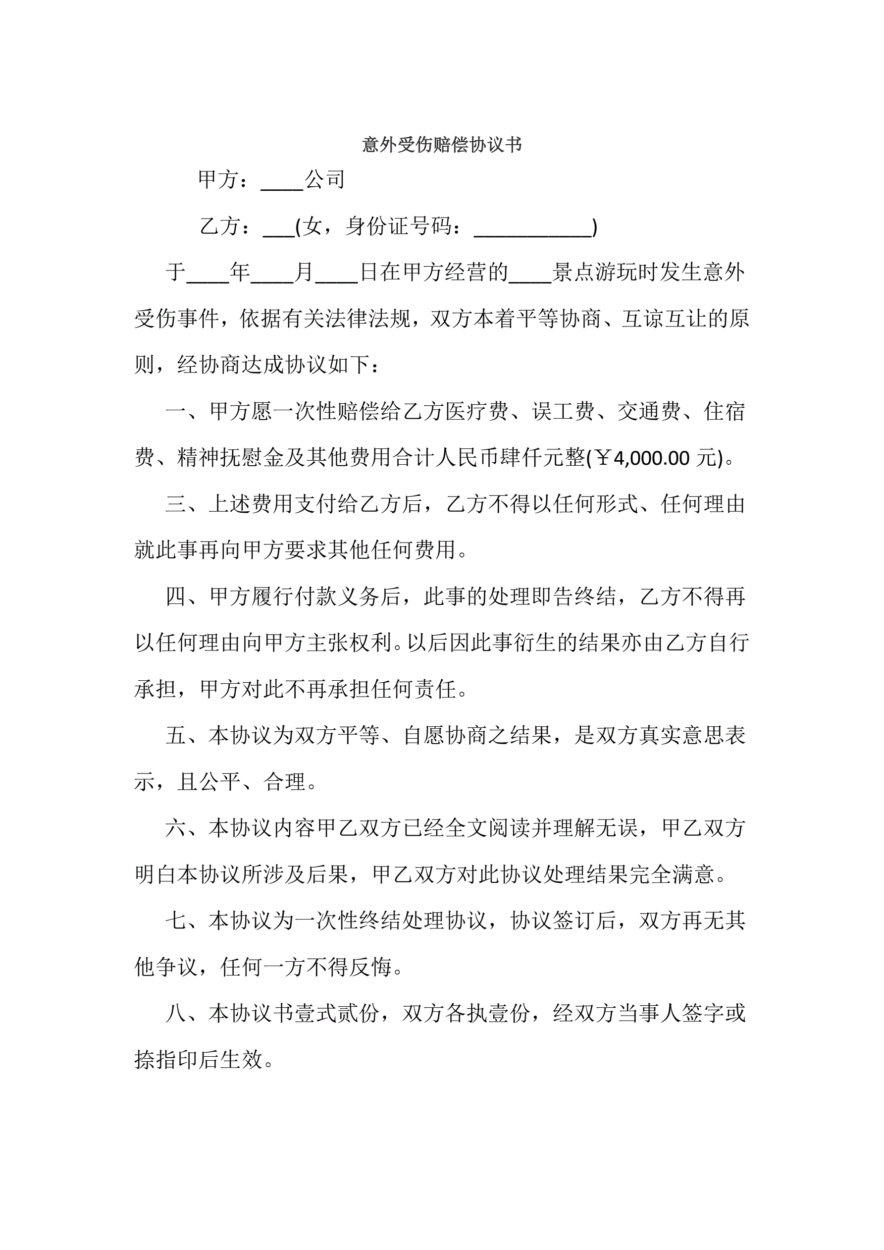 意外受伤赔偿协议书