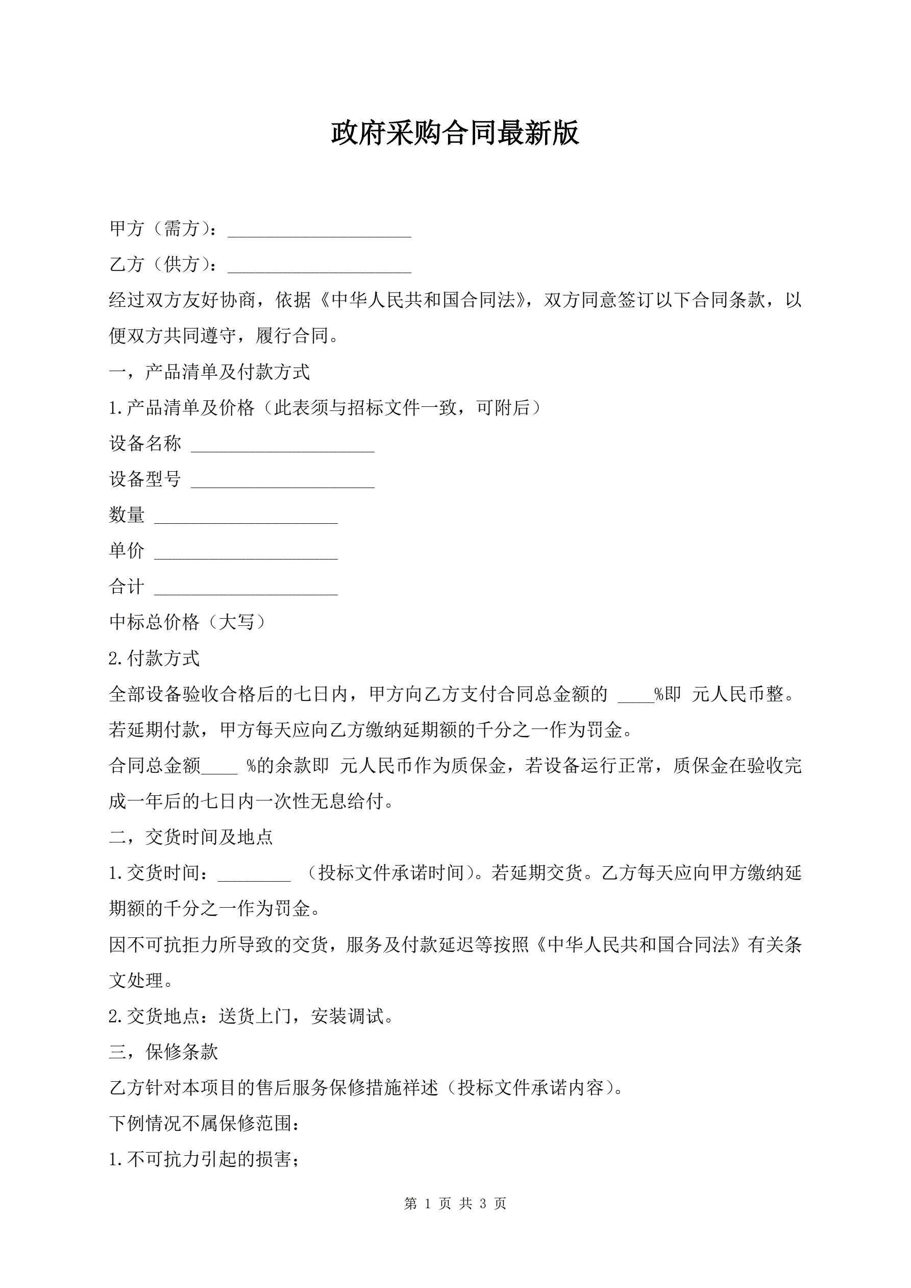 >政府采购合同最新版