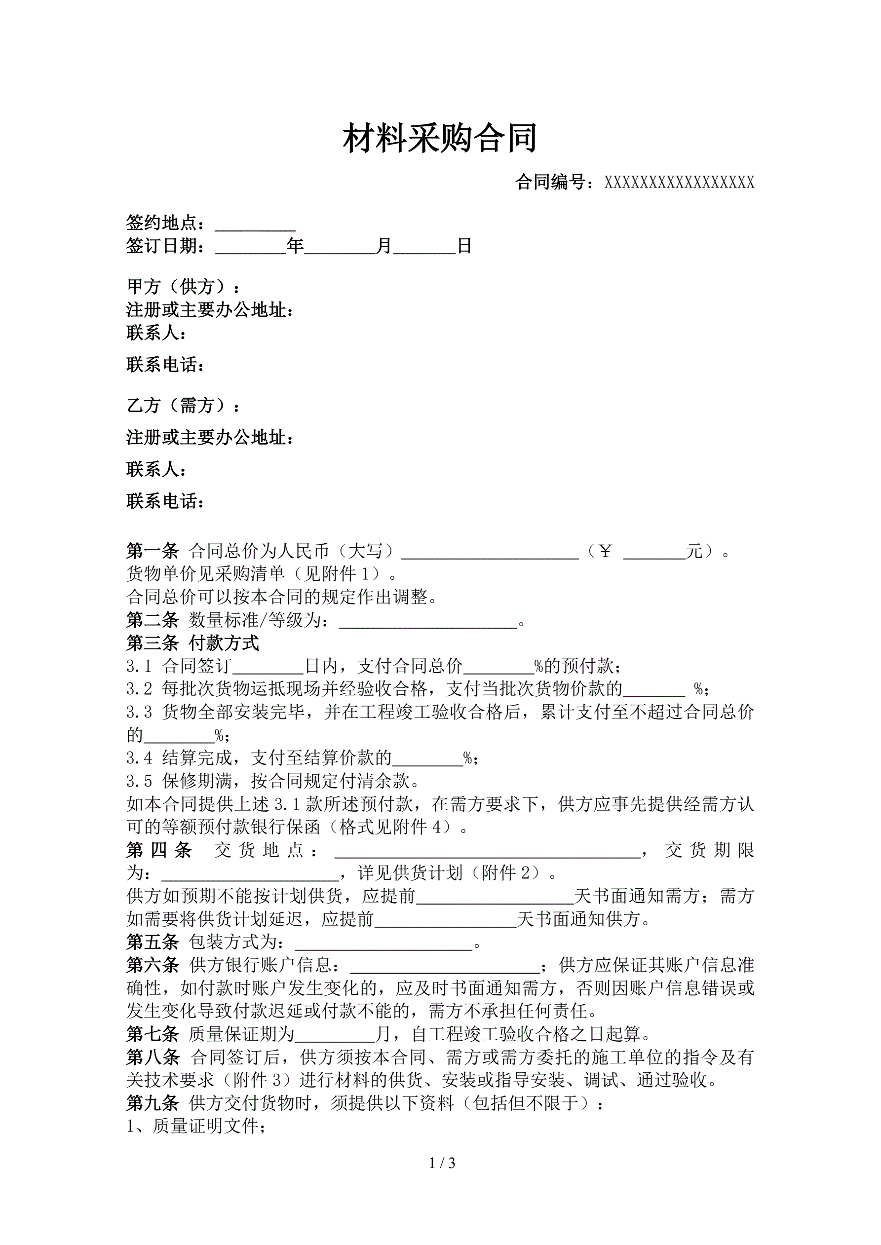 材料采购合同