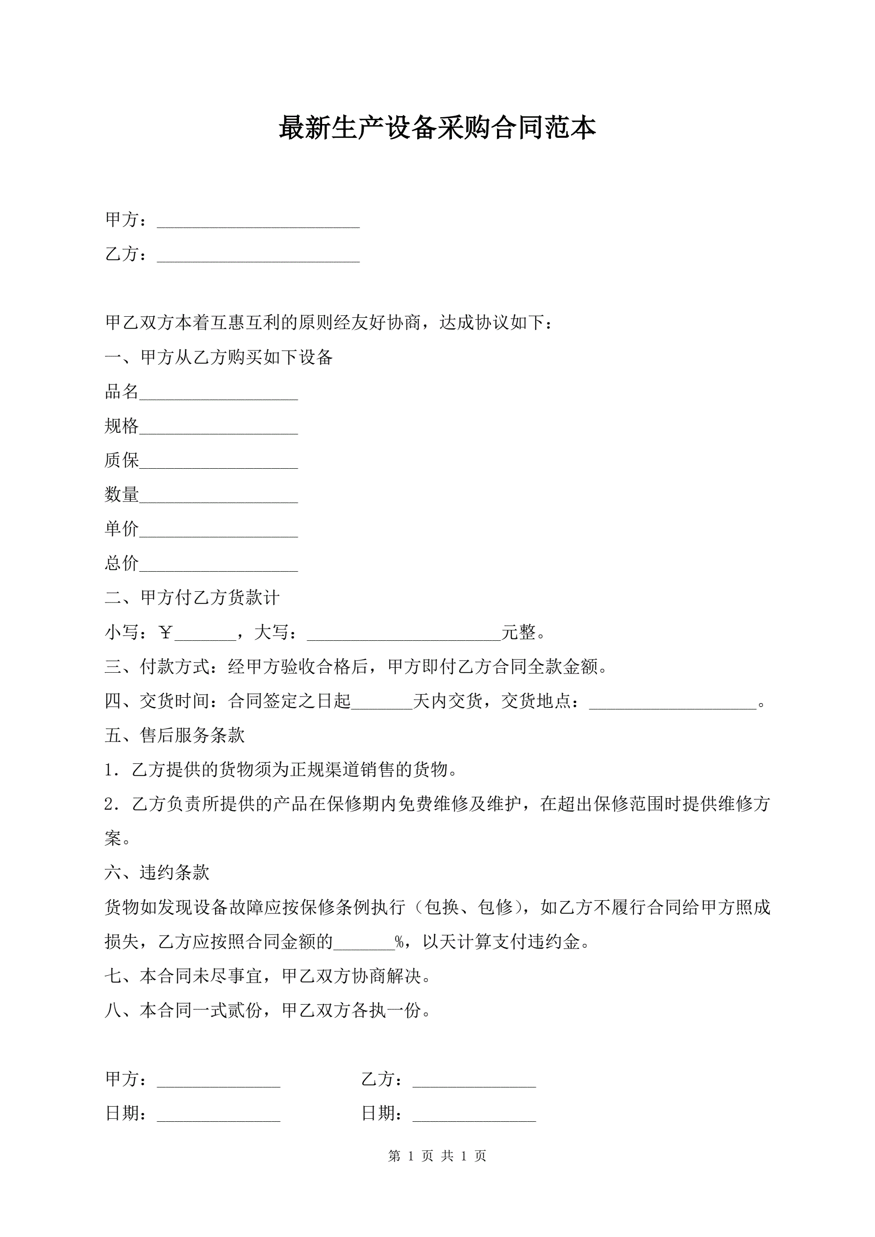 最新生产设备采购合同范本