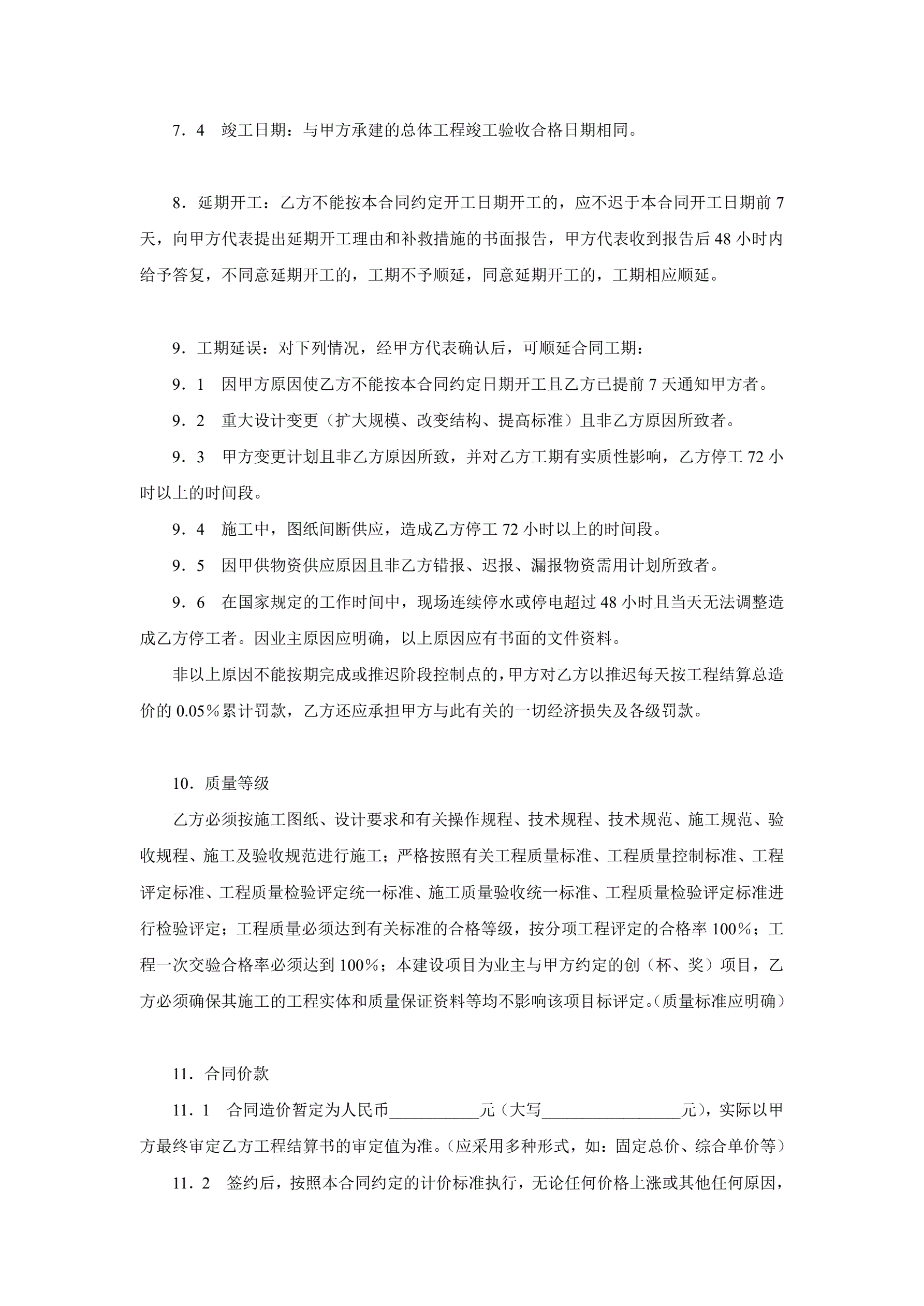 建筑安装工程施工合同