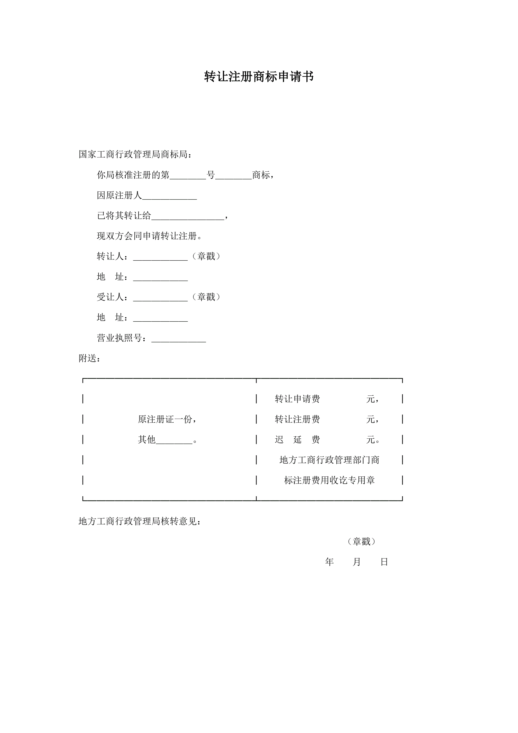 转让注册商标申请书