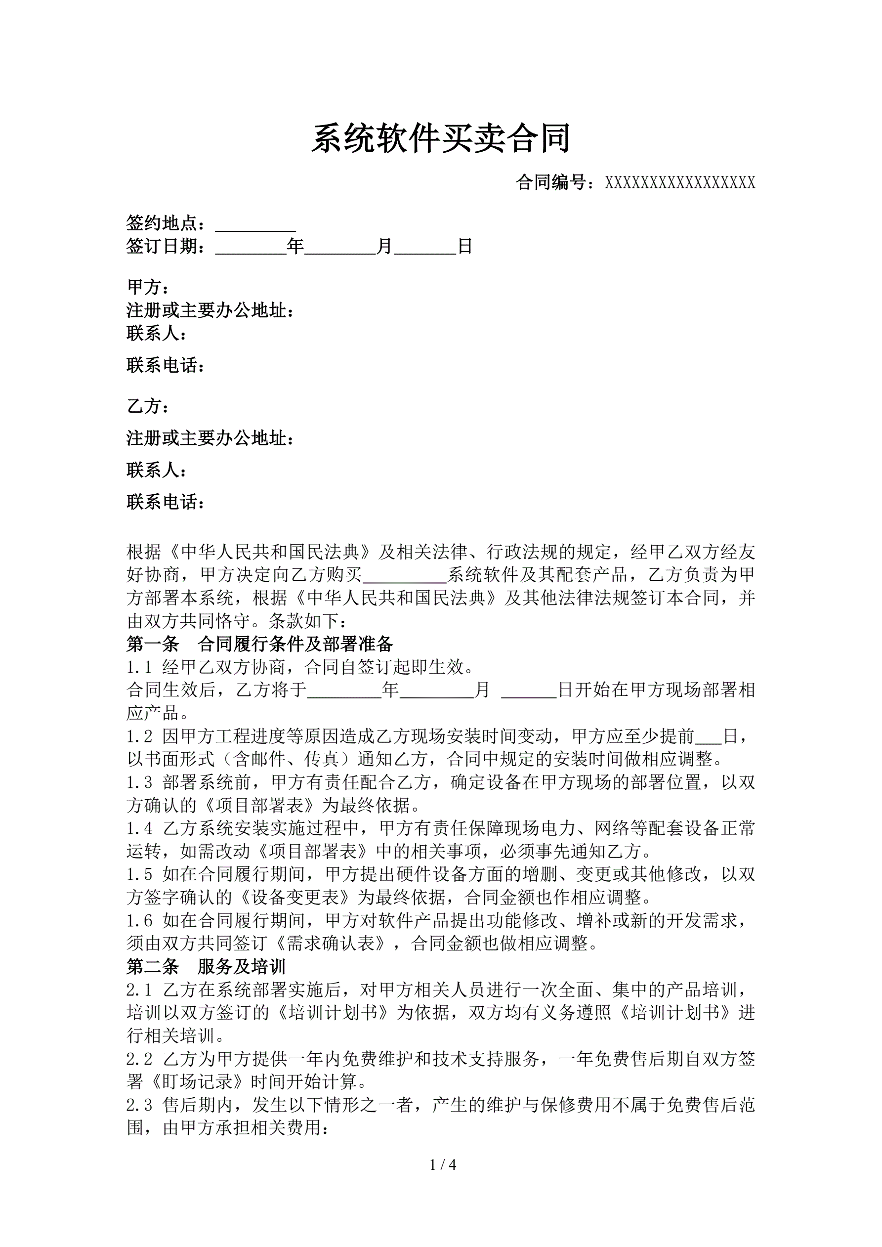 >系统软件买卖合同