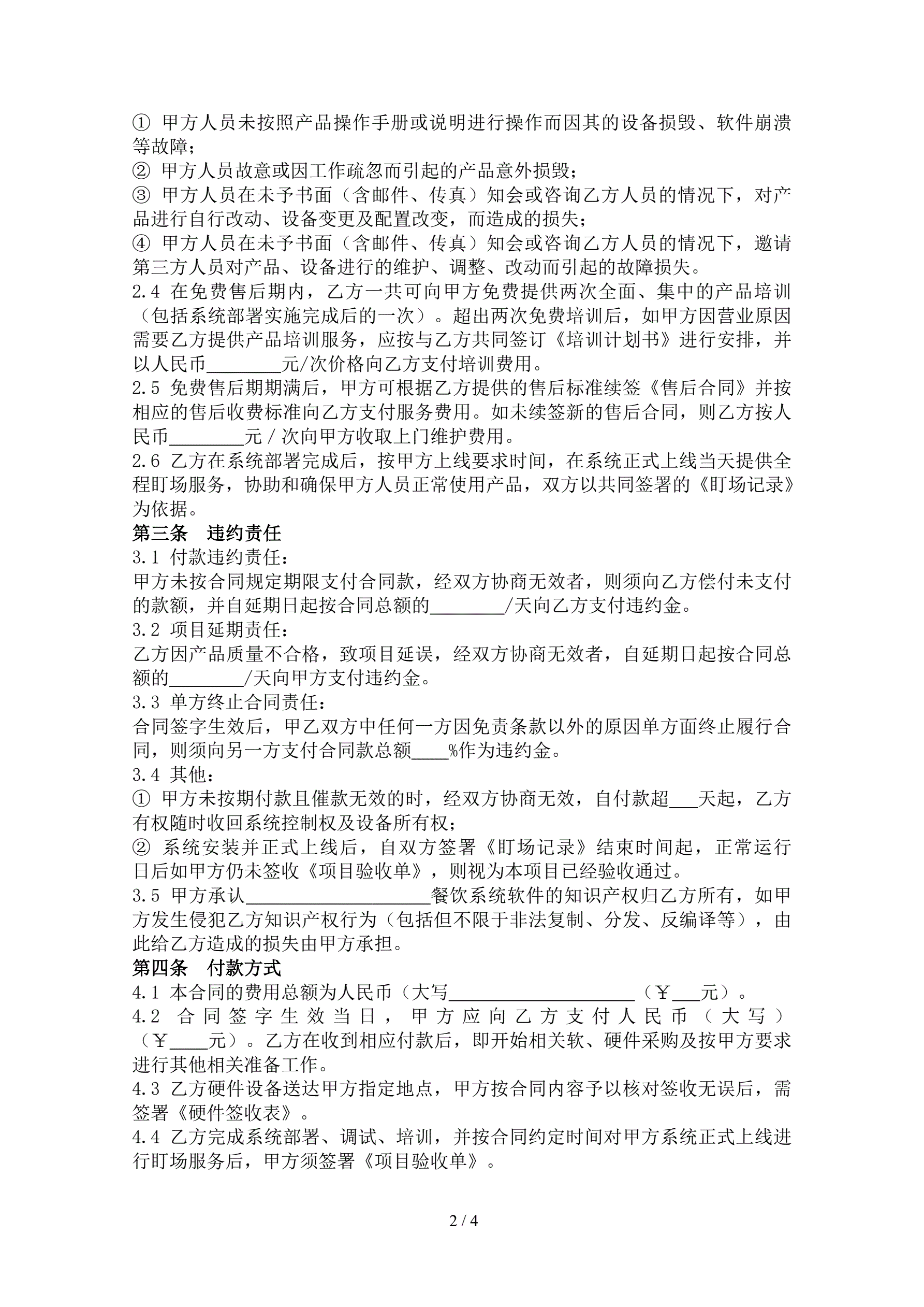 系统软件买卖合同