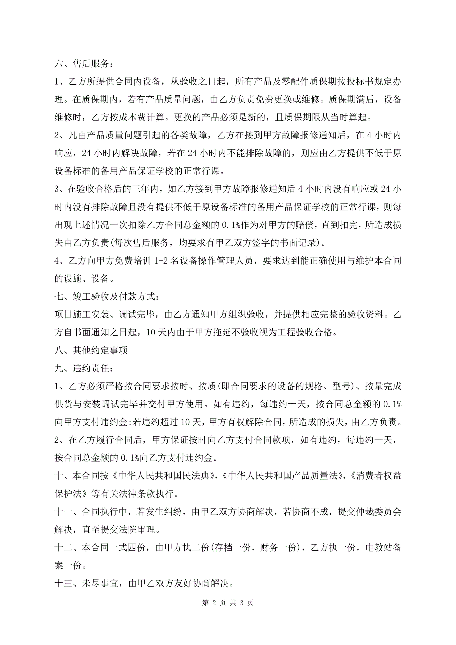 仪器仪表采购合同范文标准版