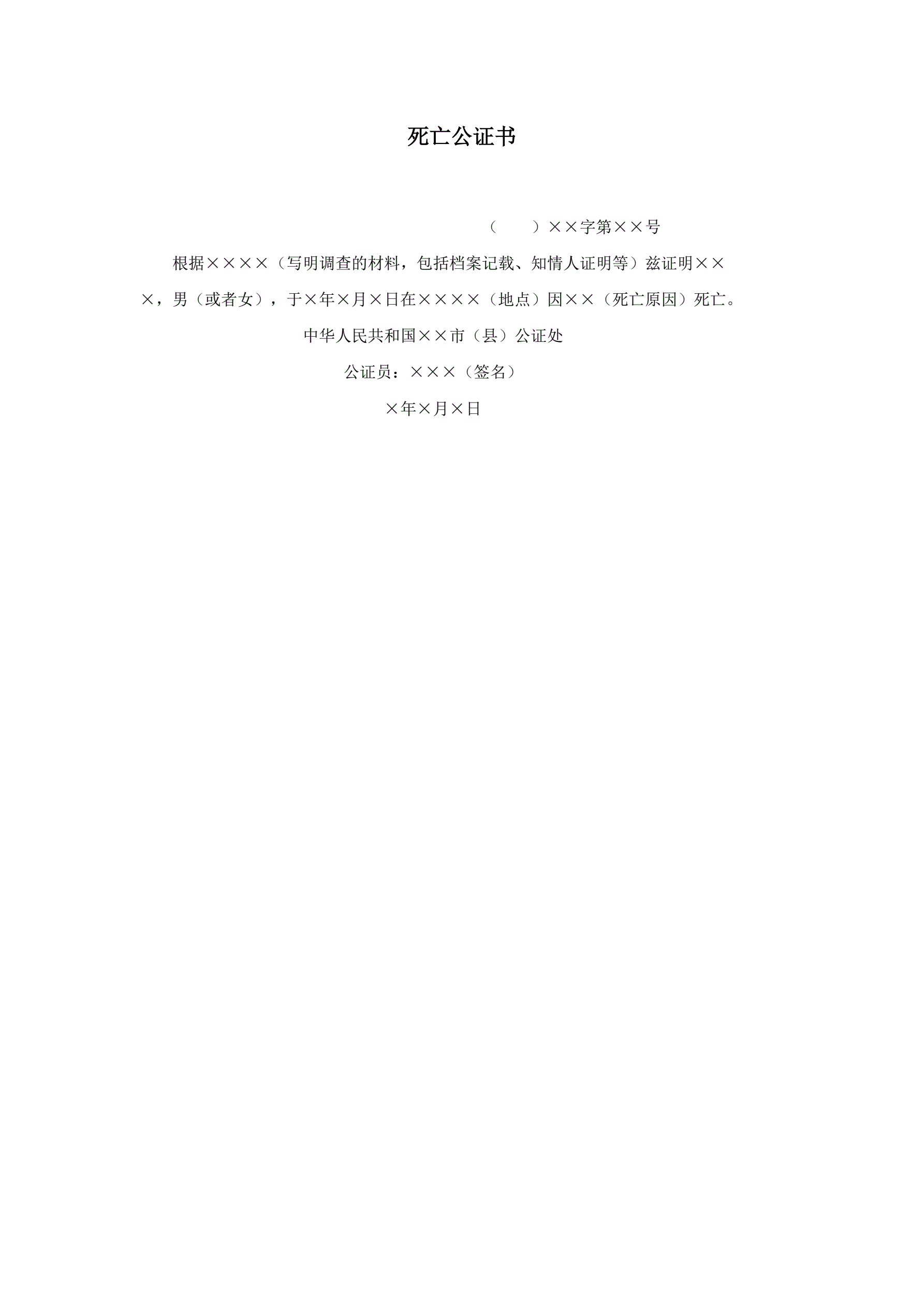合同名称:死亡公证书