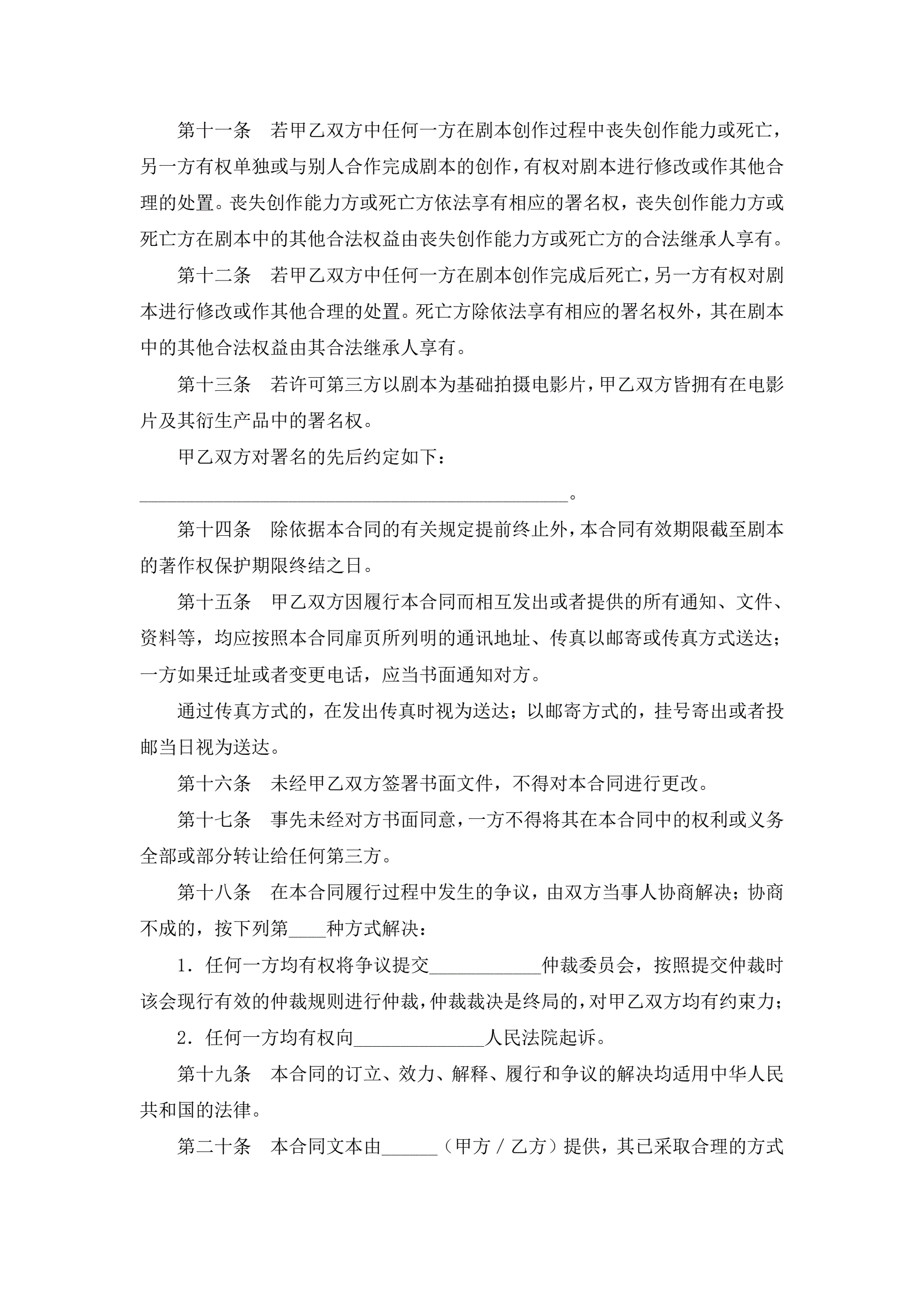 文学剧本创作合作合同
