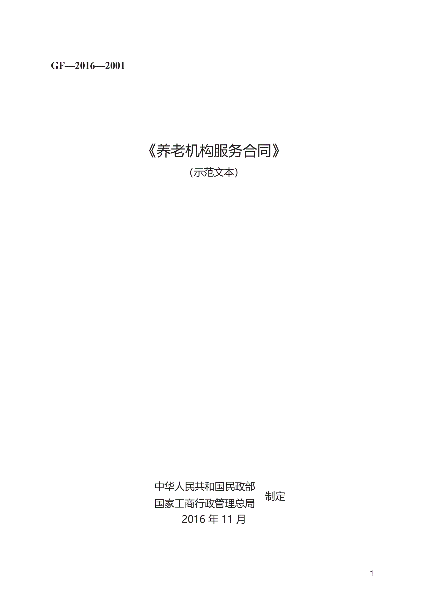 >《养老机构服务合同》 GF—2016—2001