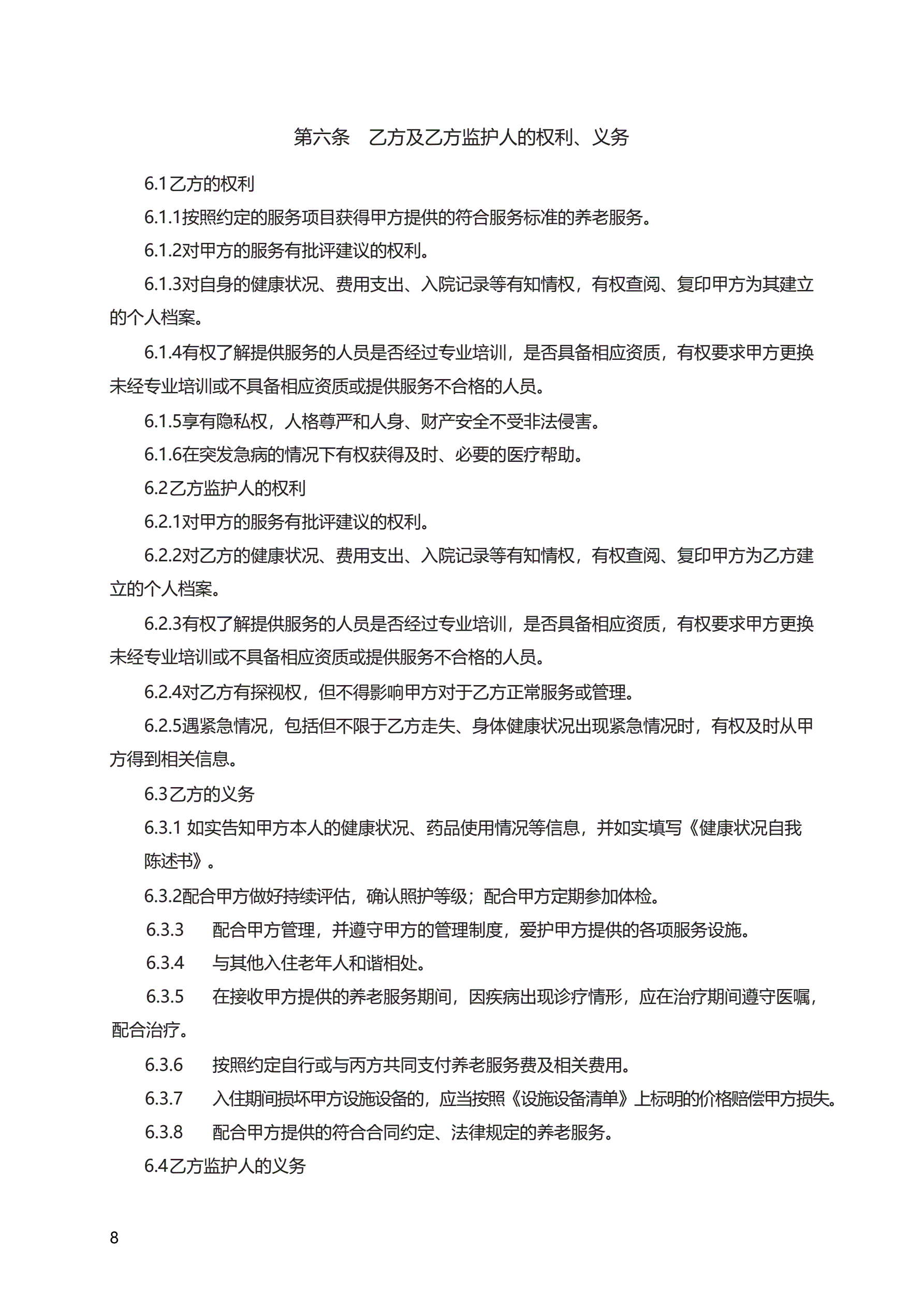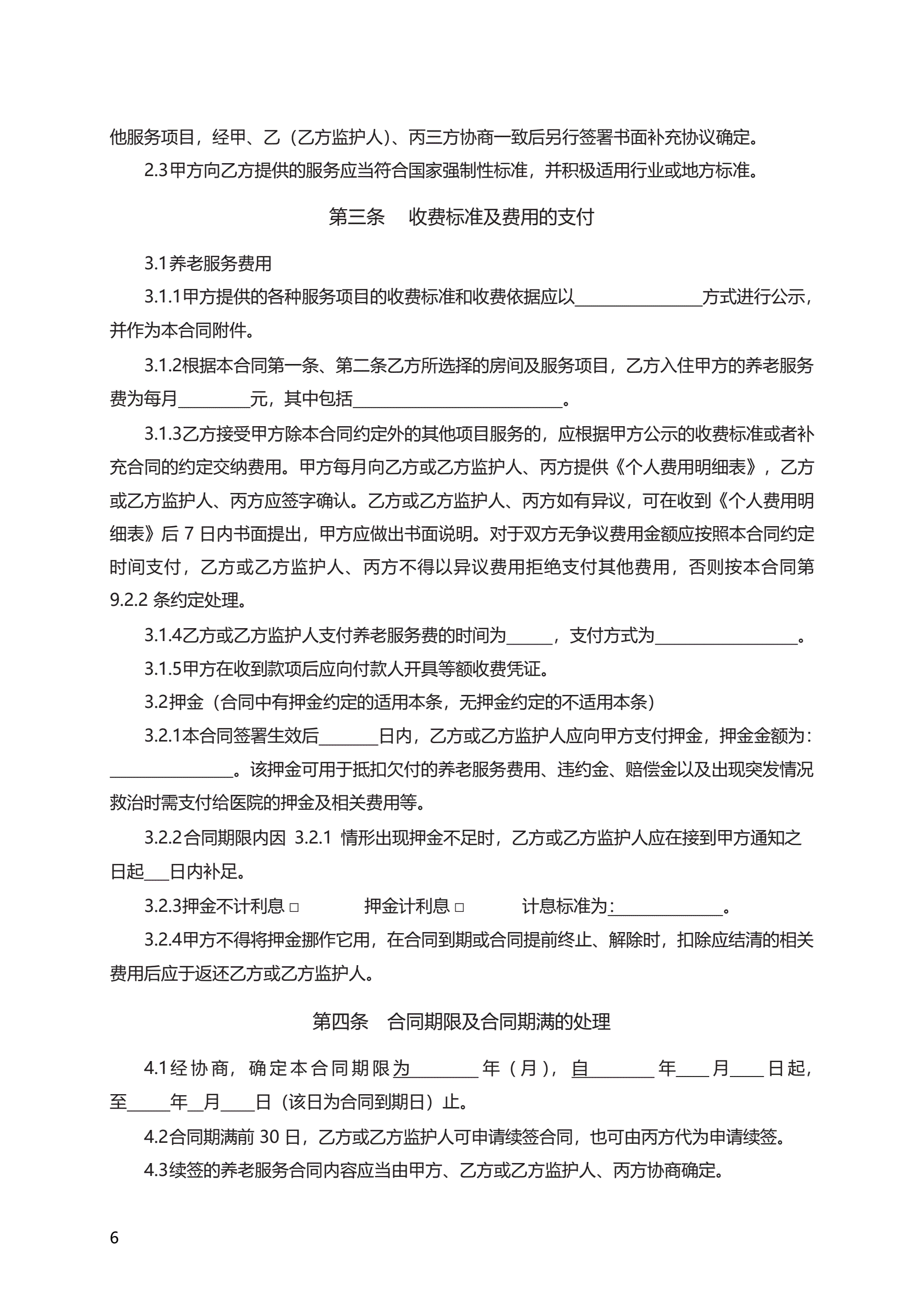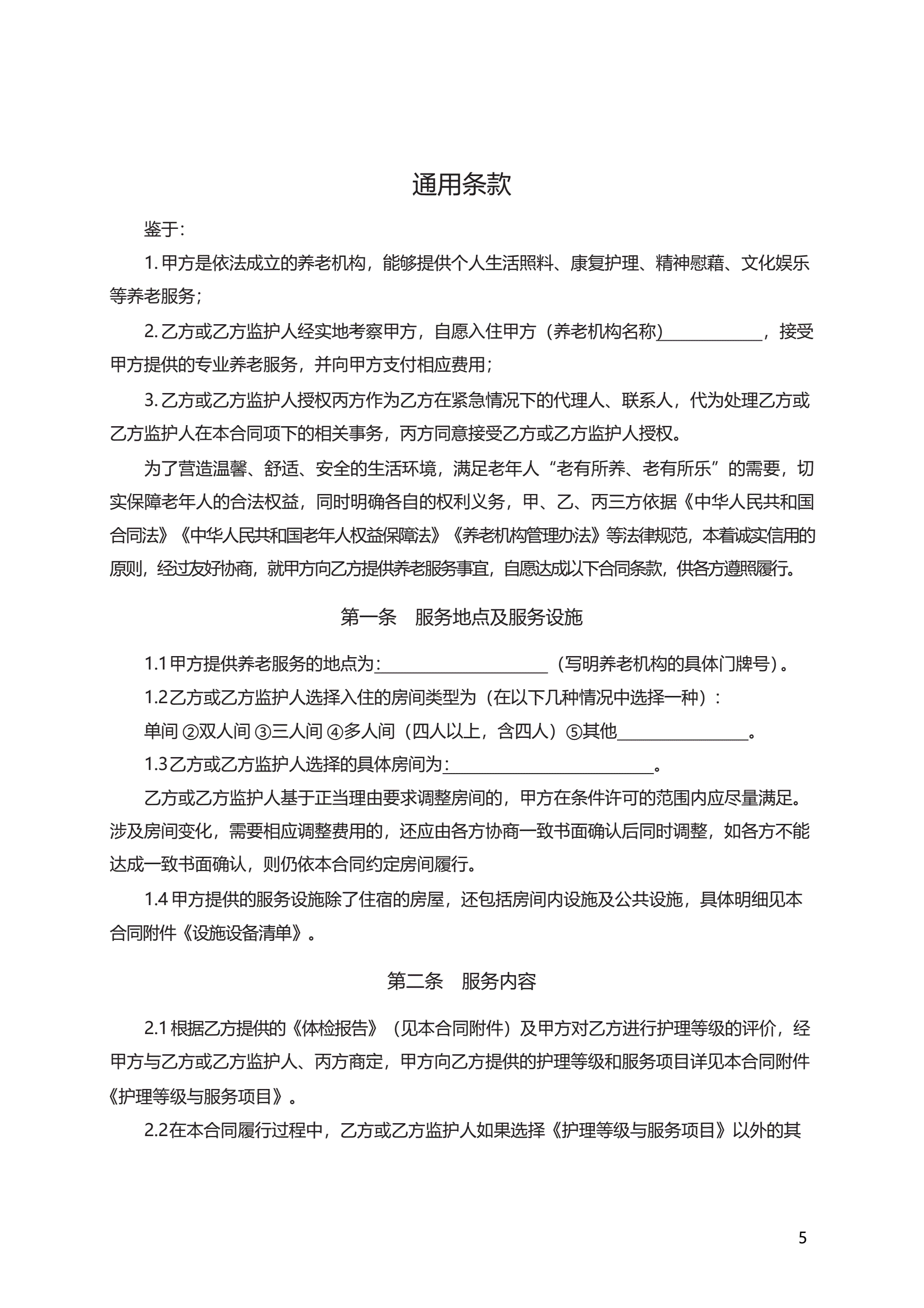 《养老机构服务合同》 GF—2016—2001