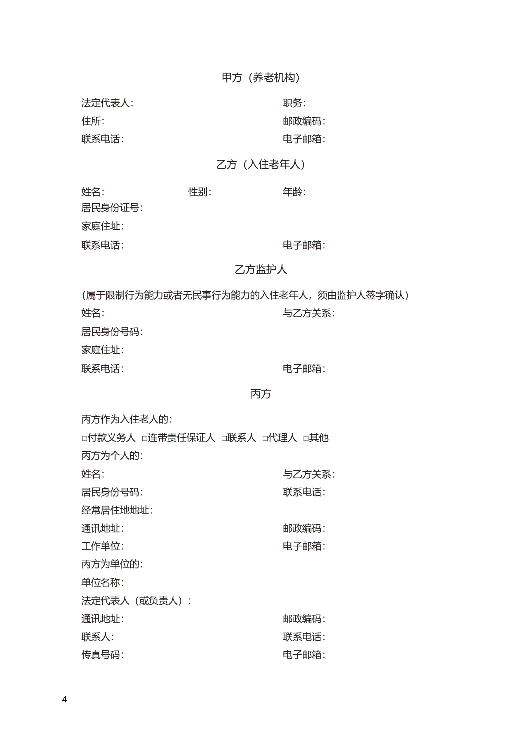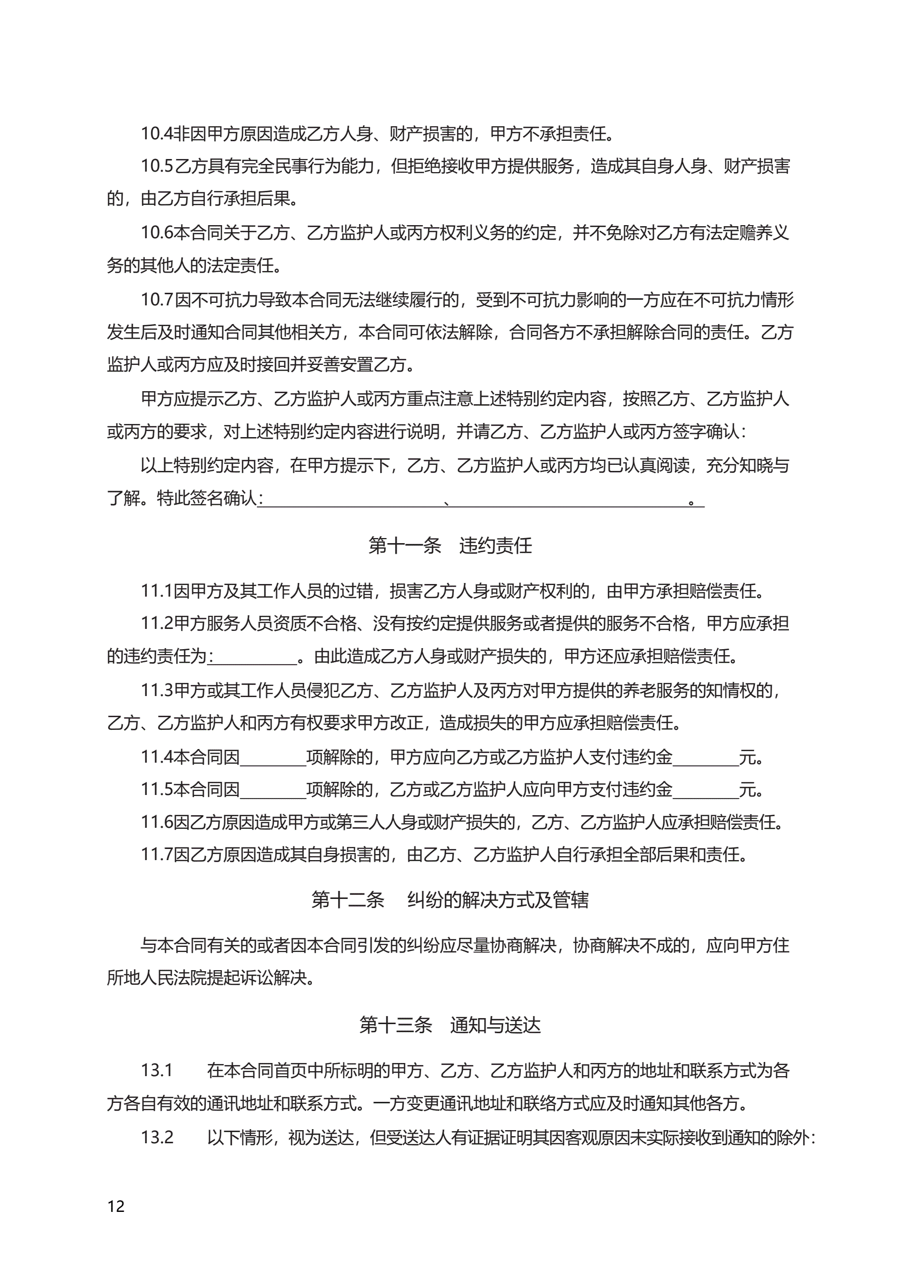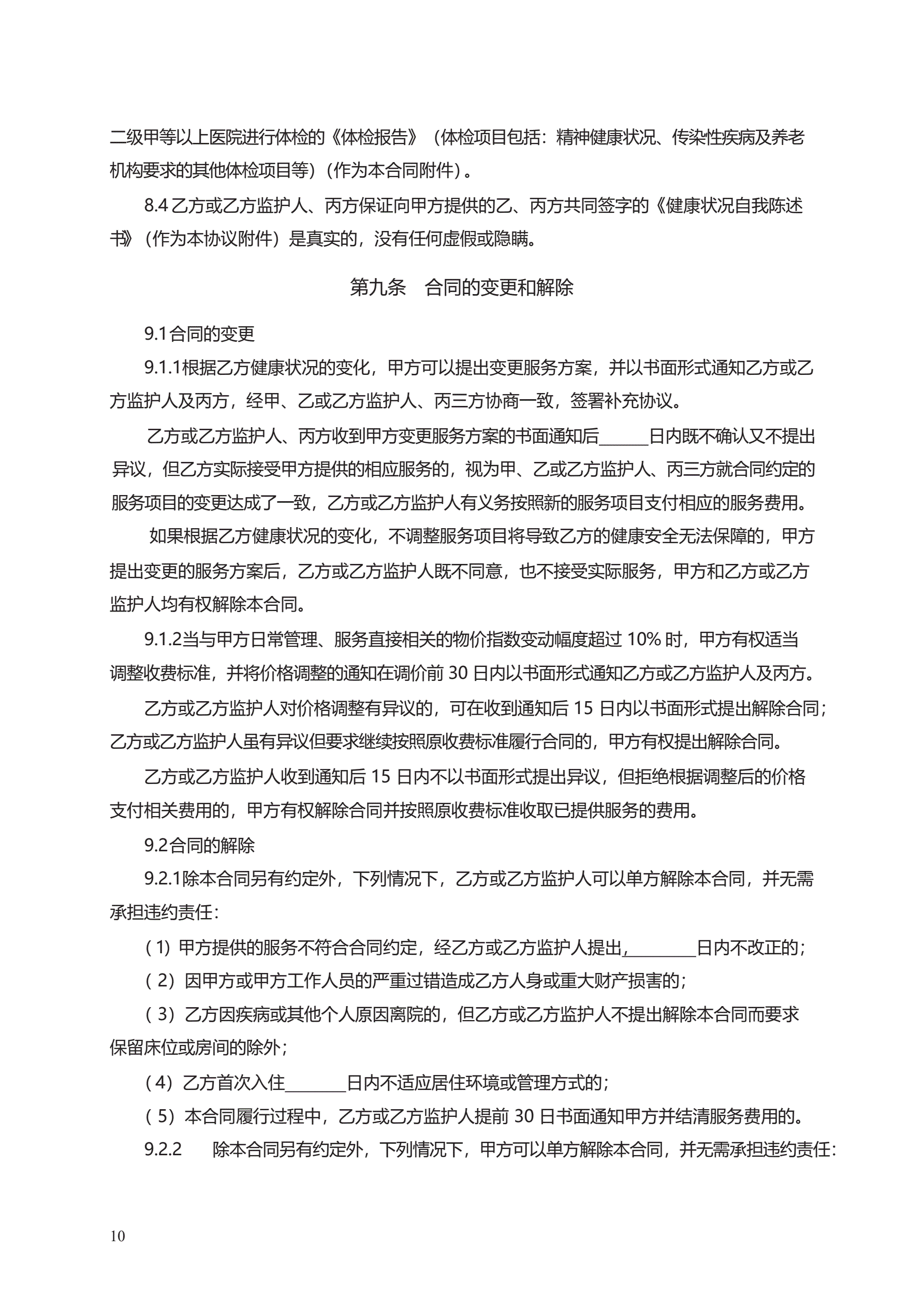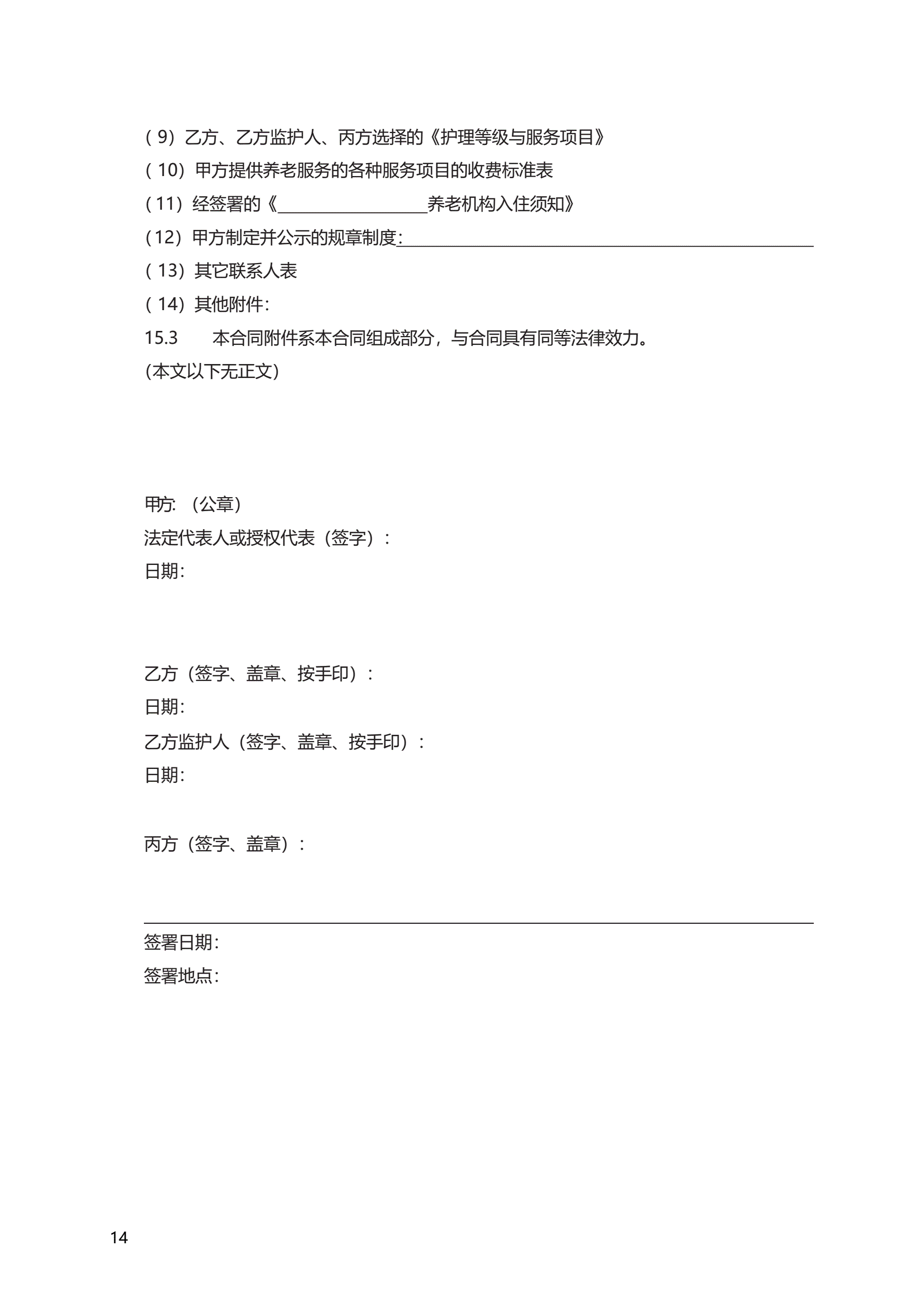 《养老机构服务合同》 GF—2016—2001
