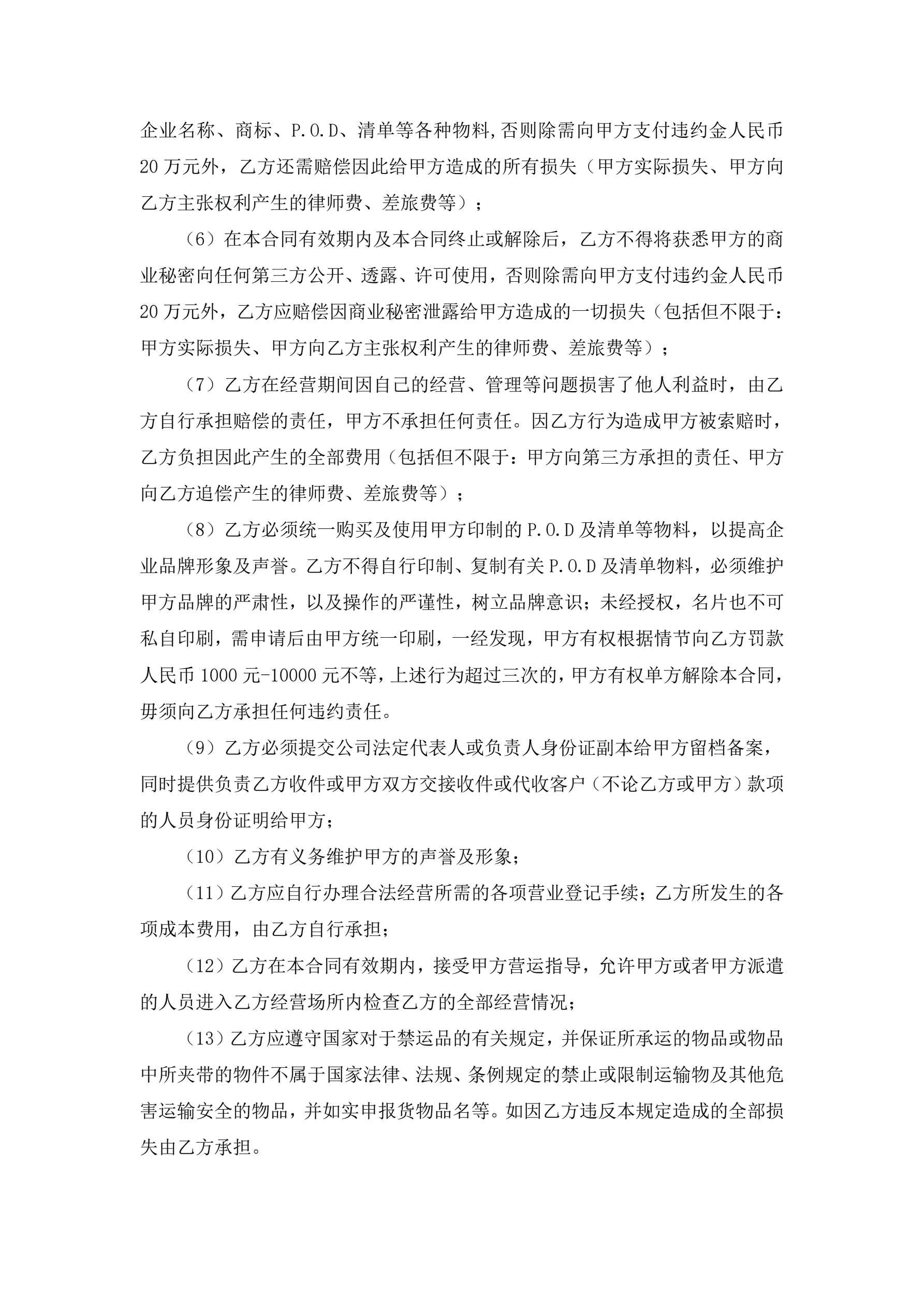 >物流有限公司加盟合同书