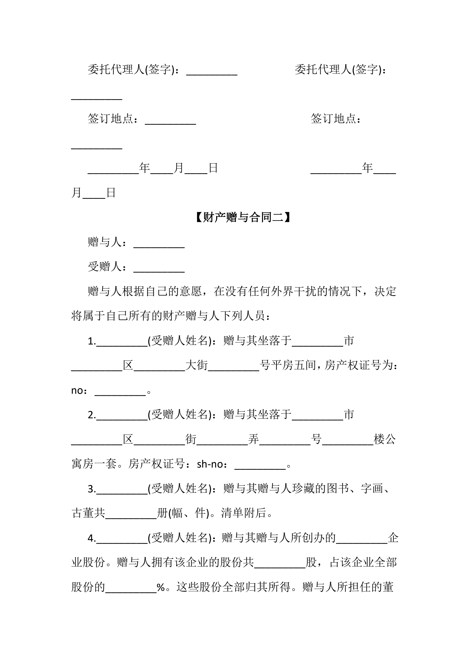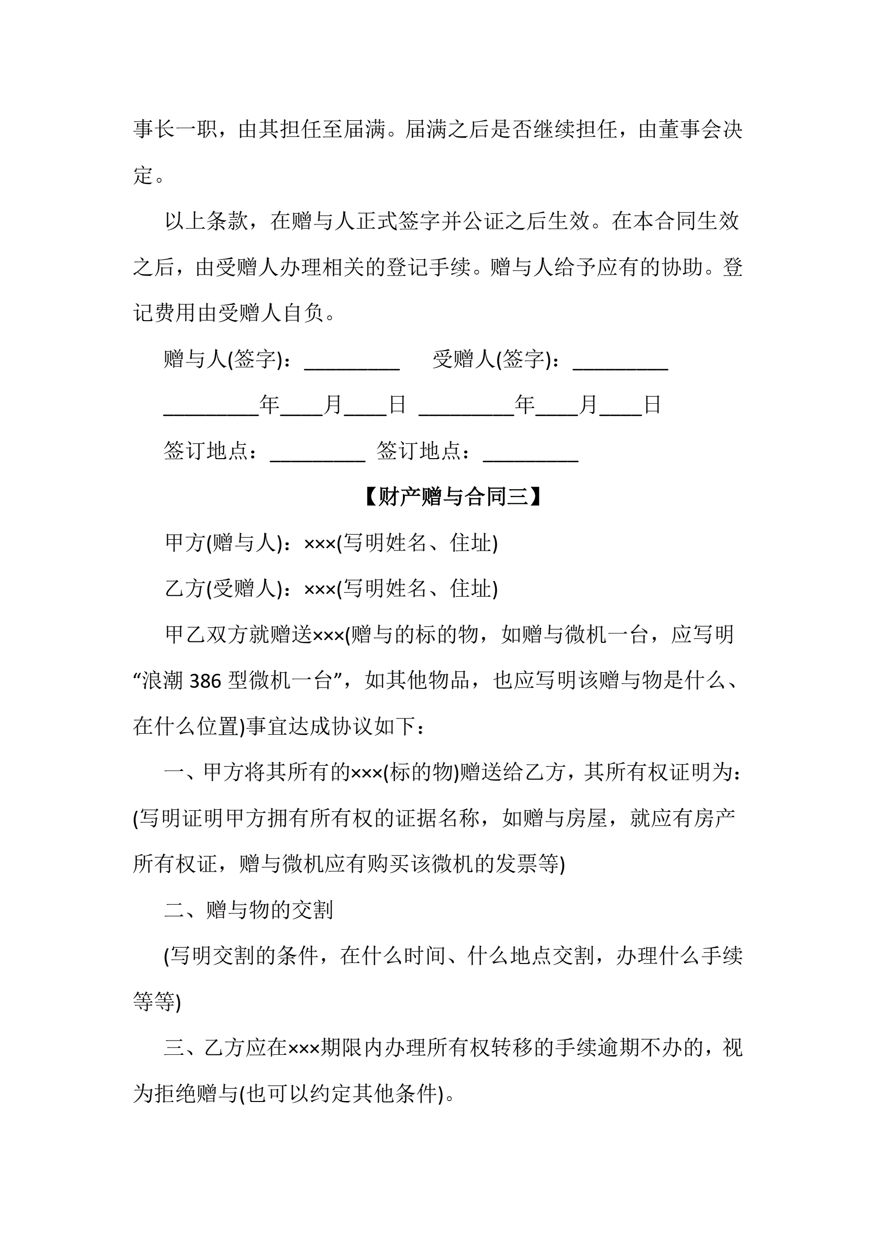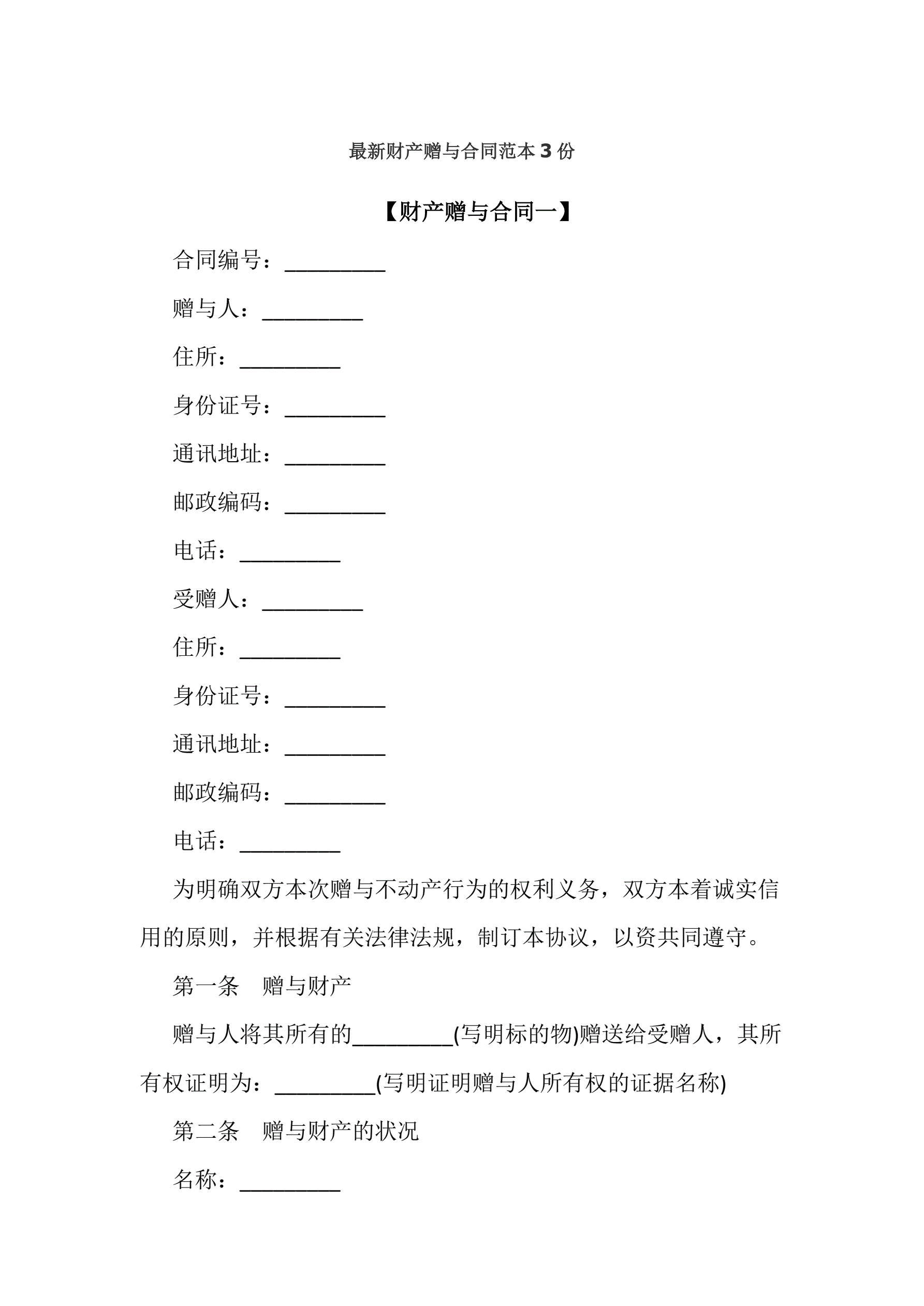 >最新财产赠与合同范本3份