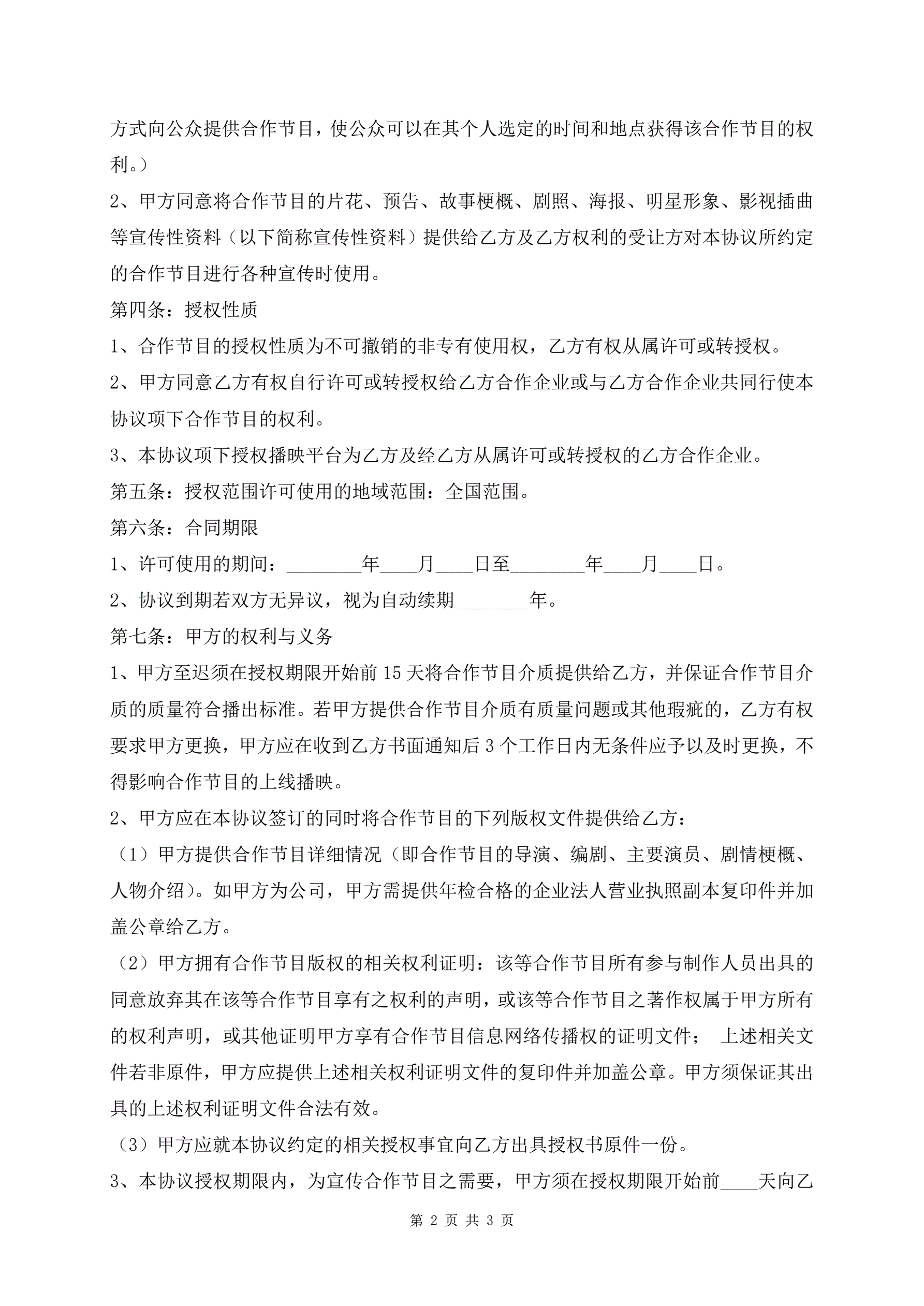 最新文化影视作品著作权许可使用协议书样本