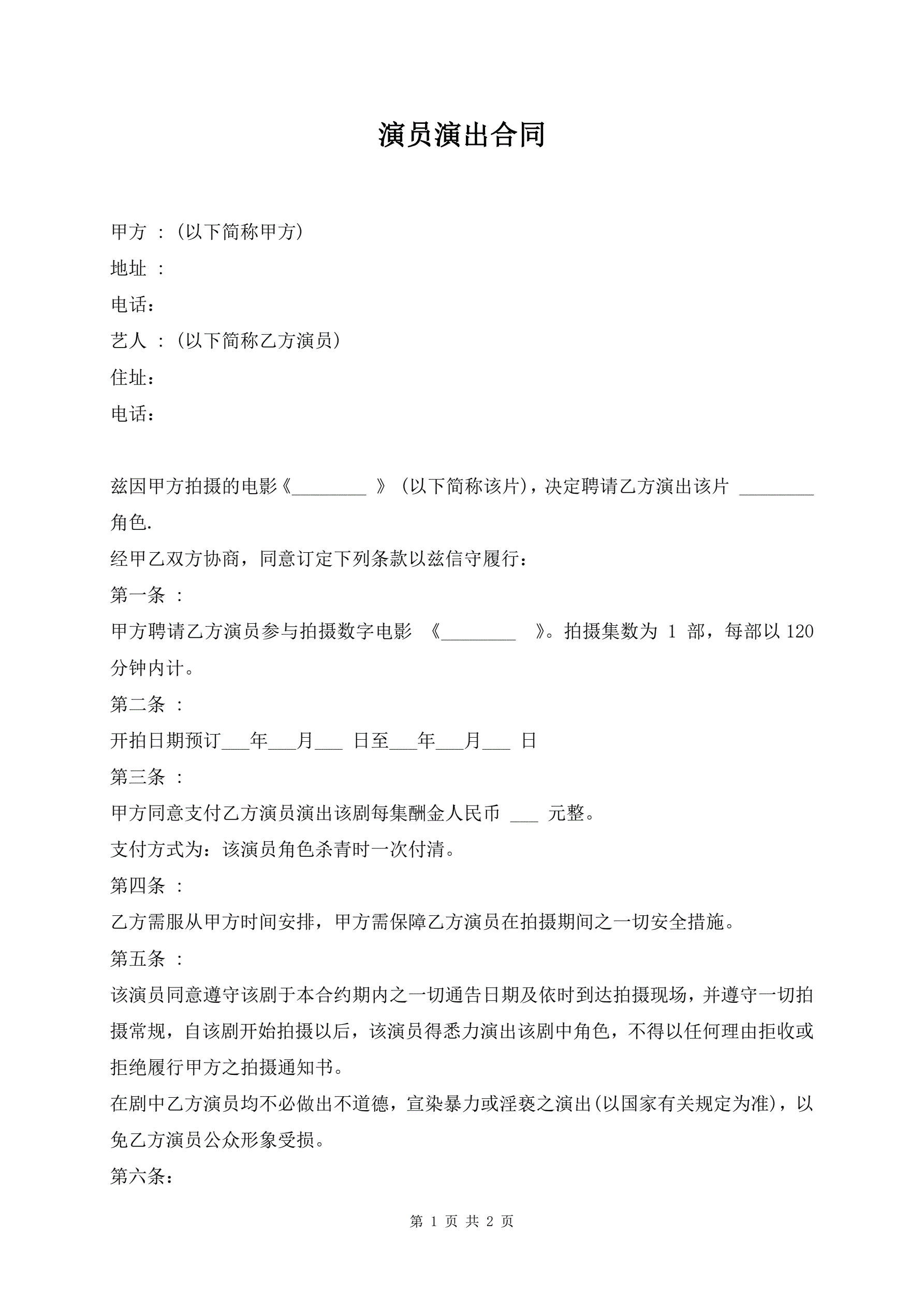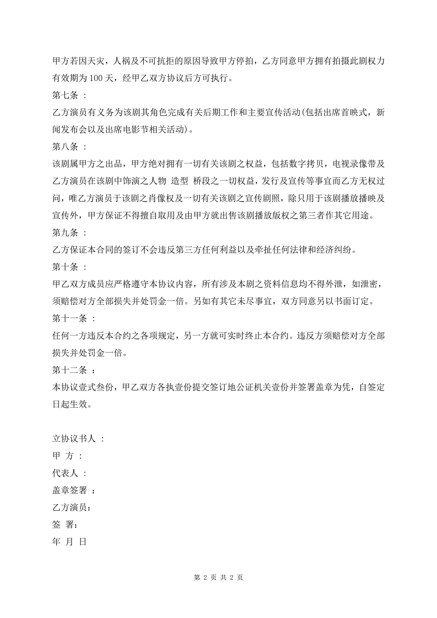 演员演出合同