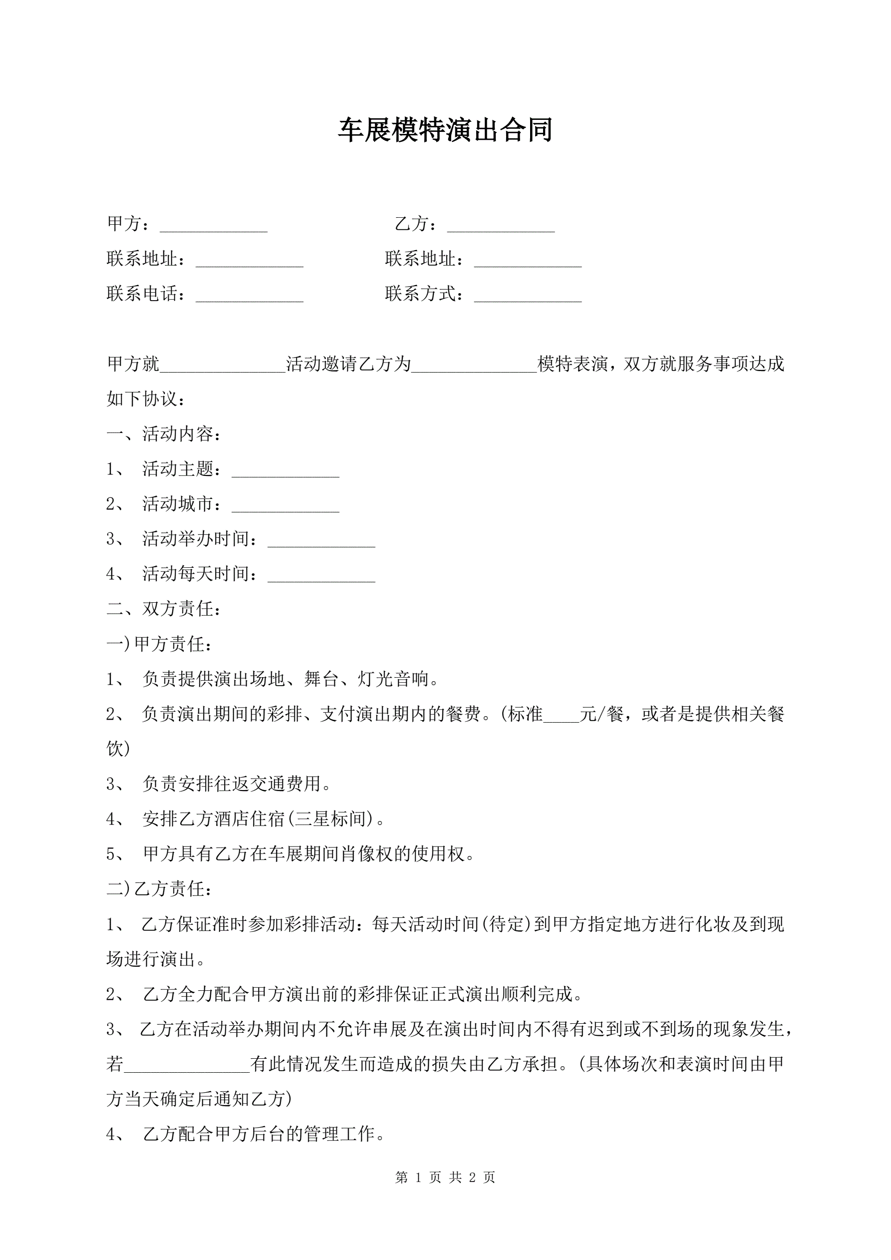 >车展模特演出合同