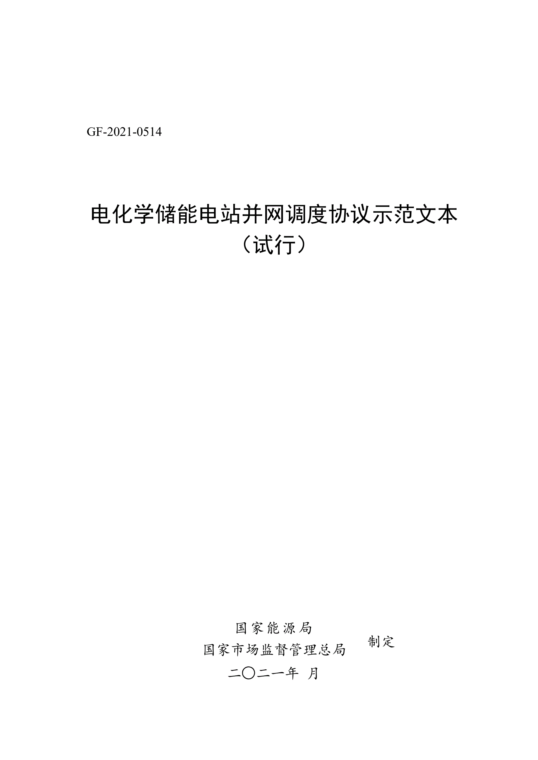 电化学储能电站并网调度协议示范文本(试行)GF-2021-0514