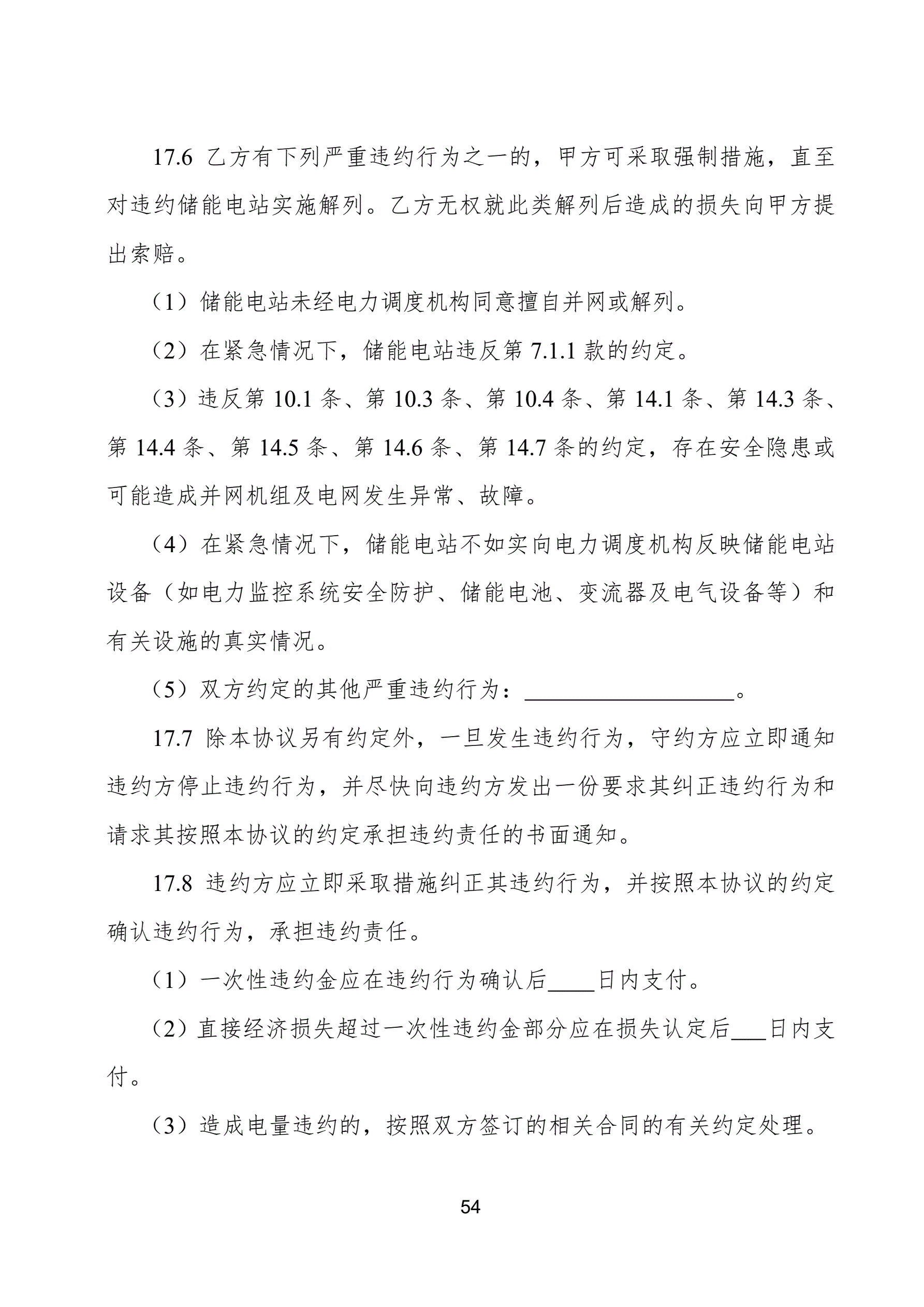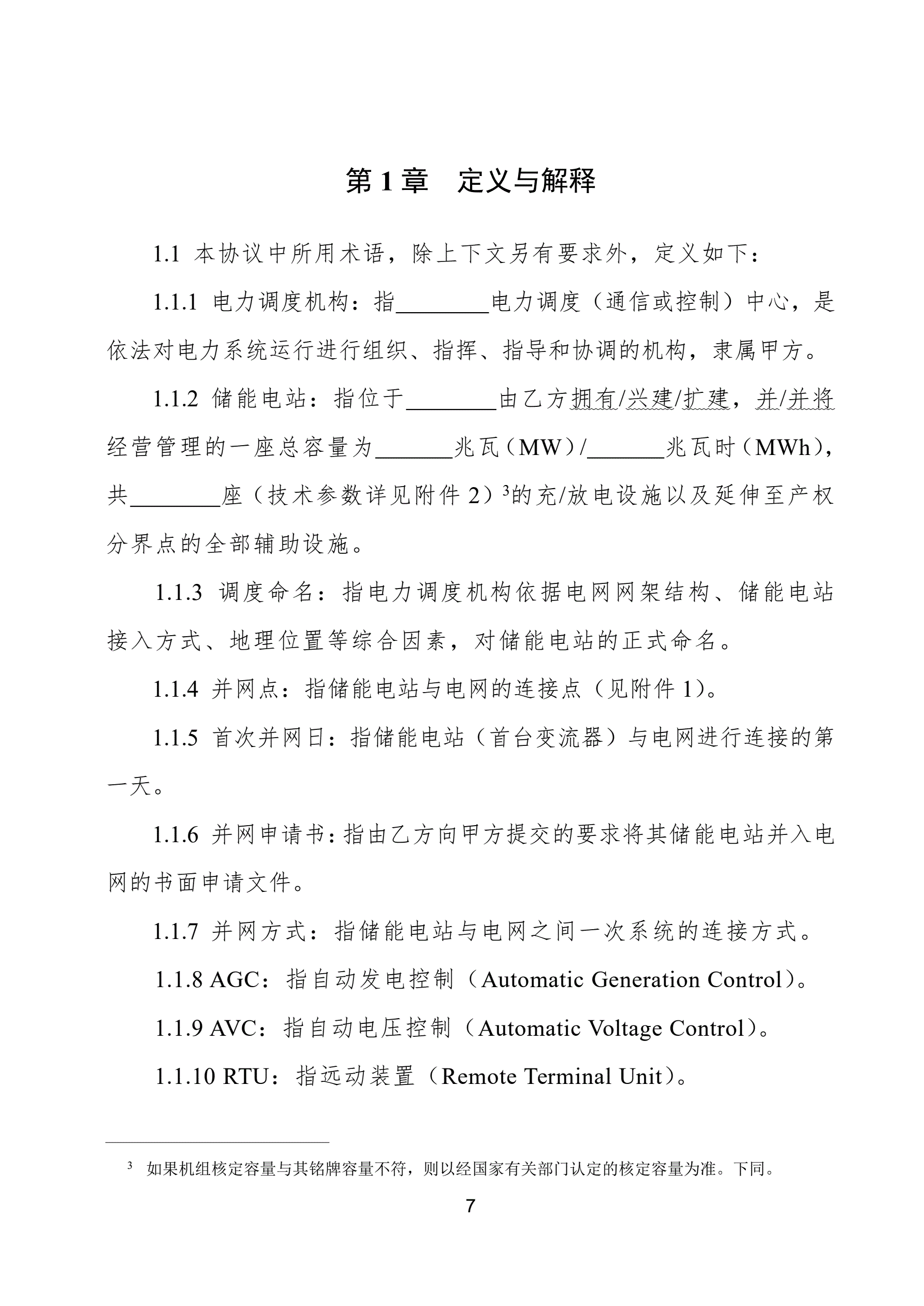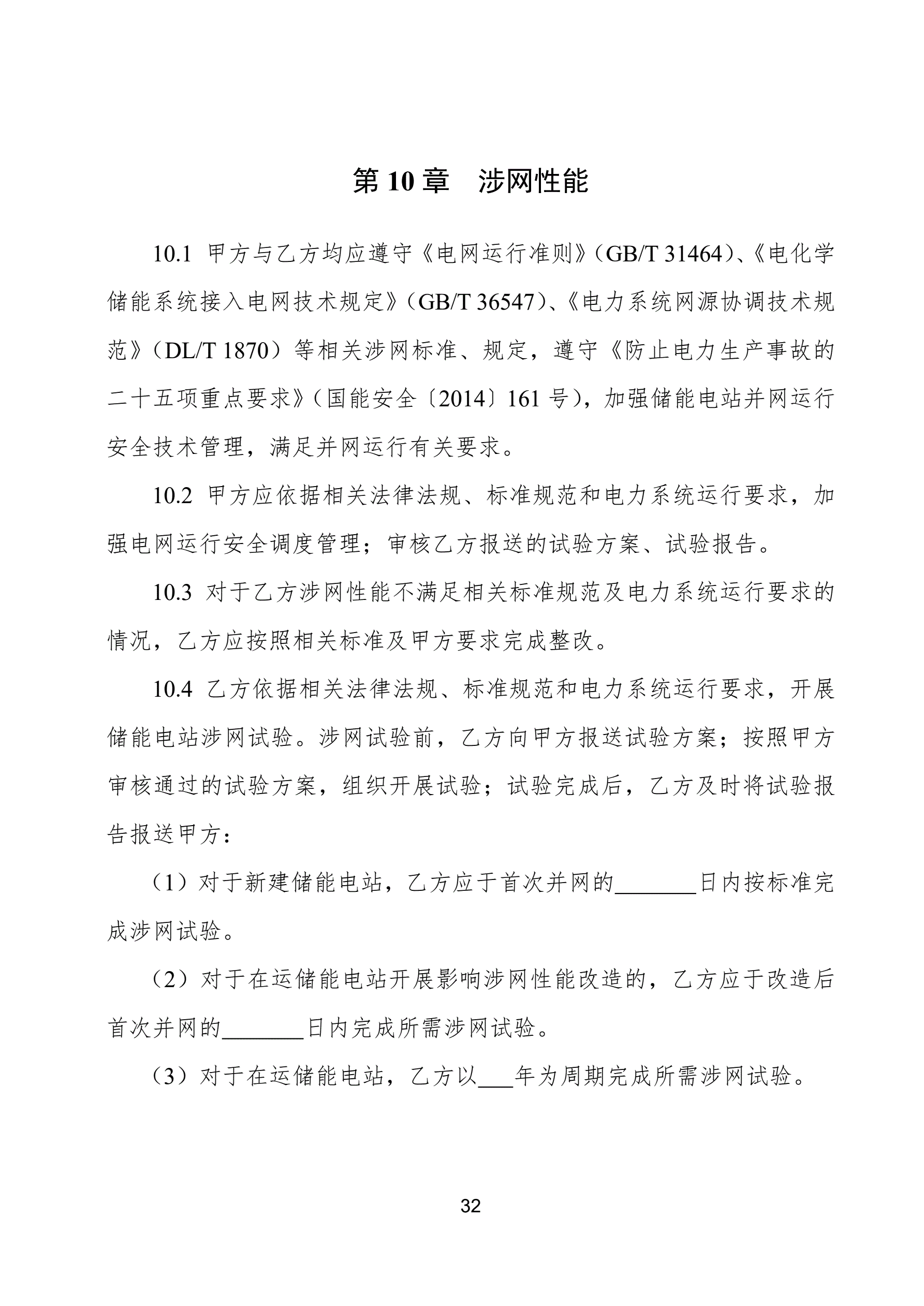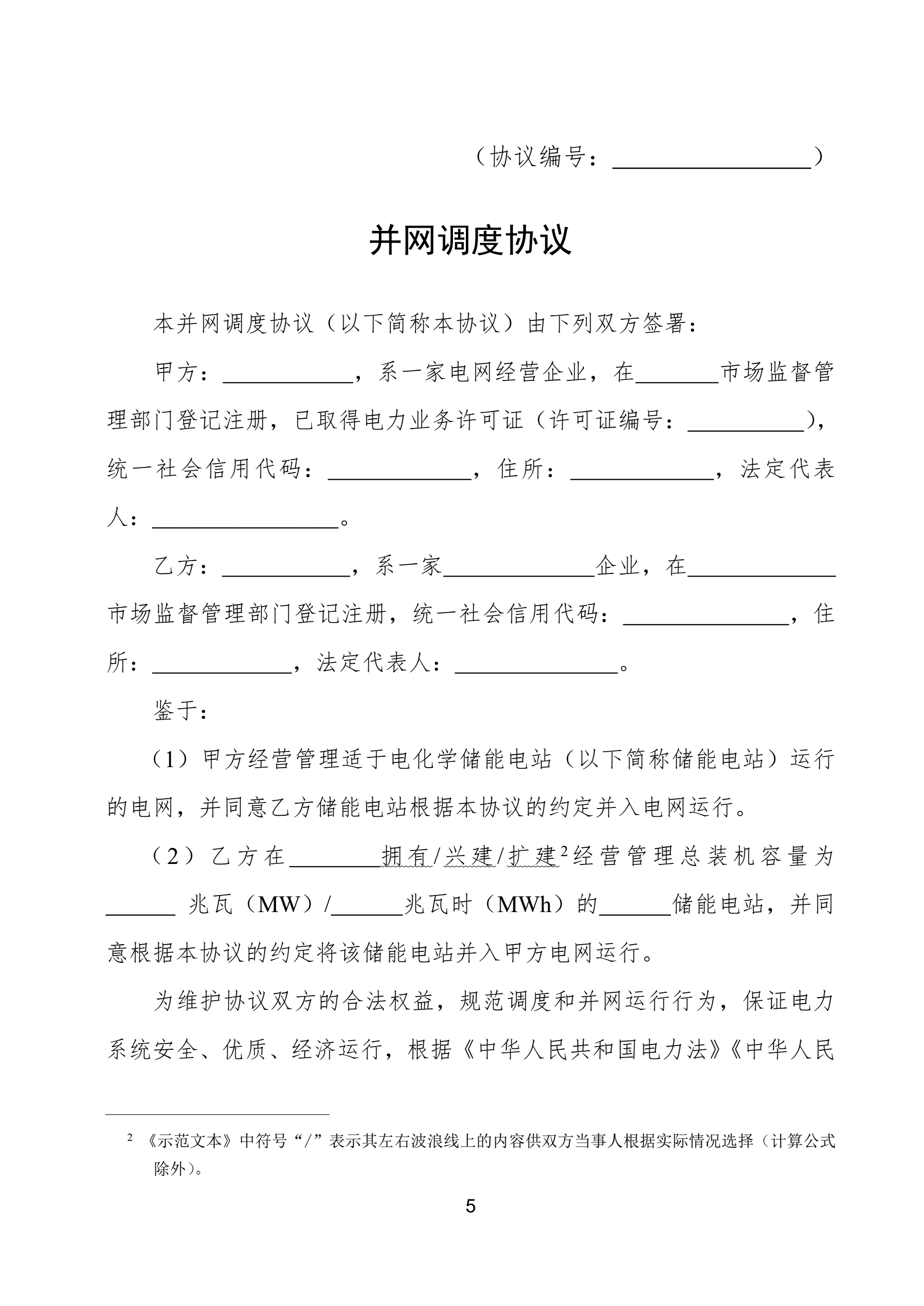 >电化学储能电站并网调度协议示范文本(试行)GF-2021-0514
