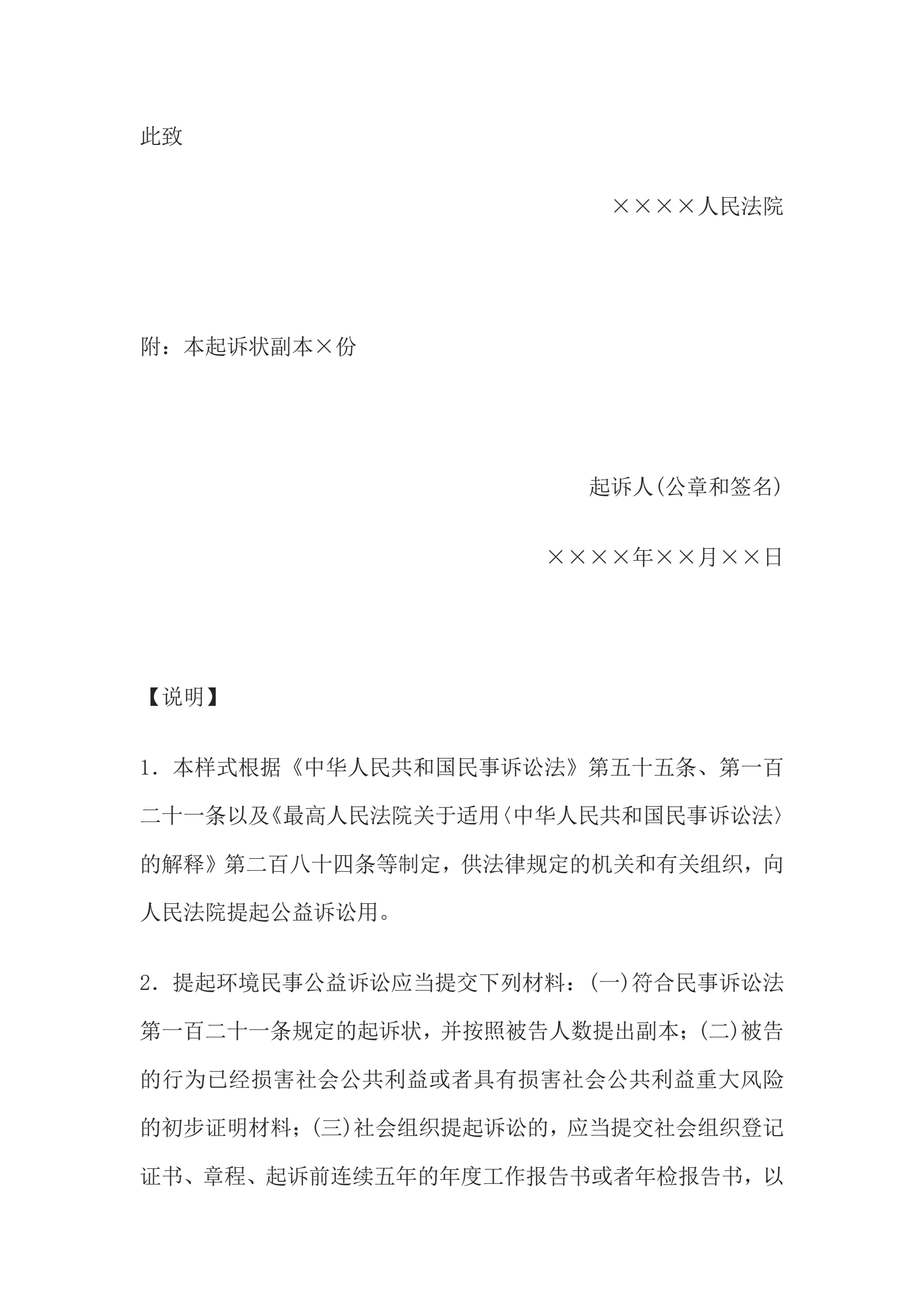 合同名称:民事起诉状(提起公益诉讼用)