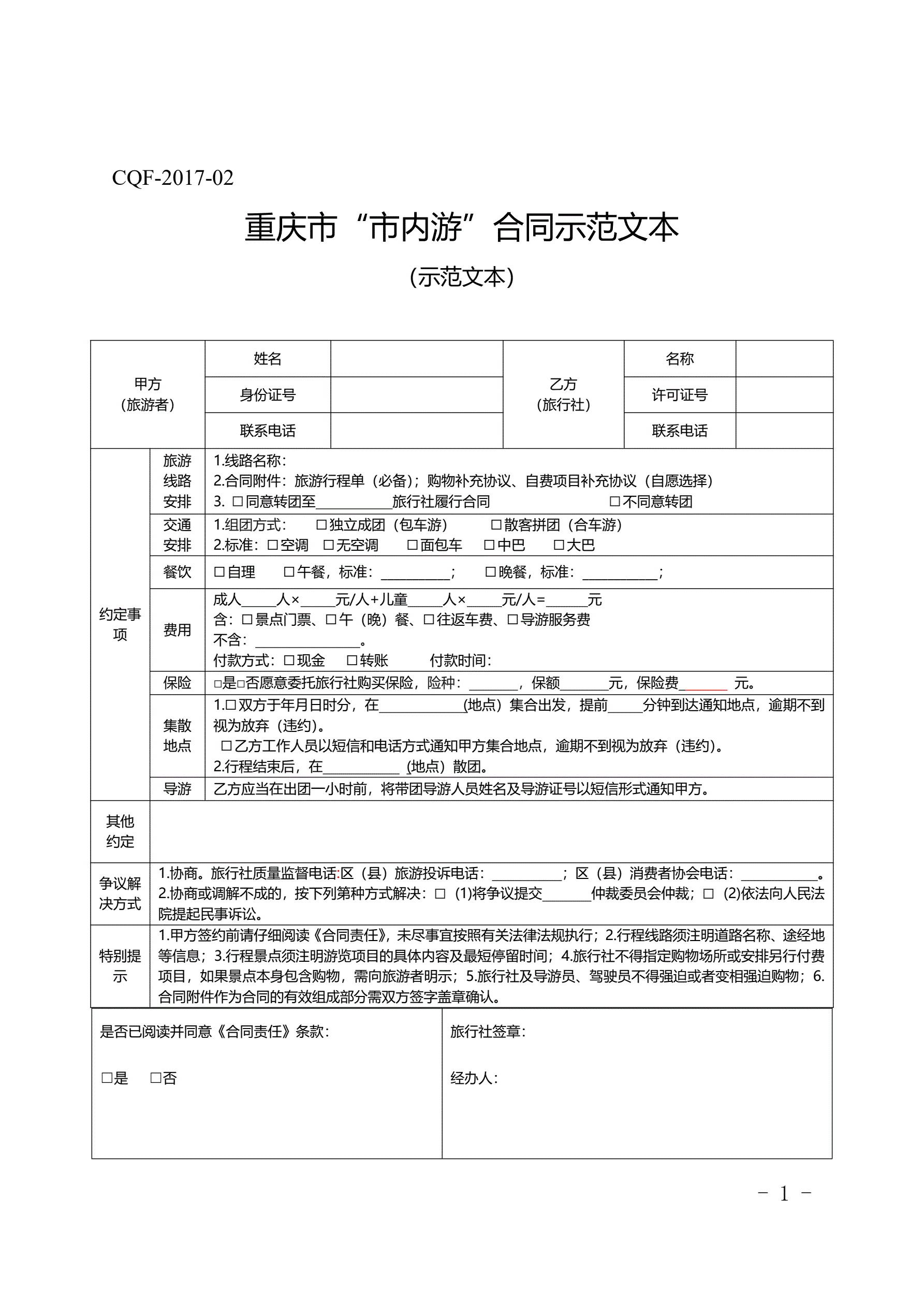 >重庆市“市内游”合同示范文本(2017版)