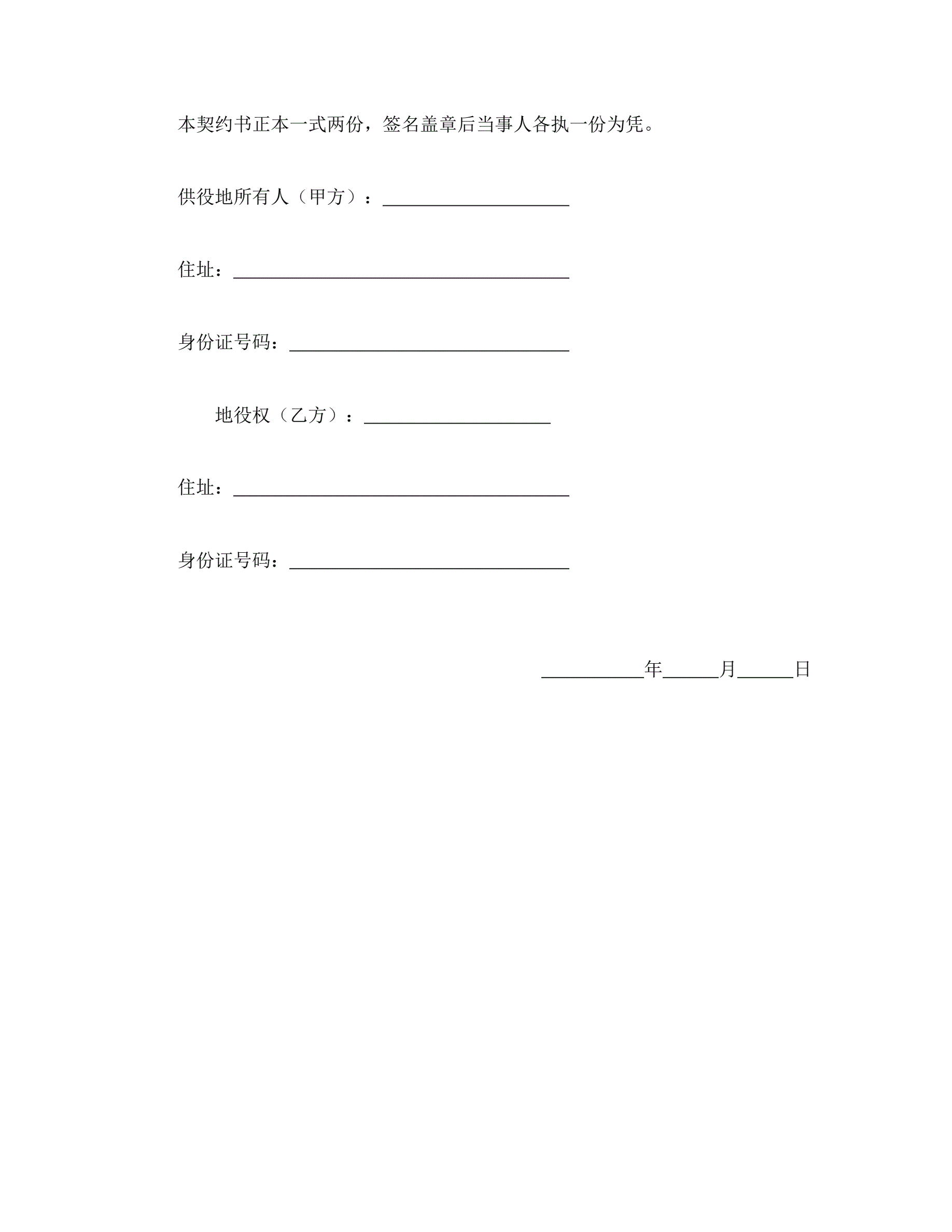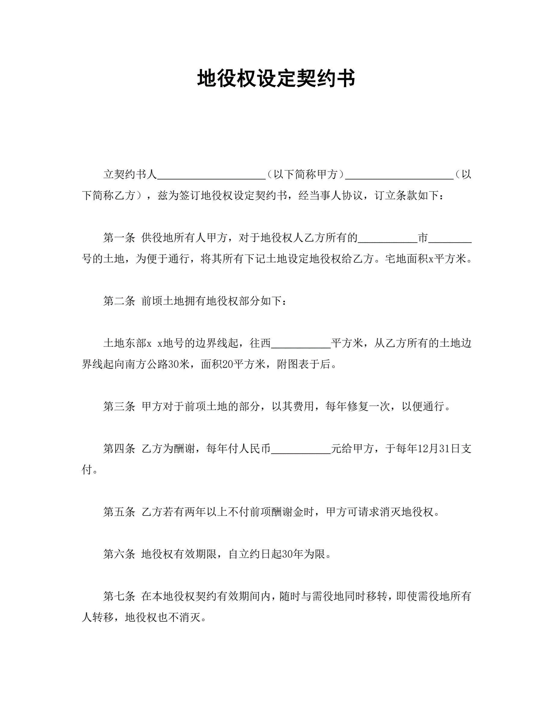 地役权设定契约书