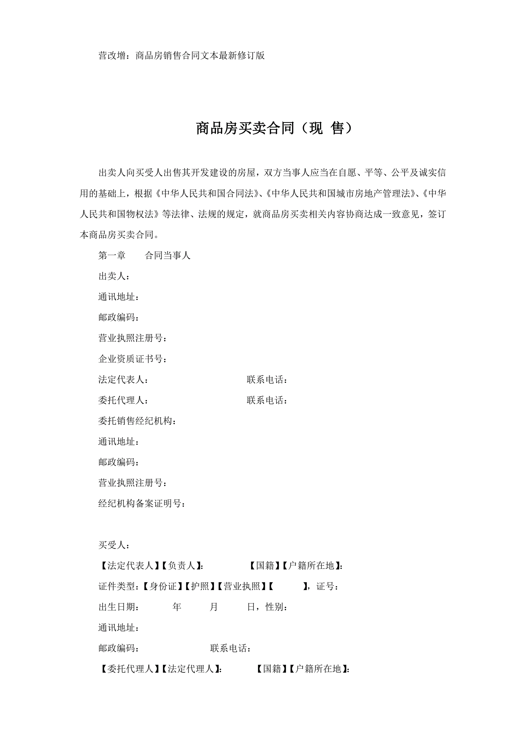 >商品房销售合同文本最新修订版--独家发布