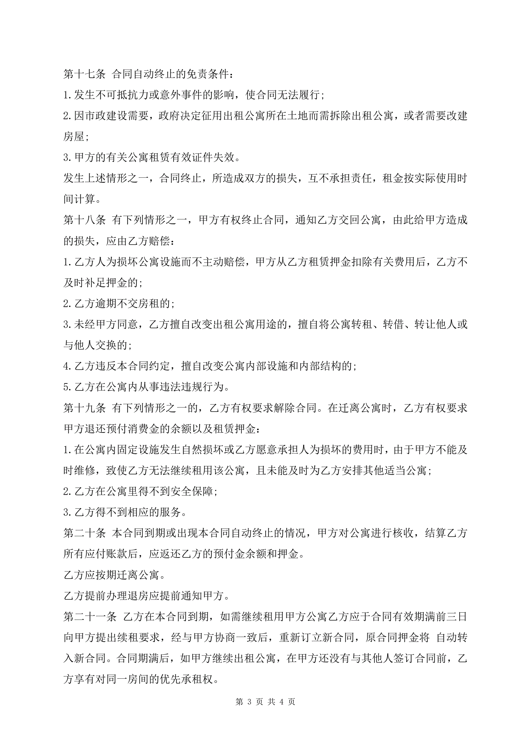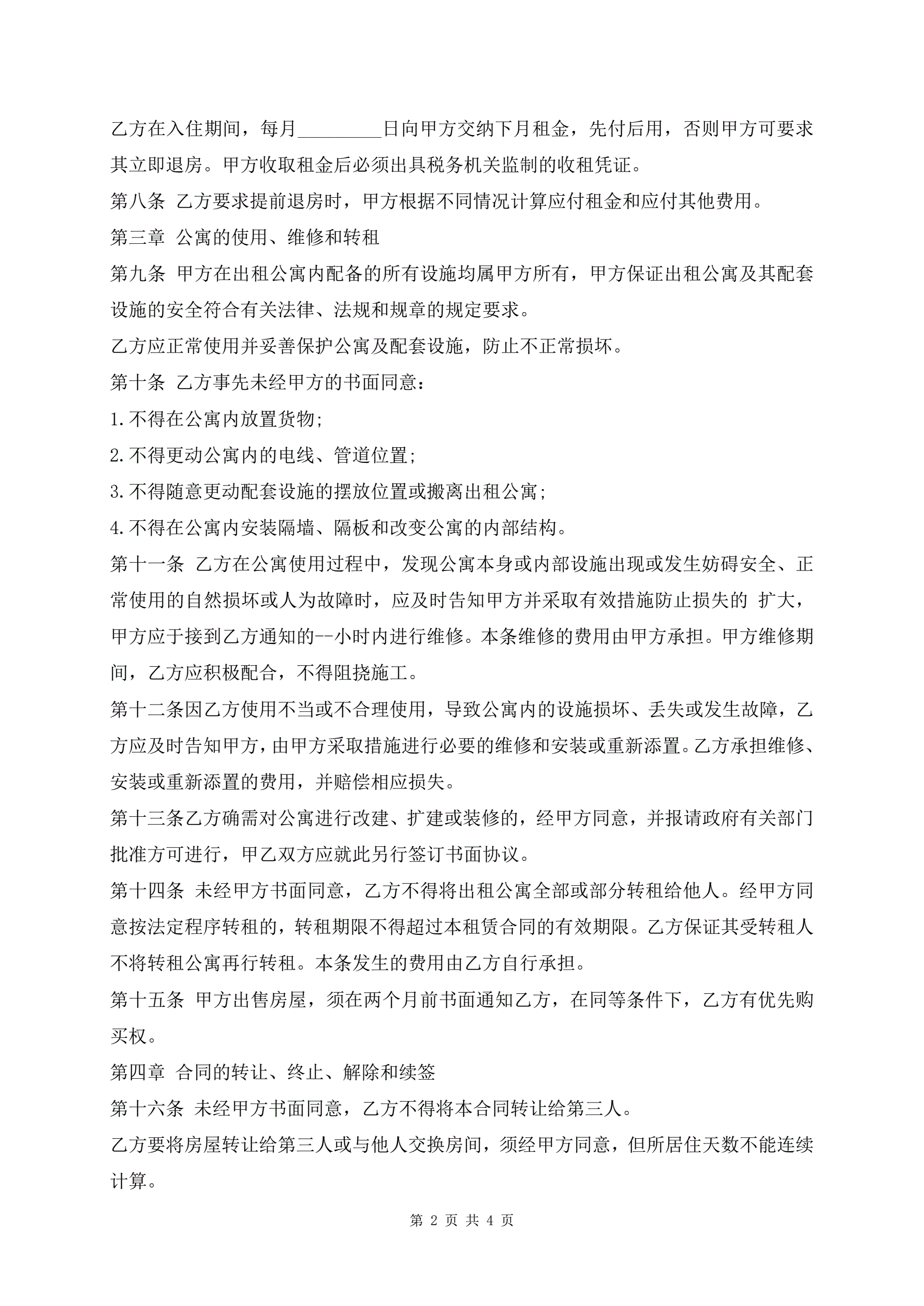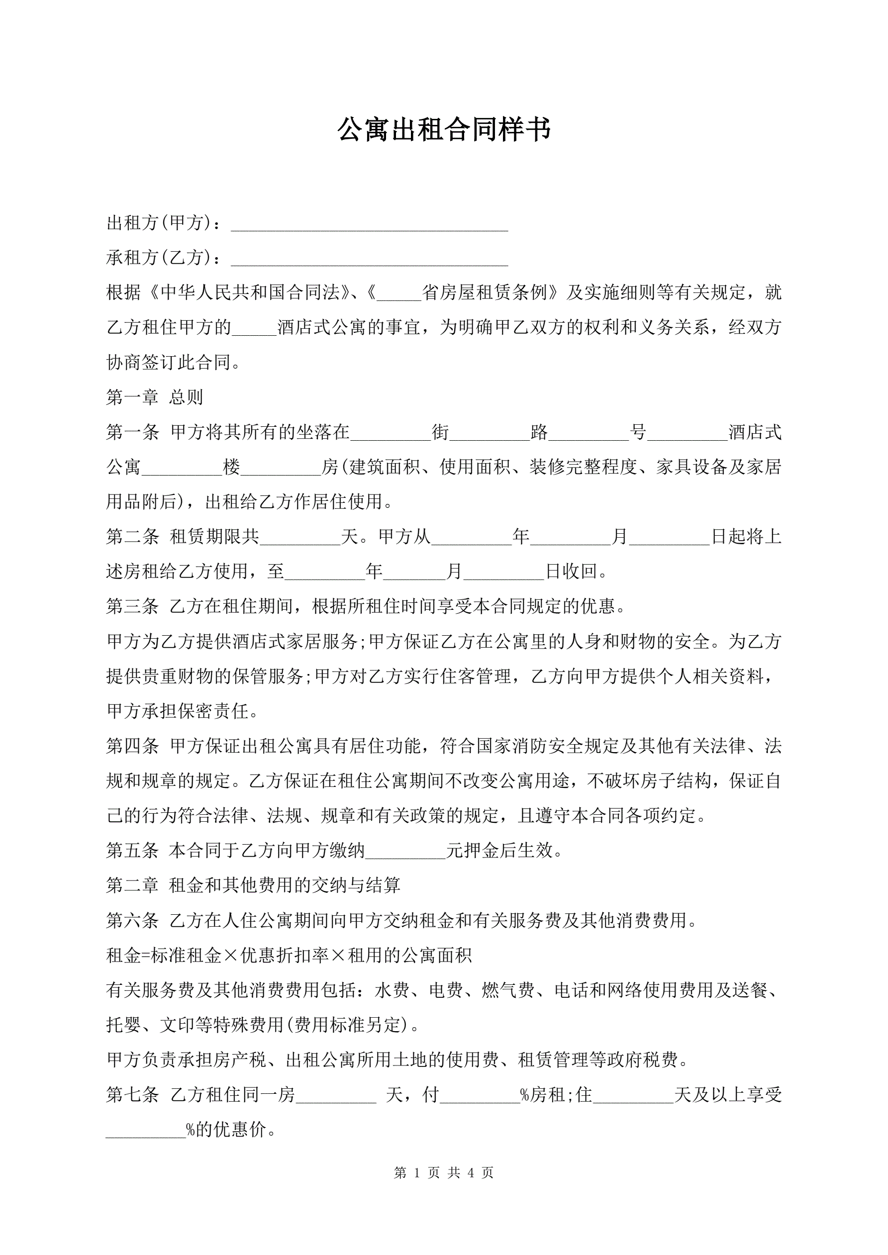 公寓出租合同样书