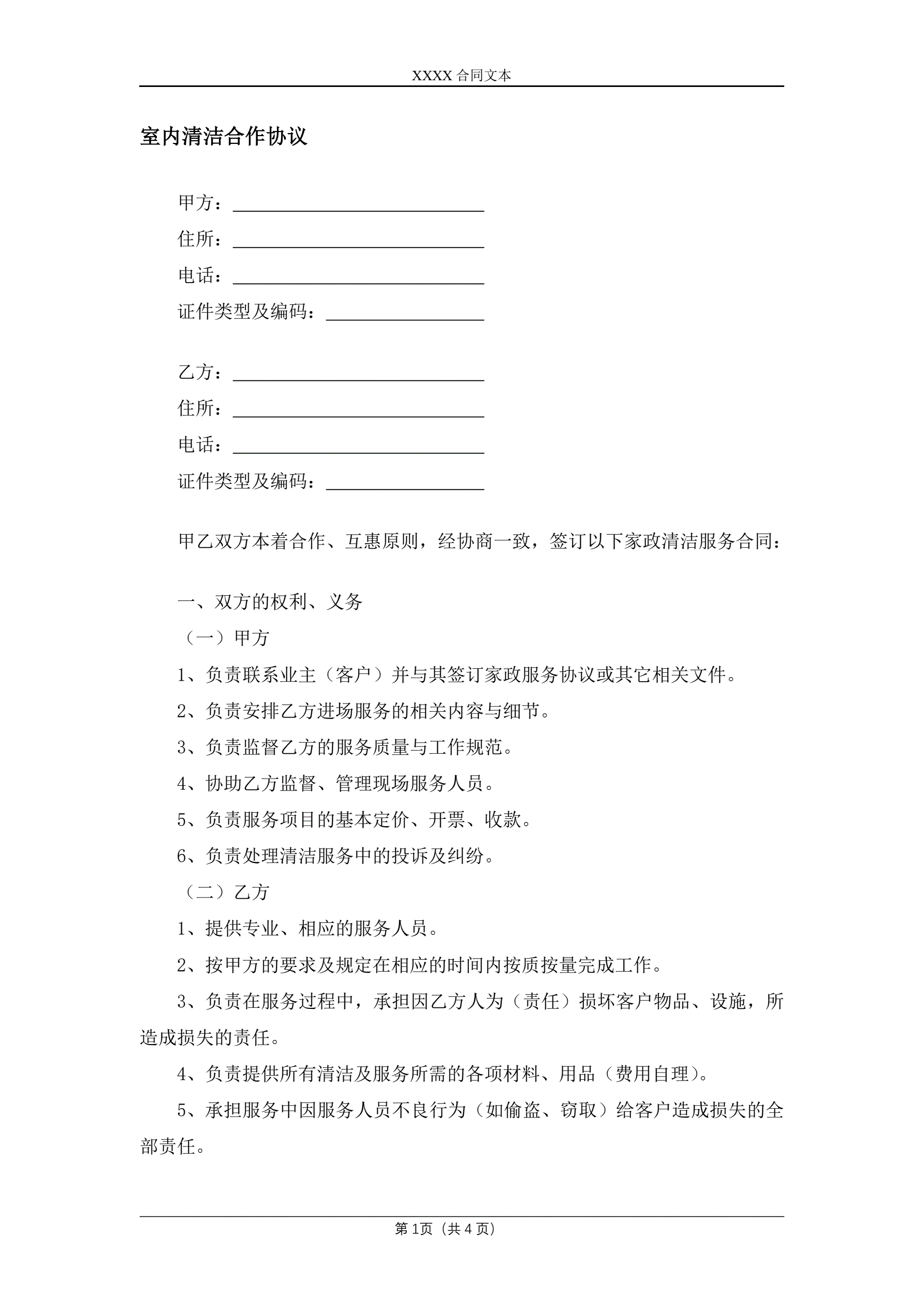 >室内清洁合作协议