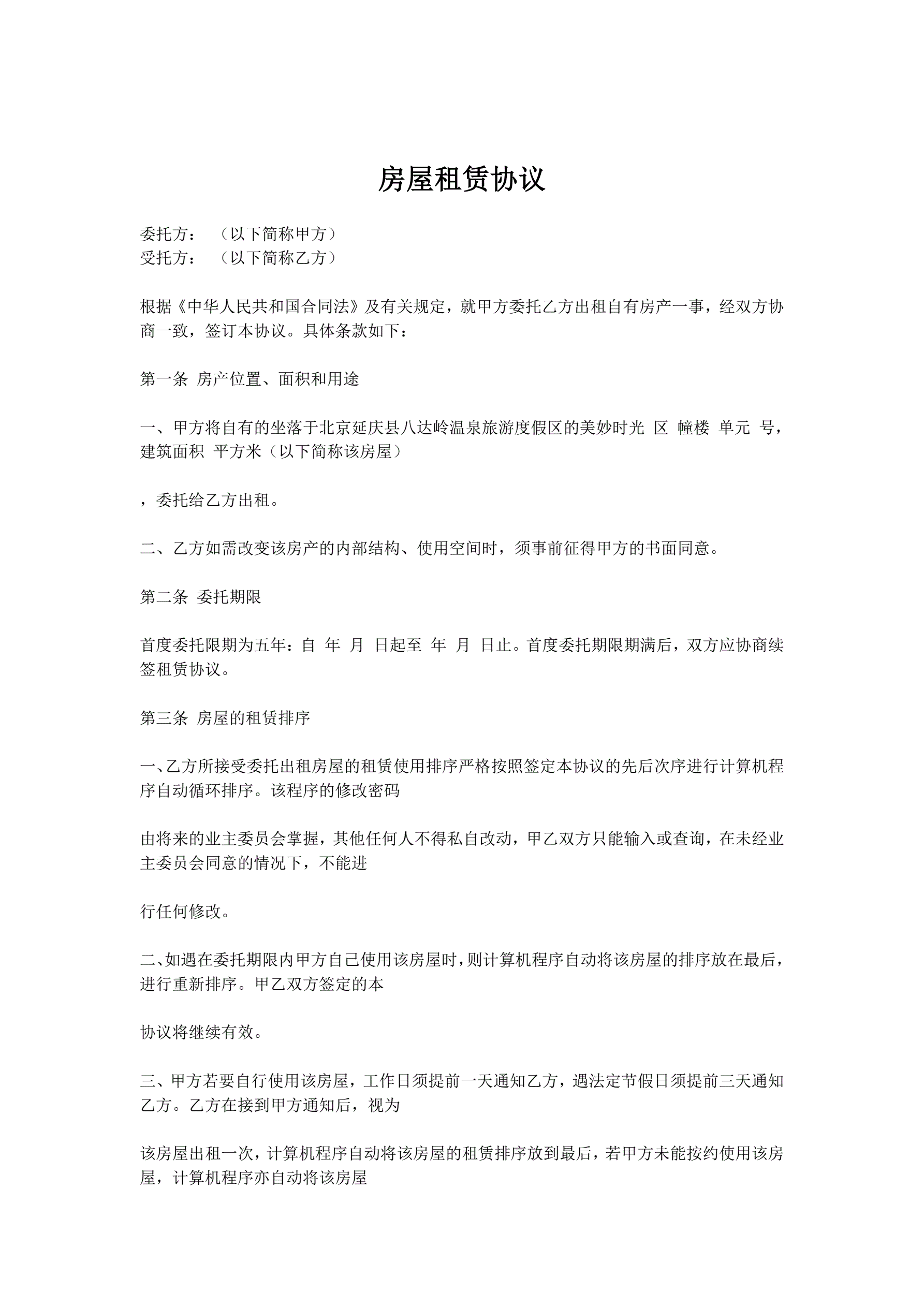 房屋委托租赁协议