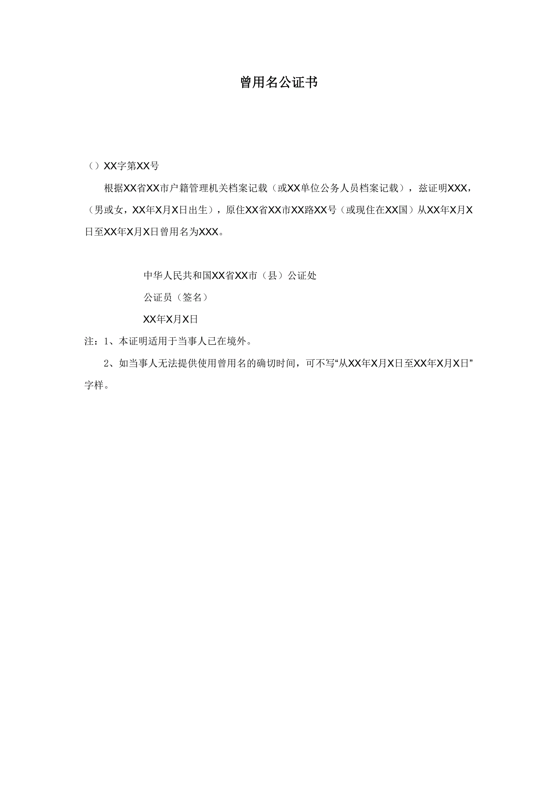 >曾用名公证书